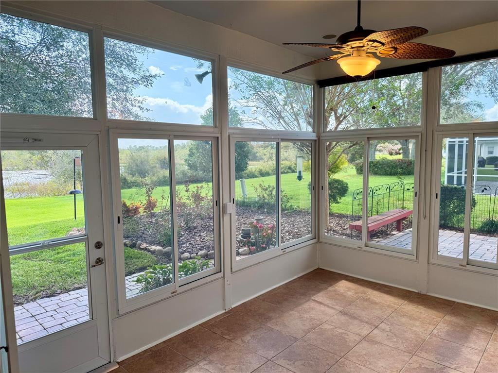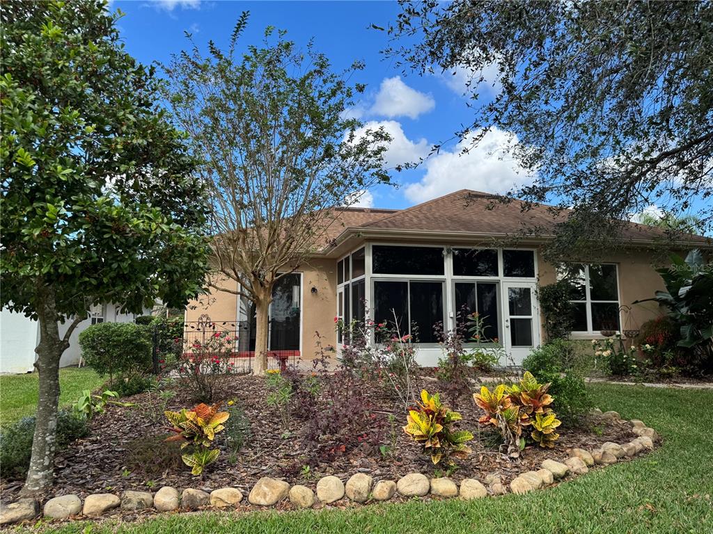 Welcome home to royal highlands!! a highly sought-after 55+ gated/pool community!! simplicity and serenity galore!! this is your opportunity to live in one the most desirable neighborhoods!! move in ready!! no direct rear neighbors!! plus, a spectacular “touch of nature” backyard on a premium lot!! this “take it easy” property has very enticing curb appeal with tropical-like lush landscaping, a beautiful brick paver driveway, and front walkway path guiding you to the koi pond water feature and on to the warm entry complete with a cozy porch!! this 3 bed/2 bath + 2 car garage, exceptional split floor plan boats 1730 climate-controlled sq. ft. custom blinds included!! 2024 refrigerator!! roof 2015!! ac 2022!! the quaint foyer leads into the spacious dining/living combo with wood-like laminate flooring. the kitchen is complimented with lovely pull-out shelving, under mount lighting, a wine storage wall unit, some ss appliances, custom ss pendant lighting, and stone countertops. the generous owner’s ensuite has a beautiful backyard view, laminate flooring, a sizable walk-in closet, plus a stunning and expansive recently remodeled roman shower with versatile accessibility!! the first guest room, off the kitchen, has glass french doors and could easily be a craft room or office!! down the hall is the additional bath and bedroom. two sets of recessed glass sliders invite you into the florida room with custom “easy-slide” windows, and elegant tile flooring. what a perfect spot to catch up on reading or entertain guests!! step outside into your relaxing and intimate greenspace backyard that includes a waterview platform tree swing, a small paver lanai with bench seating, and enchanting gardens to help you sooth away the day!! the monthly hoa includes xfinity cable and hi-speed internet!! royal highlands has numerous amenities. an indoor heated pool, olympic sized outdoor pool, billiards, library, tennis, crafts, shuffleboard, softball team, a grand ballroom, secure rv/boat storage, the crown & shield restaurant/bar and the monarch golf club!! location benefits include turnpike access, disney/theme parks, shopping, worship, a 24 hr. er, and the famous yalaha bakery minutes away!! make this delightful home your new address!!21630 KING HENRY, LEESBURG, FL 34748