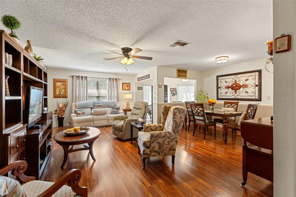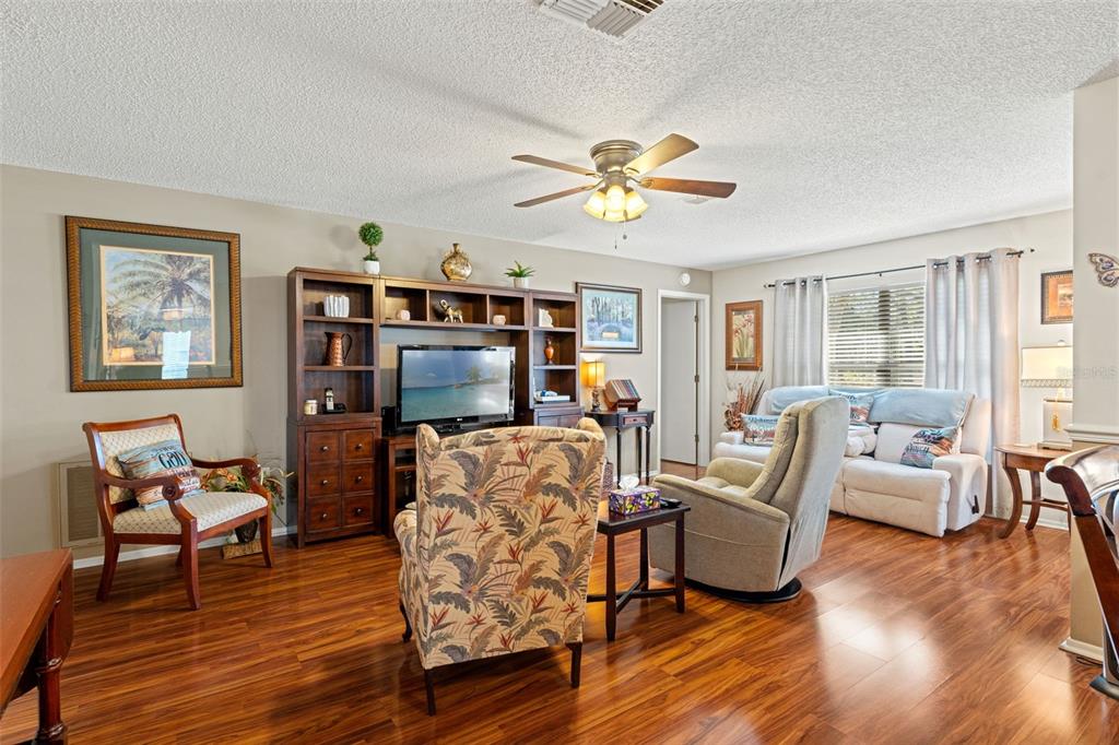 Timber pines award winning 55+ community + way of life. not a villa! a manageable sized home that lives bigger than it looks and comes partially furnished. great street appeal (lovely mature landscaping) and a great split-wing floorplan that adds privacy and yet, an open main living area with an offset dining area so it doesn't have that boxy look. you'll appreciate the rich gleaming laminate flooring - all hard surfaced flooring here except for the carpeted florida room. the kitchen has a bistro sized dining nook, recessed lighting, lots of countertop & cabinet space plus all the appliances stay. pardon the florida room, adjacent to the kitchen w/a slider to the back patio-it became our spot to start packing. the spacious master suite includes a good sized walk-in closet and a private bath area with a separate sink/wash up - make up area. the secondary bedroom is good sized - could accommodate a queen sized bed and is adjacent to the main bath with a step-in shower. the laundry is just steps away in the 2 car garage w/garage door opener. newer roof, ceiling fans throughout, new smoke alarms. as part of the timber pines community, you'll enjoy access to three golf courses, a 9-hole pitch and putt, twelve pickleball courts, tennis courts, two community swimming pools, a state-of-the-art fitness center, a billiard room, arts and crafts spaces, a woodworking shop, and a media center. there's over 100 clubs to join, a restaurant and bar, plus endless recreational options, timber pines offers a very active lifestyle.2175 PEBBLE BCH, SPRING HILL, FL 34606