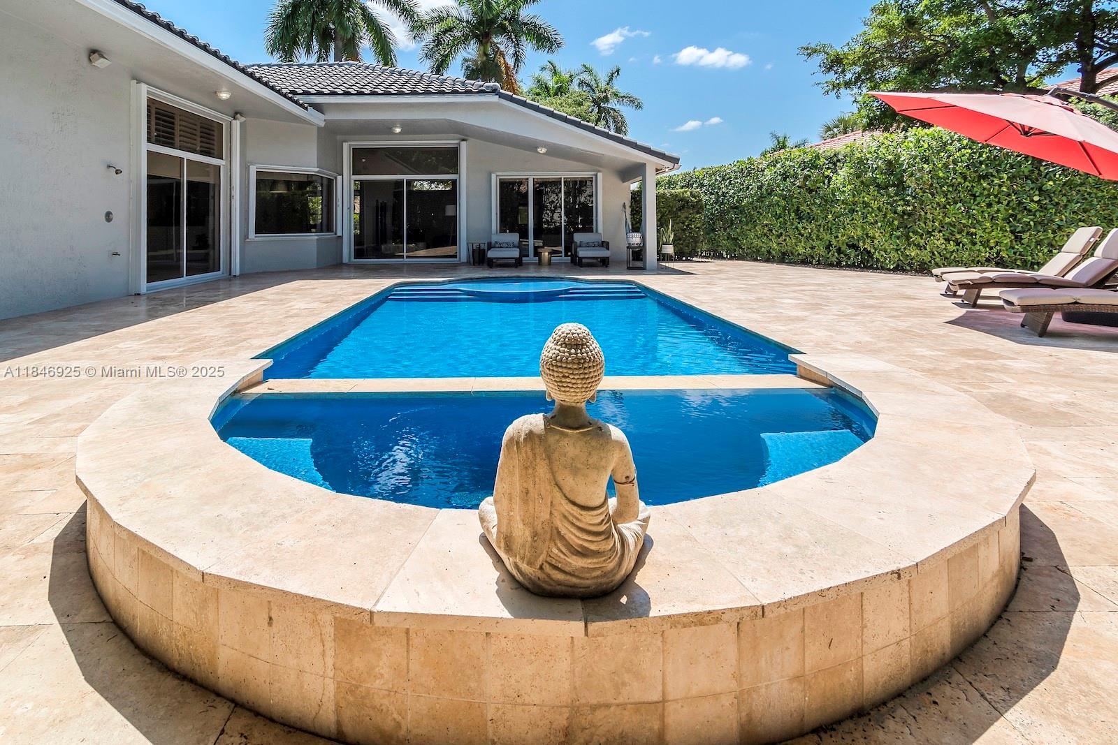 Price adjusted to sell! nestled in the gated community of egret landings, this stunning 5-bedroom, 3-bathroom home sits on one of the largest lots in the landings, offering exceptional space and privacy. located at the end of a quiet cul-de-sac, it features a 2-car garage and a custom mahogany wet bar/pool room wired for full media enjoyment. enjoy beautiful pool views from the formal living and dining rooms, plus a chef’s kitchen with sub-zero fridge, stainless steel appliances, tumbled stone backsplash, beveled granite countertops, and 42" cherry wood cabinets. the triple split floorplan ensures privacy throughout. roof was completely replaced in 2021, offering peace of mind and long-term value. covered patio and outdoor shower make this home the perfect blend of luxury and comfort.218 EGRET CT, WESTON, FL 33327
