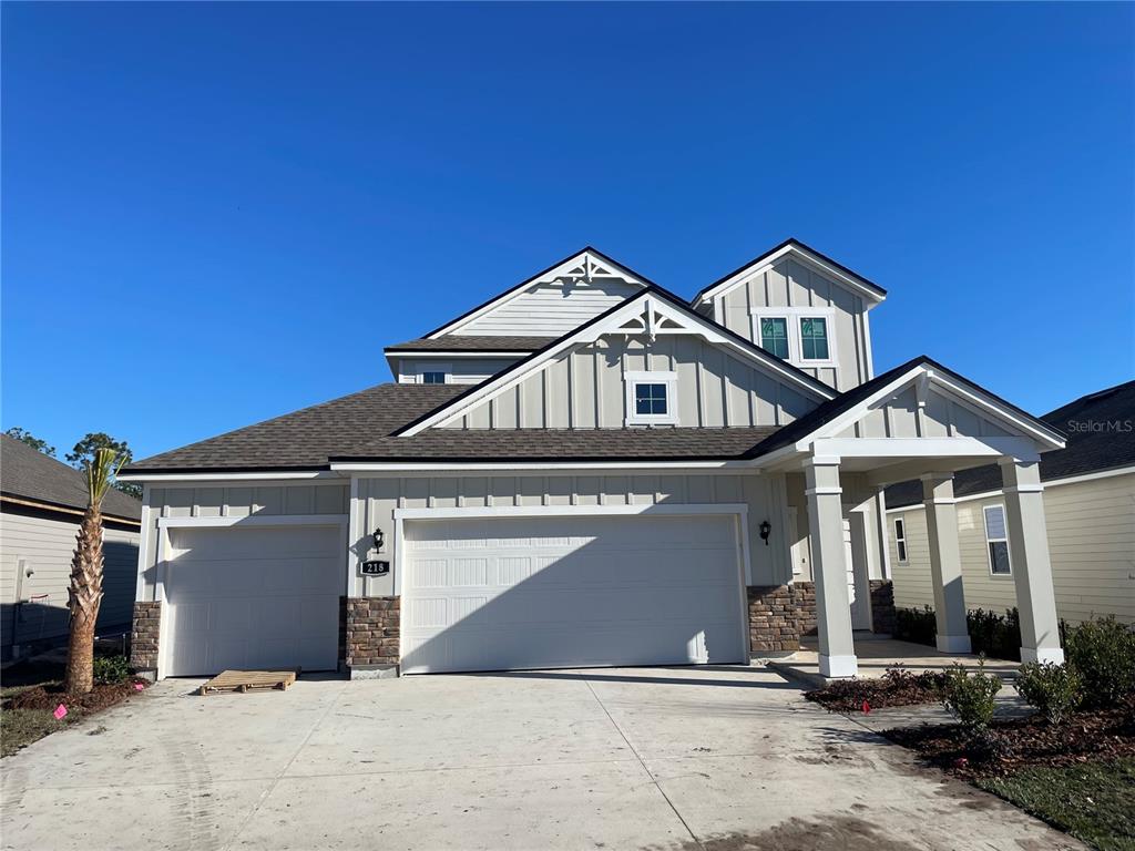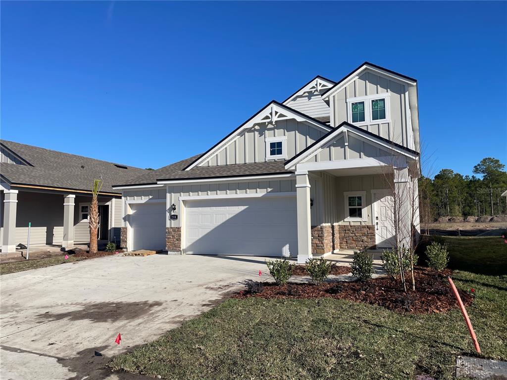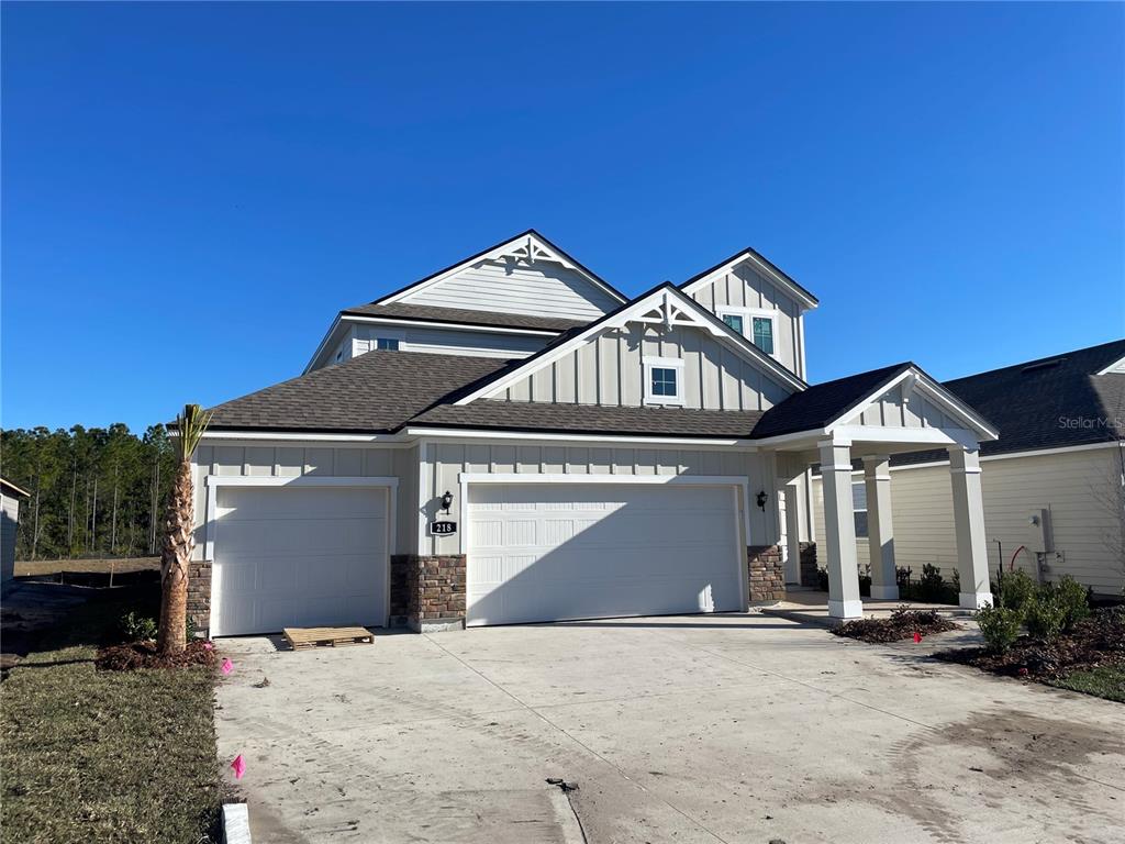 Under construction. new construction with an estimated completion of february. offering abundant living space, the amelia boasts a convenient main-floor owner’s suite with a private bath featuring a super shower and roomy walk-in closet. the main floor also includes a valet entry off the 3 car garage and an inviting open-concept living space, anchored by a large chef's kitchen—with a center island and pantry—overlooking a casual dining area and great room with covered patio access. heading upstairs, you’ll enjoy additional hangout space in an expansive game room. the second floor also offers three generous secondary bedrooms—all featuring walk-in closets—that share a full hall bath. home sits nicely looking over a pond view. ask about builder incentives! amenities photos are renderings218 MONTGOMERY, PALM COAST, FL 32164