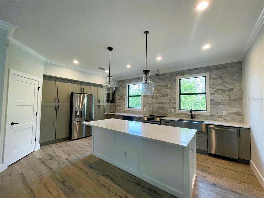 Brand new marquesas model the newest model in the breakwater collection this beautiful and unique home is just nearing completion and ready for new owner. the home features 3 bedrooms and 2 bath with a 2 car garage and private pool and large lanai. other features include an open great room floor plan with split bedrooms, large floating island and lots of cabinet space in the kitchen, upgraded stainless appliance package w/ stainless range hood, wine fridge, drawer microwave, farm sink, quartz countertops and a wall of tile backsplash. wood plank tile floors throughout, crown molding and tray ceilings. the master bedroom features walk in closet, dual sinks, large shower w/ seat, shampoo niche and frameless glass enclosure. other features include upgraded front door, large laundry room, impact windows w/ non impact slider, hurricane shutters for lanai only, epoxy garage floor, widened paver drive, walks and entry, upgraded plumbing and lighting fixtures.220 JENNIFER, ROTONDA WEST, FL 33947
