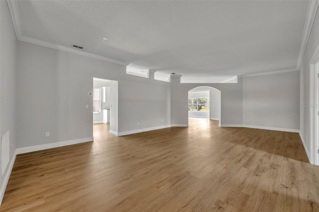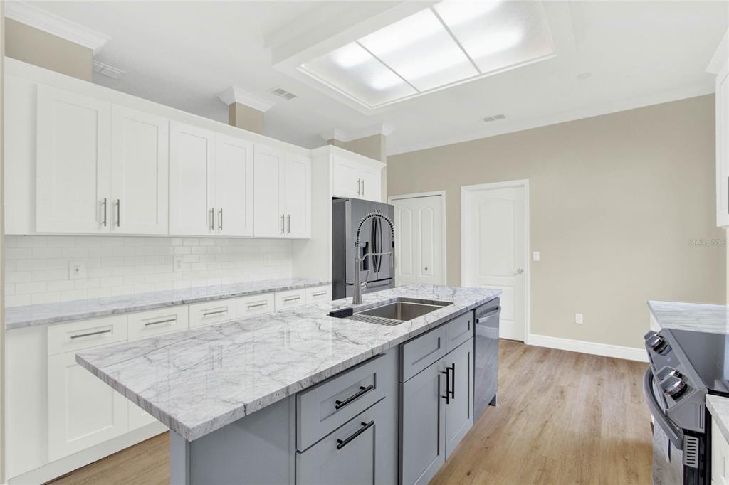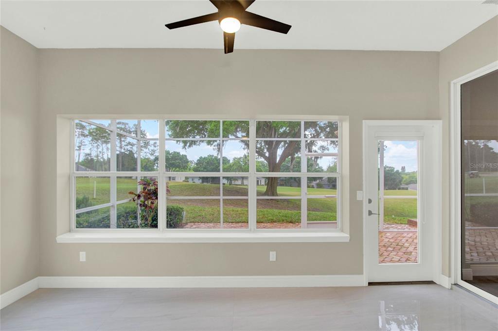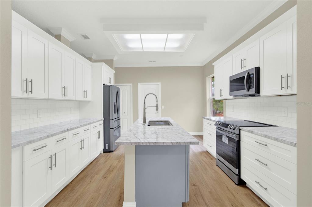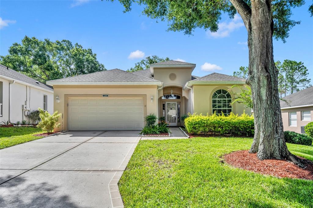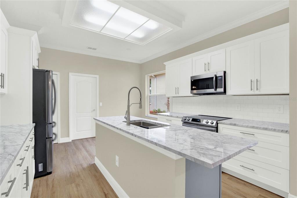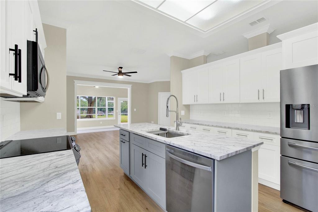Must see!!! welcome to this completely renovated st regis model on the 12th hole of the kings ridge championship golf course. this home has a 2104 heated sf, 2 bd/2ba, den and a 2 car garage. the primary bathroom has been completely renovated with porcelain tile throughout the walk-in shower and floors. a large dual sink vanity installed, new toilet, mirrors and lighting. the 2nd bathroom also remodeled. it also has porcelain tile throughout the bathtub and floors with new toilet vanity and lighting. there is luxury vinyl planks throughout the house. a brand new dream kitchen with granite countertops. all new smart appliances. new roof in 2014. brand new hot water heater installed in july 2024. the hvac is 2021. the house has freshly painted walls with all new crown moldings and large baseboards. enjoy your morning coffee in the enclosed lanai with the relaxing golf course views outside. kings ridge is a 55 plus gated golf community nestled in the rolling hills of clermont. enjoy the kings ridge royal life style in the multi-million $ clubhouse with 3 heated pools, spas, tennis & pickle ball courts, billiards, shuffle board, , bingo, cards and clubs galore. the monthly maintenance fees include: lawn maintenance including trimming of shrubs, care of irrigation system & irrigation water, internet, cable & phone thru fibernow, maintenance of roads and outside painting of home every 7 years. take your golf cart to the kings ridge plaza where you can do your grocery shopping, banking or dine out..2205 STONEBRIDGE, CLERMONT, FL 34711