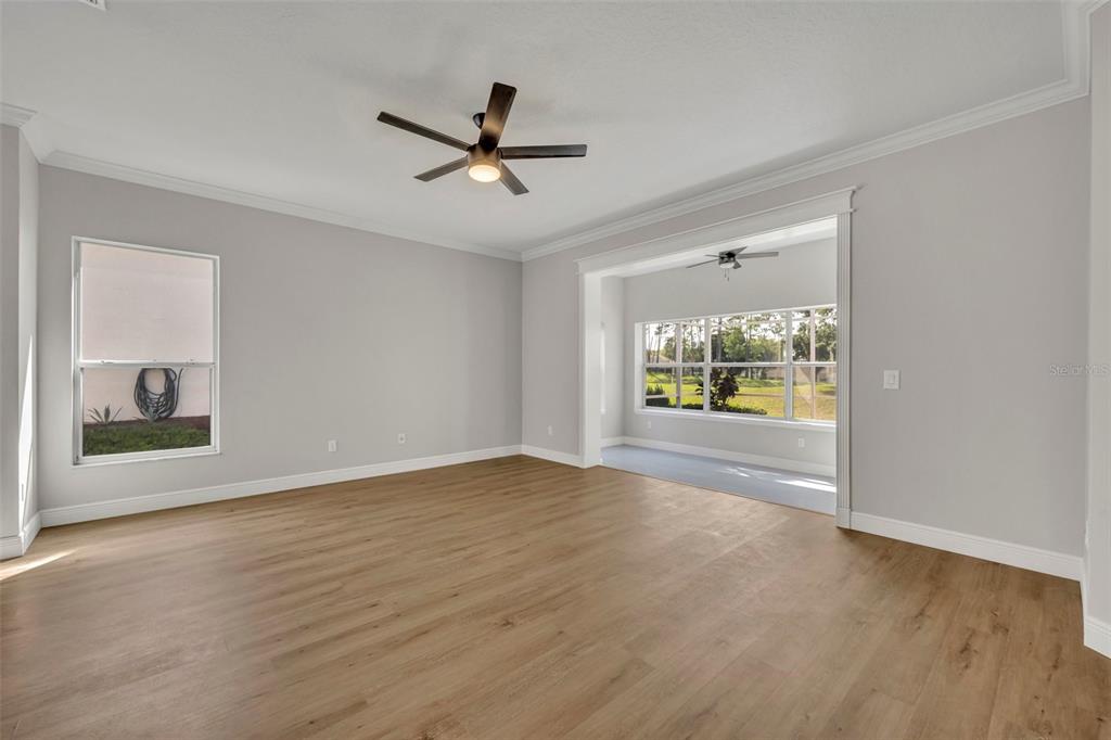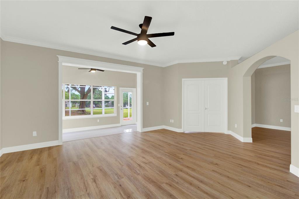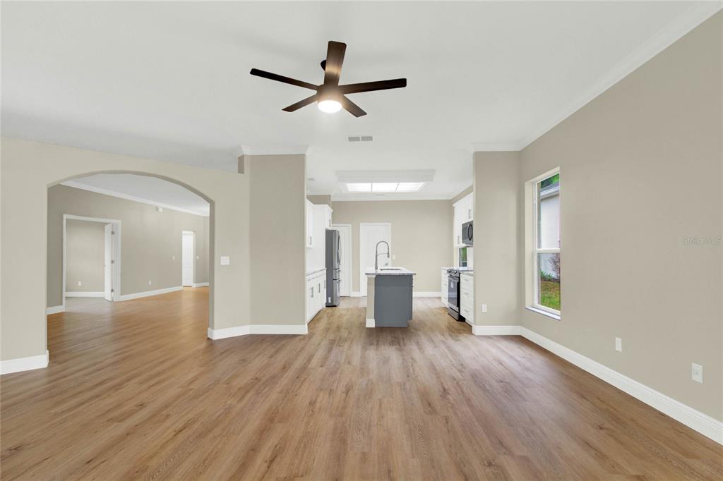 Walk-In Closet(s)Ceiling Fan(s) Eating Space In Kitchen High Ceilings Living Room/Dining Room Combo Stone Counters Thermostat Open FloorplanCrown Molding Primary Bedroom Main Floor Kitchen/Family Room ComboExterior Features: