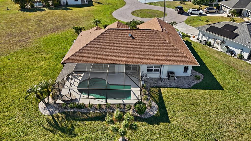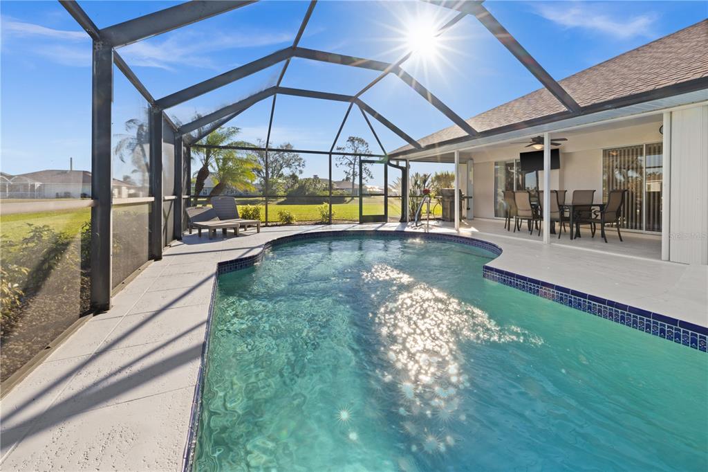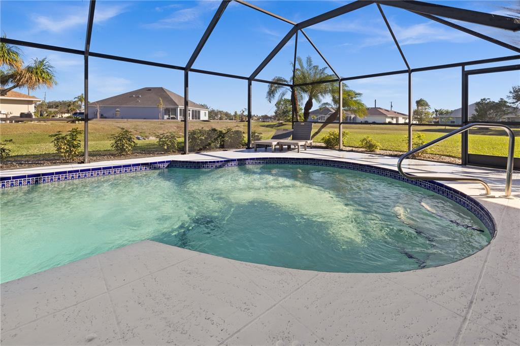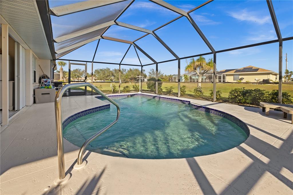 Deep creek pool home! turn-key! situated on over a half-acre double cul-de-sac lot and not in a flood zone (no flood insurance required). this 3 bedroom, 2 bath, 2-car garage is located in a highly sought after deed-restricted community with county water and sewer! the split floor plan gives privacy for all with two guest bedrooms and separate full bath. the primary bedroom overlooks the pool through double slider pocket doors and has a large walk-in closet, double vanity, soaker tub, and private shower. the kitchen boast plenty of cabinet space with granite counters overlooking 1 of 2 main living areas and breakfast area. enter the outdoor entertaining area through the triple slider pocket doors which features a large covered lanai and screened in pool space with greenbelt views for added privacy. the well cared for landscaping and lawn is equipped with an irrigation system setup on its own private well that allows you to keep a beautiful yard year-round without a high water bill. new roof in 2020. new pool heater, irrigation pump, pool pump and lanai screens in 2023. appliances are only 5 years old. accordion hurricane shutters around the lania and manual hurricane shutters for all windows. this friendly neighborhood is tucked away from busy streets yet close to shopping, entertainment, i-75, schools, parks, golf and just a short drive to downtown historic punta gorda, known for its world-class fishing and boating, community events and entertainment. do not miss this opportunity! schedule your private showing today!2210 BENGAL, PUNTA GORDA, FL 33983