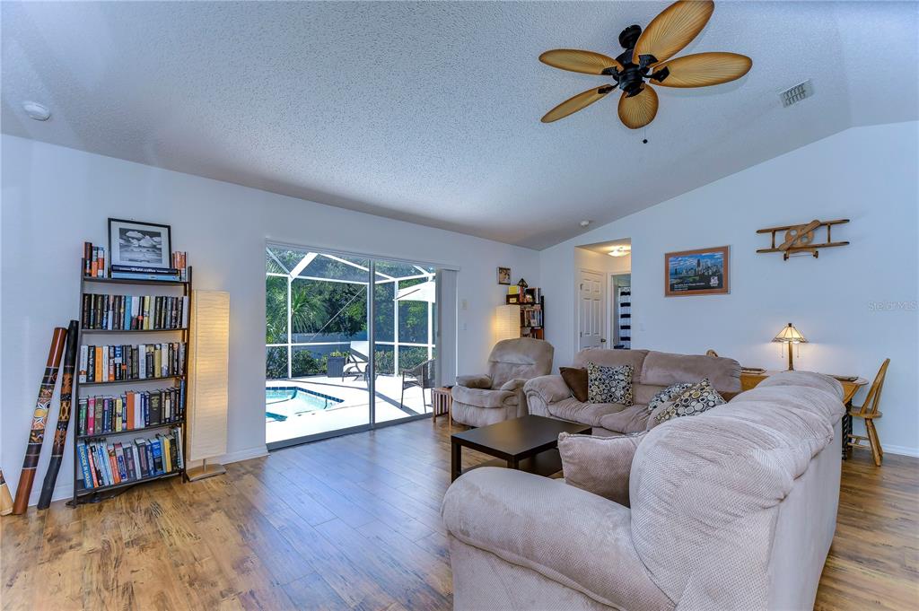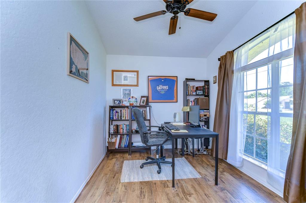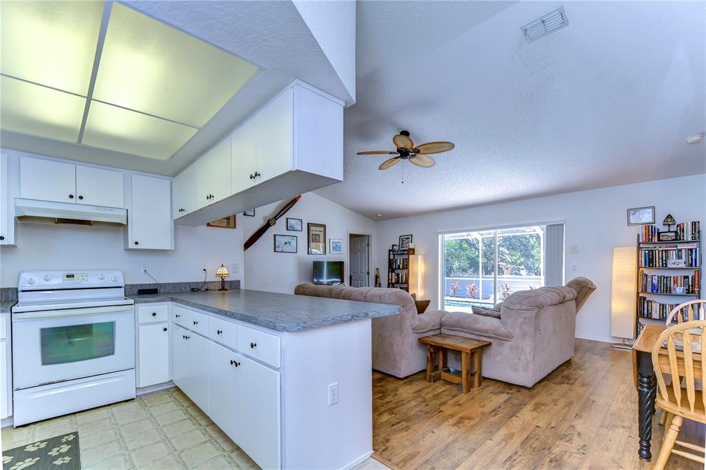 Move-in ready! pool home! don't miss the opportunity to own this 2 bedroom/2 bathroom/1 car garage single family home w/ an office/den. this home is fully fenced and has been impeccably maintained! roof replaced in feb/march 2024 includes transferrable warranty! as you enter the home through the double front doors, you are greeted by a vaulted ceiling and an abundance of natural light throughout the main living area. there is laminate flooring (2020) throughout the main living room, primary bedroom, guest bedroom, and office. the kitchen is open to the living room and has been updated to include brand new countertops (2024), stainless steel kitchen sink (2024), and stainless steel refrigerator (2018). the primary bedroom is spacious and has its own en-suite bathroom with a walk-in shower and walk-in closet. the secondary bedroom is located on the other side of the home along with the office/den. the screen enclosed pool area is the perfect spot to enjoy a peaceful morning overlooking the pool and backyard. additional features and upgrades include primary bathroom countertop replaced (2024), regrouted primary bathroom and guest bathroom (2024), fence (2024). pool pump (2019), ceiling fans (2018), ac (2015). easy access to the suncoast parkway, publix, local restaurants, and more!2225 LAKE FRST, SPRING HILL, FL 34609