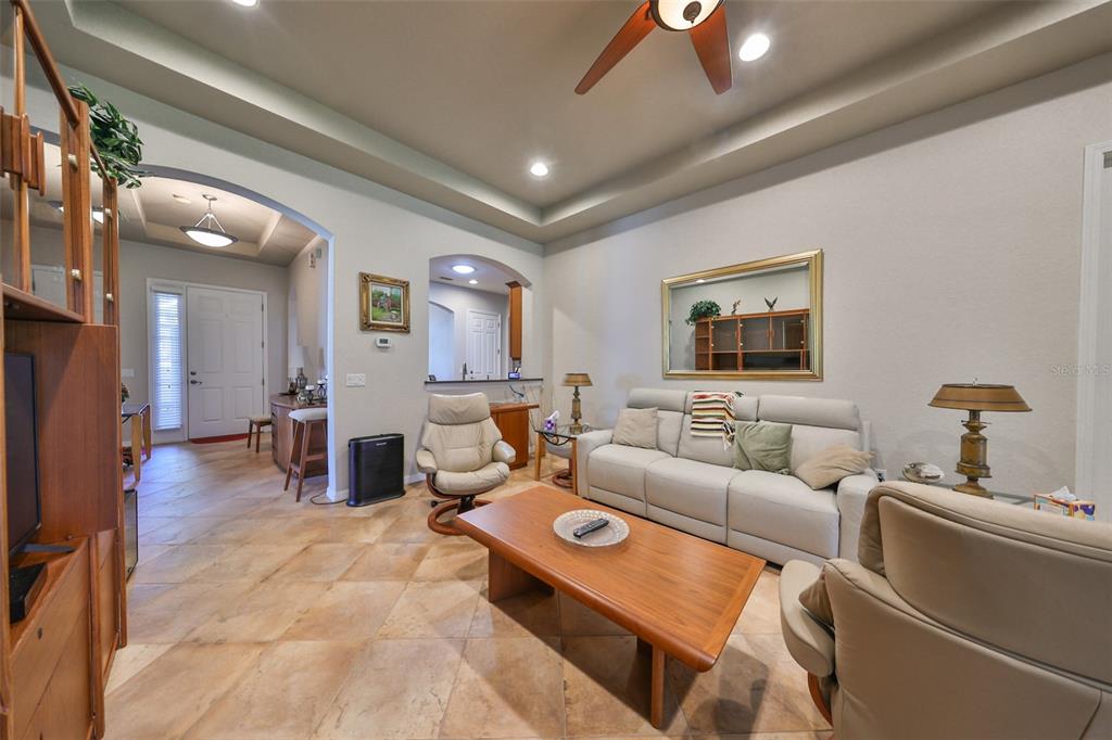 Welcome to this stunning chelsea model condo, gracefully nestled in the desirable 55+ gated kings point community. this residence offers a perfect blend of charm, elegance, and functionality, featuring 3 bedrooms and 2 bathrooms across 1,551 sq. ft. of thoughtfully designed, maintenance-free living space. approaching the home, you’ll be welcomed by a gated brick courtyard that seamlessly connects to a two-car split garage, creating an inviting entryway. the private, walled-in courtyard is an ideal spot for morning coffee or friendly conversations with neighbors, while a screened-in front porch provides additional space to enjoy the serene surroundings. step inside to be greeted by soaring tray ceilings and stunning earth-tone tile flooring, which flows through the foyer, kitchen, dining room, and living areas. the bright, open floor plan is perfect for both entertaining and everyday living. the living room, accented by elegant tray ceilings and abundant natural light, opens into a refined kitchen that will delight any chef. with upgraded 42-inch beadboard wooden cabinets resembling shiplap, stone countertops, and stainless steel appliances, the kitchen seamlessly connects to the family room for easy gatherings. the primary suite offers a luxurious retreat with tray ceilings, a ceiling fan, and a spacious walk-in closet. the spa-like en-suite bathroom features dual vanities and a beautifully tiled, walk-in shower with a built-in seat. the split bedroom layout ensures privacy for all, with the versatile third bedroom functioning as a perfect office, den, or guest room. both bathrooms are elegantly designed with matching earth-tone tile flooring, while additional bedrooms feature luxury vinyl flooring and ceiling fans. recent updates include brand-new luxury vinyl flooring (2022) and a new washer and dryer (2024). double-pane windows and architectural features such as arches and tray ceilings add sophistication. enjoy energy efficiency with gas-powered heating, a gas dryer, and a hot water heater. the family room leads to a three-panel sliding glass door that opens onto a screened-in lanai, overlooking a lush, private backyard—a perfect setting for relaxation or outdoor gatherings. the beautiful brown leather couch in the den can also stay, adding both comfort and charm to your new space. don’t miss this opportunity for luxury living, complete with these fabulous extras! kings point residents enjoy an active lifestyle with amenities that include two clubhouses, five swimming pools, multiple pickleball and tennis courts, fitness centers, and numerous clubs and activities. this golf cart-friendly community offers convenient access to tampa, sarasota, gulf coast beaches, and popular attractions like disney world. this move-in-ready home is a rare find, offering modern amenities in a picturesque, gated setting. schedule your showing today and discover the best of florida living in this charming, well-appointed condo.2226 SIFIELD GRNS #26, SUN CITY CENTER, FL 33573