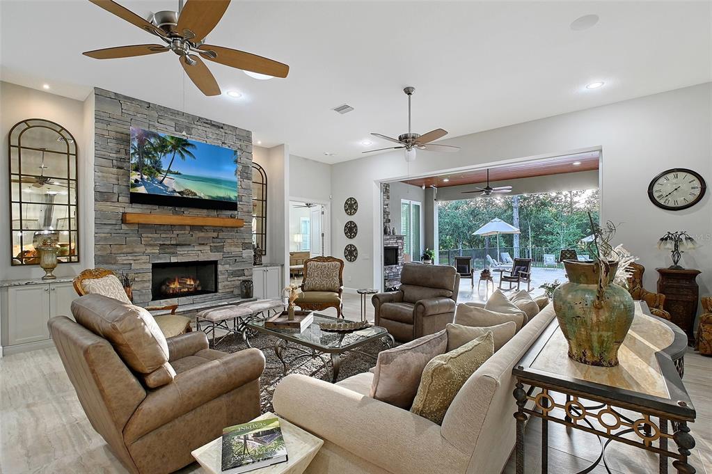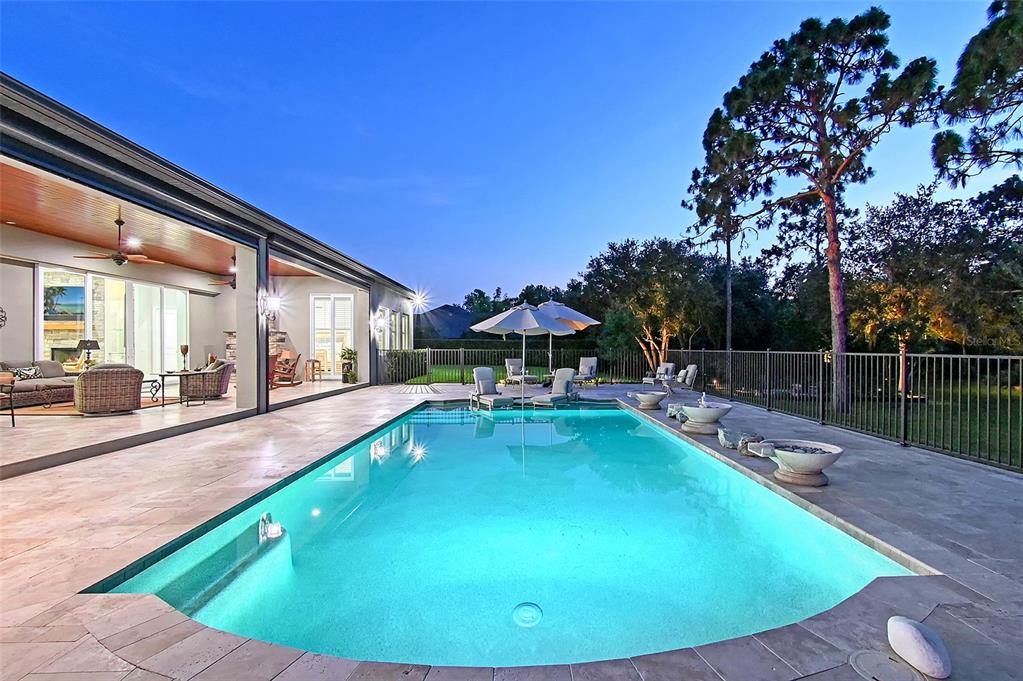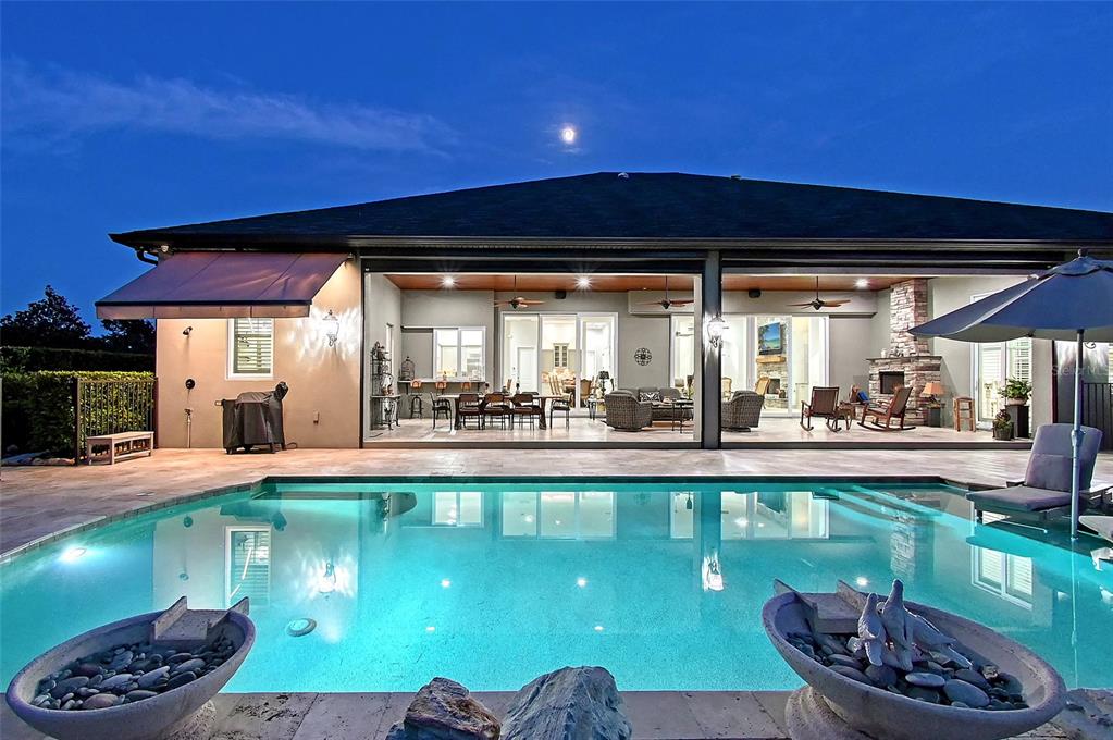 Welcome to this extraordinary country estate where custom craftmanship combines with beauty and functionality on a pristinely landscaped and manicured 1.3-acre lot, bordered by a nature preserve. this custom residence built by vision home builders is positioned on one of the most beautiful lots in the preserve at panther ridge. all of the elements of this home have been thoughtfully curated to combine natural, imported materials with modern conveniences, all nestled in the heart of a spectacular natural setting. natural stone exterior trim greets you as you approach the home. some of the premium features of this home include an executive office with custom italian tile flooring and a separate entry to the front of the home, for convenience or to provide privacy if used as a 4th bedroom, plus 12-foot ceilings and solid wood doors and porcelain tiling throughout the home. for your peace of mind, hurricane rated impact windows and doors are featured throughout the home, along with a whole-house generac 24kw generator, and monitored security system. utilities services include a huge, 500-gallon propane tank, whole-house water filtration system with uv light, extra deep well for clean reliable water, dual ac units and 2 tankless water heaters. this home is built for wonderful family gatherings or entertaining in the functional gourmet kitchen with gorgeous granite countertops, kitchenaid stainless steel appliances, double-ovens, two dishwashers and oversized refrigerator and a large island that provides extra storage for all your cooking essentials. the kitchen area also includes a separate service area with a pass-through to the lanai for those casual evenings outside. adjacent to the kitchen is an additional butler pantry/back kitchen with refrigerator, cooktop, granite counters, cabinetry, service sink and washer and dryer. the 3-car garage is oversized, with epoxy flooring and custom cabinet storage and includes a huge retractable awning for washing your car or just providing shade for relaxing outside. the primary suite is beautiful with plantation shutters and gorgeous views of the pool and natural setting. all baths include premium marble countertops and premium cabinetry and the finest of finishes. outdoor entertaining starts with the disappearing sliding doors, which open the entire house to the expansive outdoor setting. the covered area includes wood finished ceilings, tile flooring, a cozy gas fireplace and uv remote controlled sunshades with ambient lighting, for those days you want a bit more shade. the 48' x 18" travertine deck surrounds the pebbletec, salt-water pool with a sundeck for sunbathing and relaxing. the 1.3-acre property is pristinely manicured and designed to be a haven for enjoying this beautiful, natural setting. stone pathways, plant beds, customized landscape lighting, outdoor seating areas with natural stone decking and a huge fire pit. natural beauty combined with premium finishes, state-of-the-art functionality, and unrivaled peace and privacy to make this resort-like home a respite for heart, soul, mind and body. the preserve at panther ridge, where nature abounds, offers 15 miles of hiking, and horseback, trails, tennis courts, fishing ponds and a kid's park. panther ridge is a 4,500-acre community with that's just outside of lakewood ranch, the nation's top master planned, and multi-generational community!22343 PANTHER LOOP, BRADENTON, FL 34202