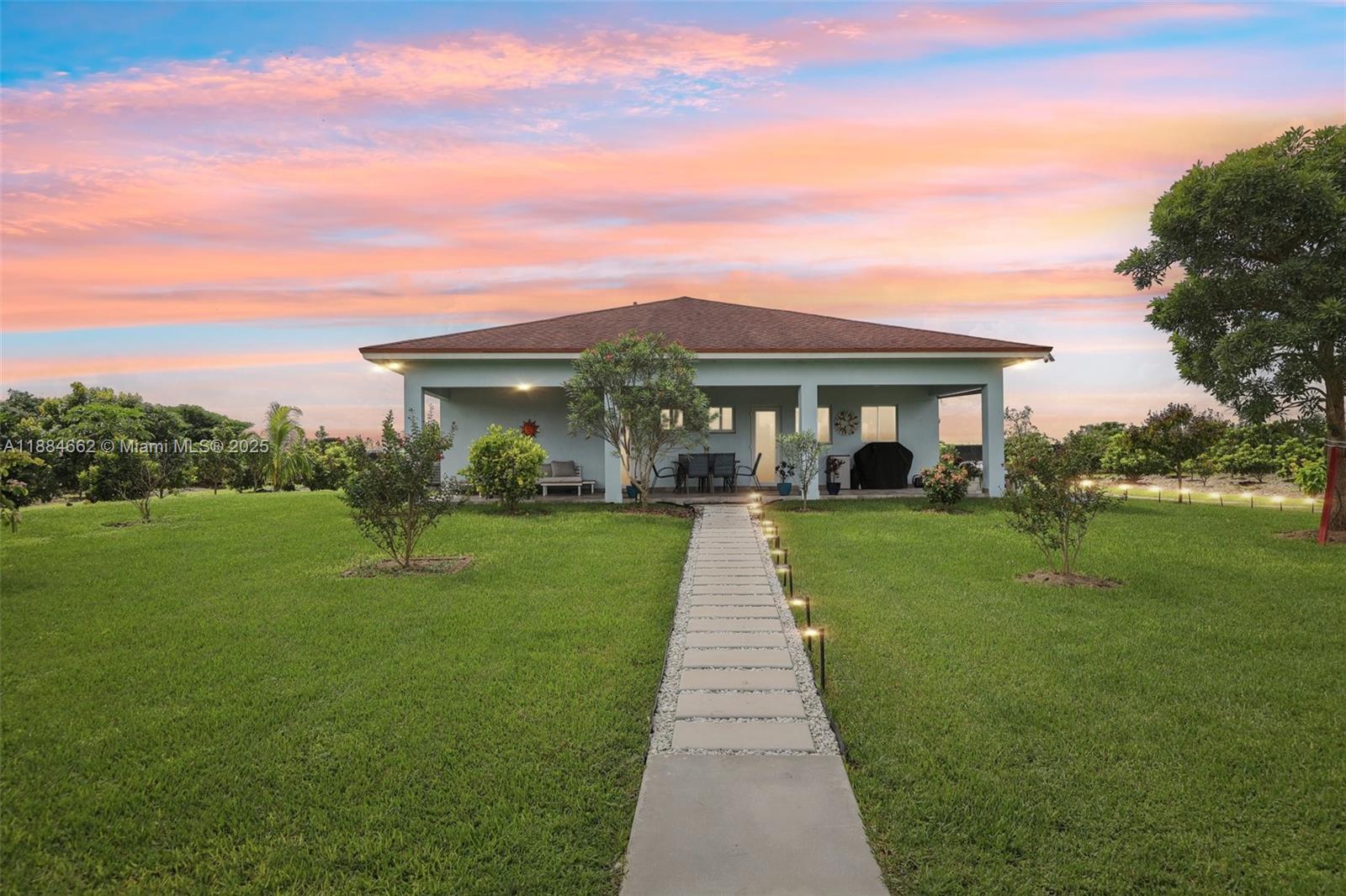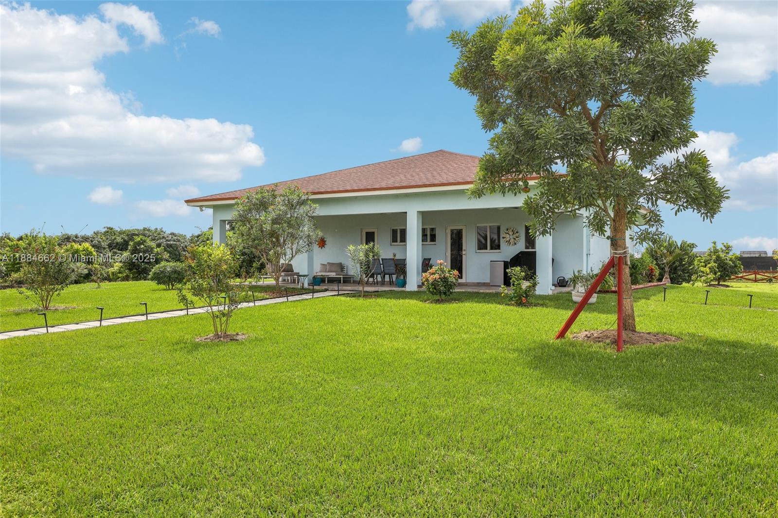 If you’re seeking tranquility away from the hustle and bustle this custom-built 2022 home in the redlands is the perfect retreat! nestled on 2.20 acres fully fenced in with electric gate and pole barn. inside you’ll find an open concept, quartz countertops, tile flooring, modern bathrooms, high ceilings, impact windows and doors, laundry room, abundant natural light. this property is equipped with a water treatment system, agriculture well pump, drip irrigation system, a 45-ft container for extra storage, chicken coop and covered terrace. those who love fresh fruit this land is filled with an impressive variety of fruit trees including mamey, coconut, avocado, mango, papaya, banana, sugar apple, mulberry, ciruela, chirimoya, soursop, guava, longan, lychee, star apple, lemon and lime.22555 SW 264TH ST, HOMESTEAD, FL 33031