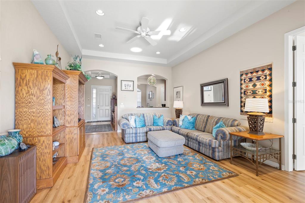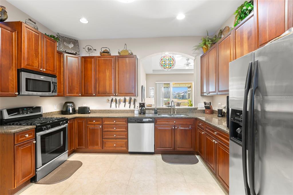 Discover a great opportunity located in the number one rated retirement community in america! this home is located in kings point and overlooks the 9th hole of the osprey course in this pet friendly location! (2 pets allowed with no weight restrictions) in addition, there is no cdd, no flood zone, short term rentals allowed and part of the 80/20 rule where an age waiver is possible if under 55! this chelsea floor plan features one of the most sought-after options: a front courtyard that not only welcomes your guests but also offers an additional outdoor living area. additionally, there is a screened and covered breezeway that provides shelter for your packages. inside, your eye will be directed to the view of the golf course from the moment you enter! the foyer greets you with impressive tray-accented high ceilings measuring 10 feet 8 inches, along with ample space designed for a drop zone and bench seating. the living room features the same impressive high tray ceiling as the foyer and has space for oversized furniture without feeling cramped. the kitchen is truly a chef’s dream with granite countertops, gas range, stainless steel appliances and loads of wood cabinetry with lazy susan corner cabinets and roll out shelving. there is a pass-through into the great room which makes for ease of serving and the dining overlooks the courtyard. the lanai has been expanded and now measures an impressive 14 x 16.8 feet. you will love watching golfers and observing nature, including a variety of birds, thanks to the unobstructed view and absence of immediate neighbors! the split floor plan includes a spacious primary bedroom that can easily fit king-size furniture, provides space for a sitting area, and boasts a tray ceiling. the en-suite bathroom has tall cabinetry, granite countertops, dual sinks, a walk-shower with glass enclosure and a separate water closet. storage is no issue with the spacious walk-in closet featuring wrap around shelving and 10’ ceilings. the second bedroom is filled with natural light, has several windows, a walk-in closet, and a nook that’s perfect for storing some of your furniture out of sight. this room has quick access to the second full bathroom which offers the same finishes as the primary along with a tub/shower enclosure. the third bedroom has double door access, a wall of windows that floods the space with natural light, and ample room to create an office while still accommodating a third sleeping area. the laundry room is equipped with the same updated cabinetry as the rest of the home. the two garages (12x21 each) and extended driveways provide more storage room and ease of parking than a two-car garage! this home is located close to the second entrance and south clubhouse. additional features and updates include solar tubes, arched doorways, ceiling fans throughout, no carpet and a kpw platinum warranty that can be transferred at the time of closing. fees include cable, internet, exterior insurance, maintenance grounds, pest control, private road, security, water, trash, sewer & more! activities include over 200 clubs, multiple indoor/outdoor heated pools, fitness, pickle ball, an onsite salon and multiple restaurants and so much more! if you plan on venturing out there is quick access to restaurants, shopping, beaches and 30 minutes to tampa international airport, less than an hour to the sarasota shops and 20 minutes to ellenton prime outlets!2290 SIFIELD GRNS, SUN CITY CENTER, FL 33573