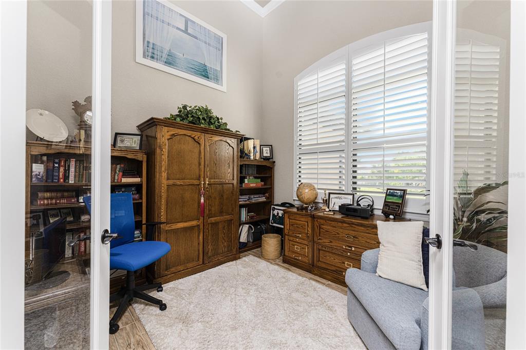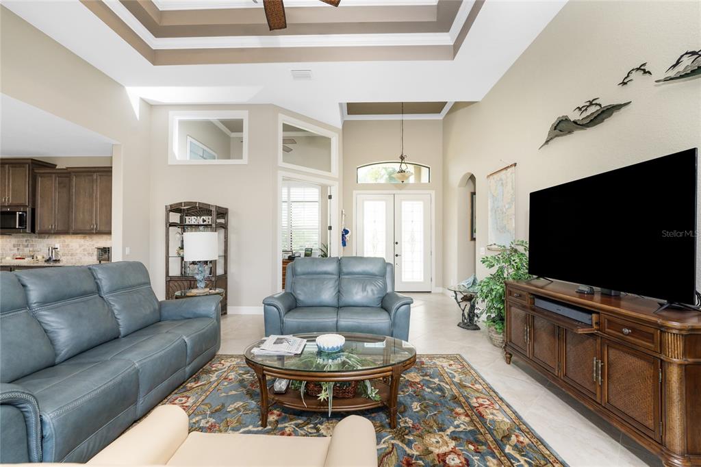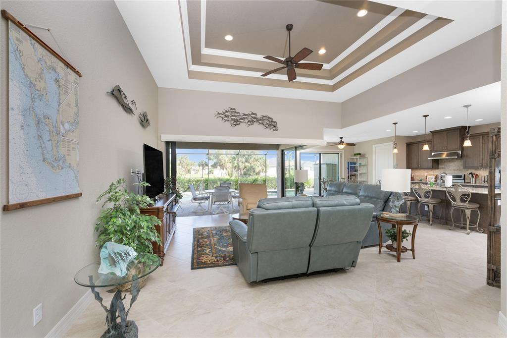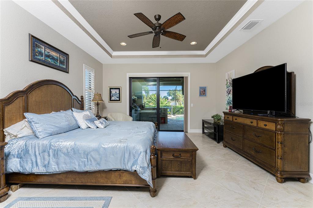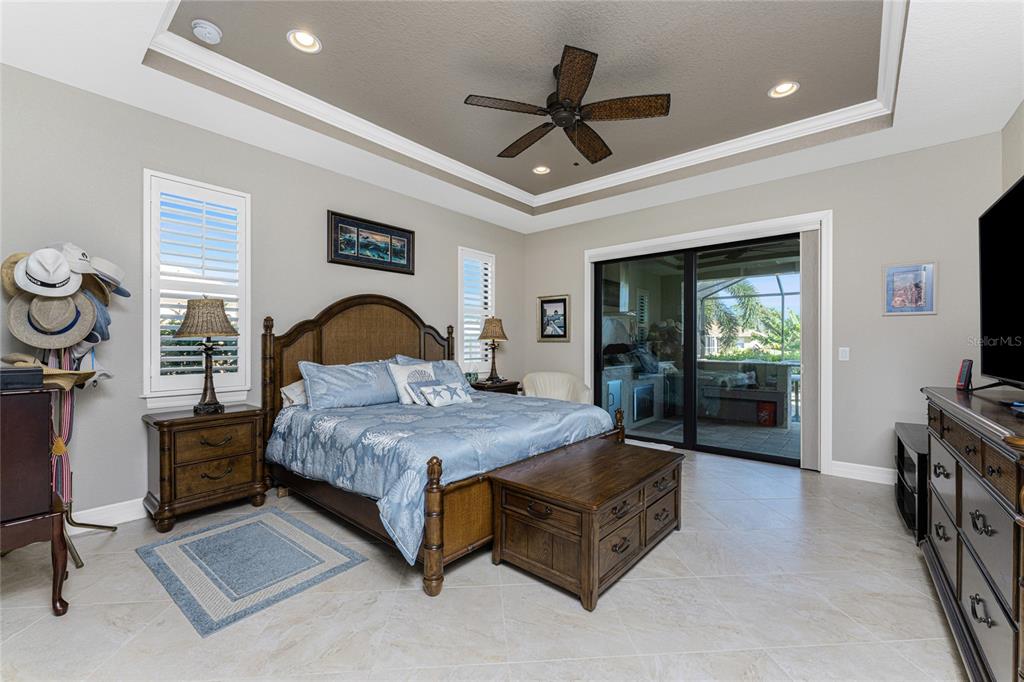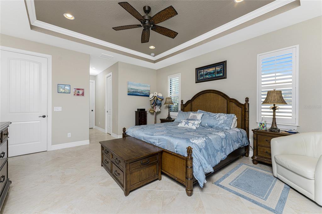 Split Bedroom Walk-In Closet(s)Ceiling Fan(s) High Ceilings Stone Counters Open Floorplan Window Treatments Solid Wood CabinetsCrown Molding Tray Ceiling(s)Exterior Features: