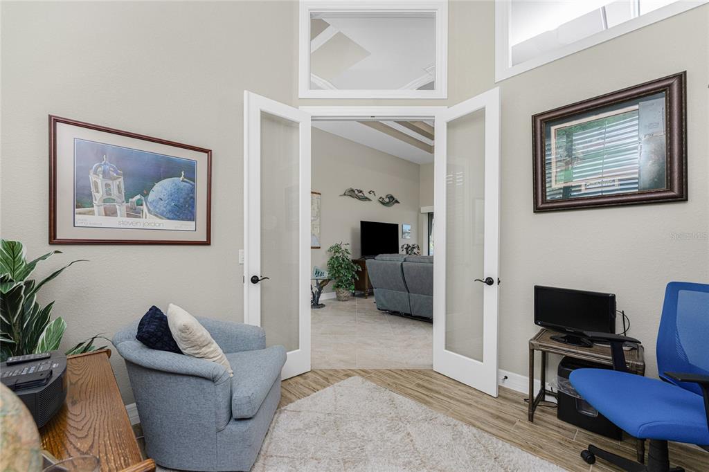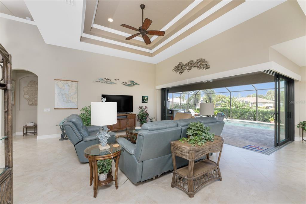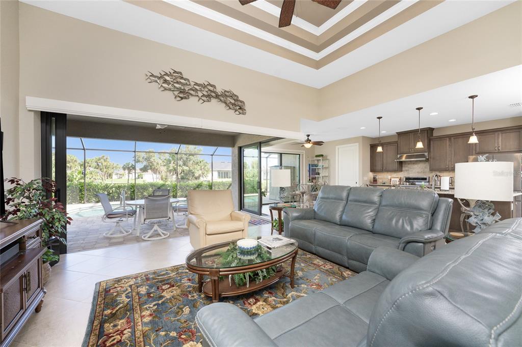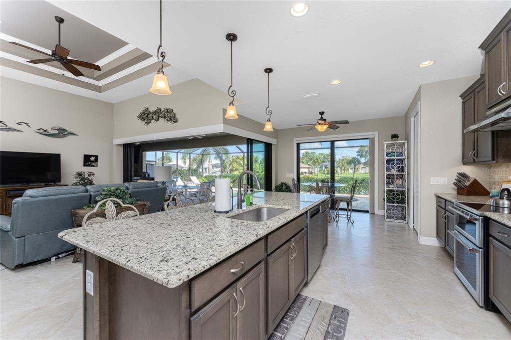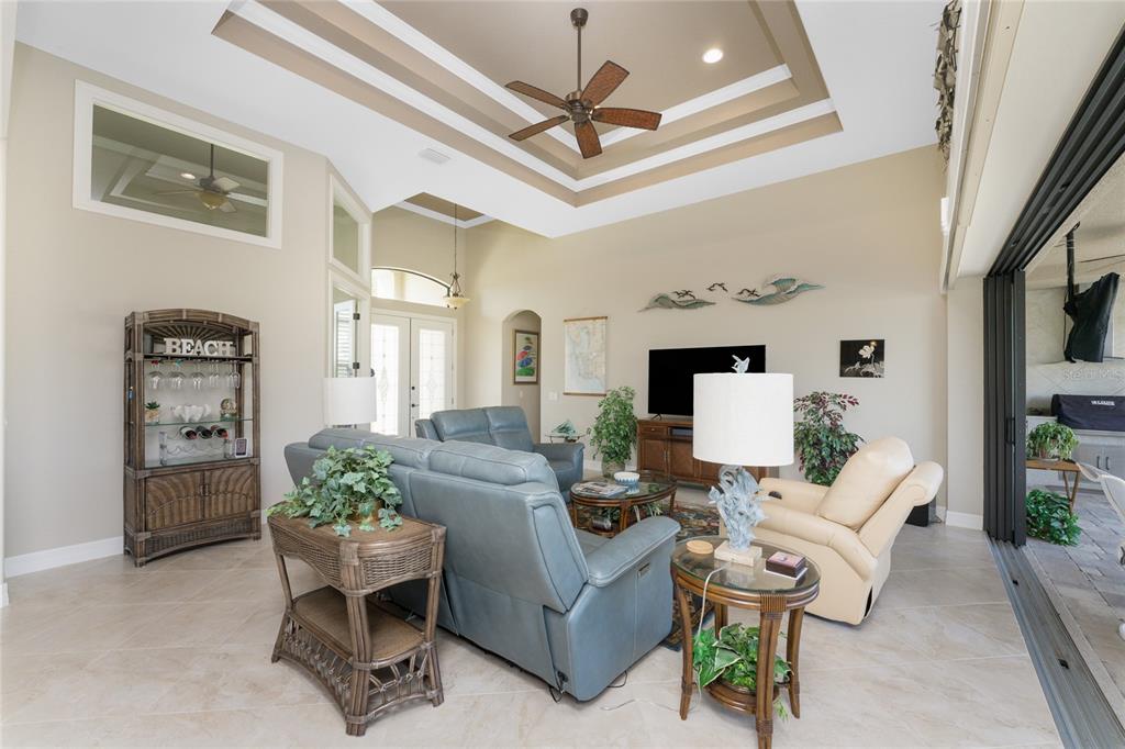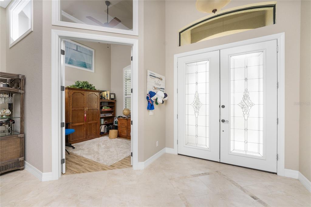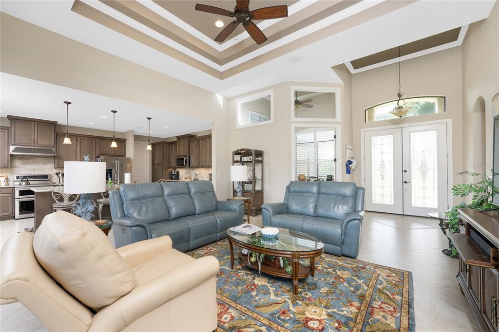 Split Bedroom Walk-In Closet(s)Ceiling Fan(s) High Ceilings Stone Counters Open Floorplan Window Treatments Solid Wood CabinetsCrown Molding Tray Ceiling(s)Exterior Features: