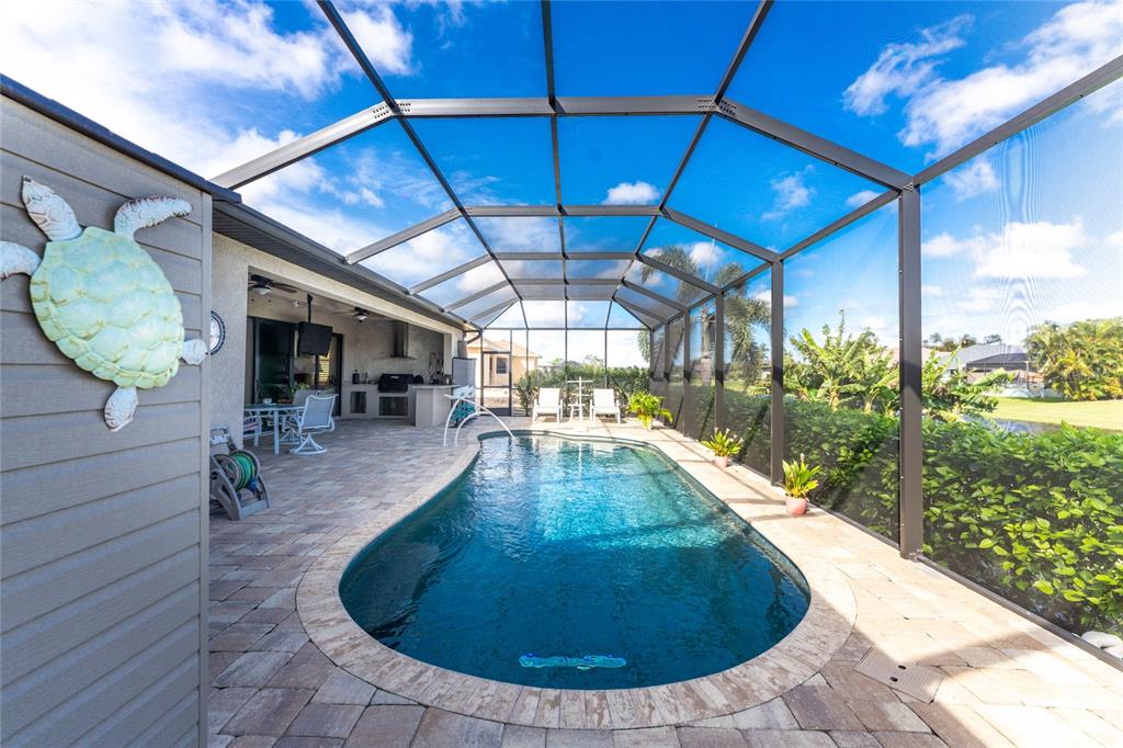 Don't miss this opportunity to own this stunning home built by dm dean. built in 2018, this waterfront home, sitting on two manicured lots with southern exposure in rotonda west, leaves no upgrades or amenities overlooked. upon entering this home, you will be amazed by the space and height from wall of zero-corner sliding doors to soaring ceilings that provide the full experience of indoor/outdoor living. this home boasts custom tile flooring, granite countertops in both kitchen and bathrooms, wood cabinetry, custom window treatments, custom closets, as well as custom cabinetry in the laundry room. entertaining family and friends is a dream with a huge lanai, heated saltwater pool, summer kitchen with bar space, pavers that extend from the home and surround the firepit. additional upgrades that is home offers are impact windows and doors, a new roof in 2023, as well as generator hook up. the 3 car garage has epoxy floors, insulated doors, and slat walls. this home is more than just a place to live, it is a lifestyle just waiting for you to discover. just minutes from some of the finest restaurants and beaches in florida, you may never leave home. make an appointment to see this one of a kind gem today!230 LONG MDW, ROTONDA WEST, FL 33947