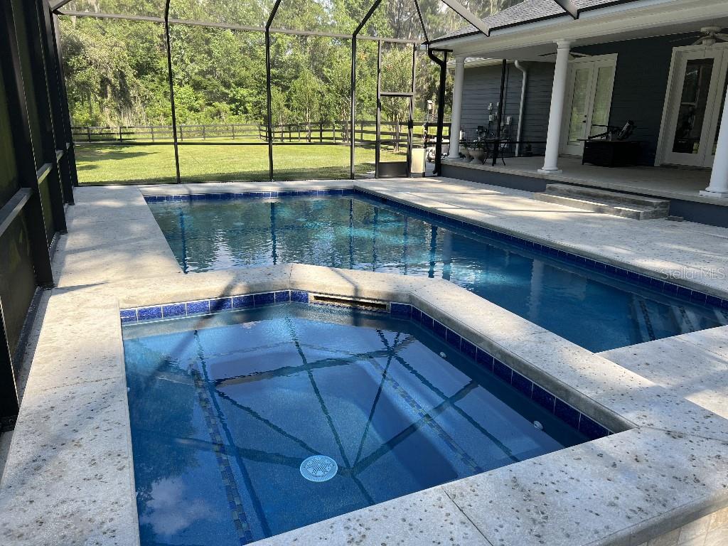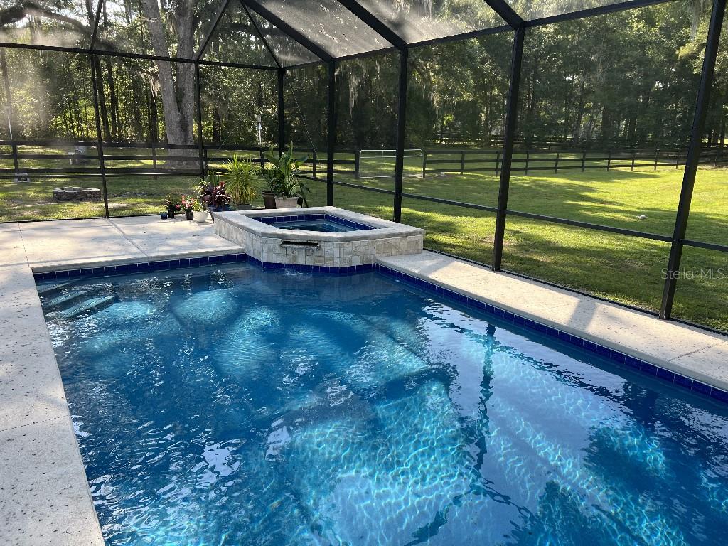 Custom home within exclusive gated community, country club farms. 2.87 acres with 25 acre horse farm abutting the back of property. four bedroom, three bathroom with heated pool and spa with large screened enclosure. bamboo hard wood and travertine throughout entire home. crown molding, built-ins in living room and kitchen, 9 1/2 foot ceilings, horse fence, plantation shutters, water filtration system and much more. new roof, new ac/heating, recently painted interior/exterior, solar attic fans, new pool surface and new screening. luxury home in highly sought after private community.2300 SE 73RD, OCALA, FL 34480