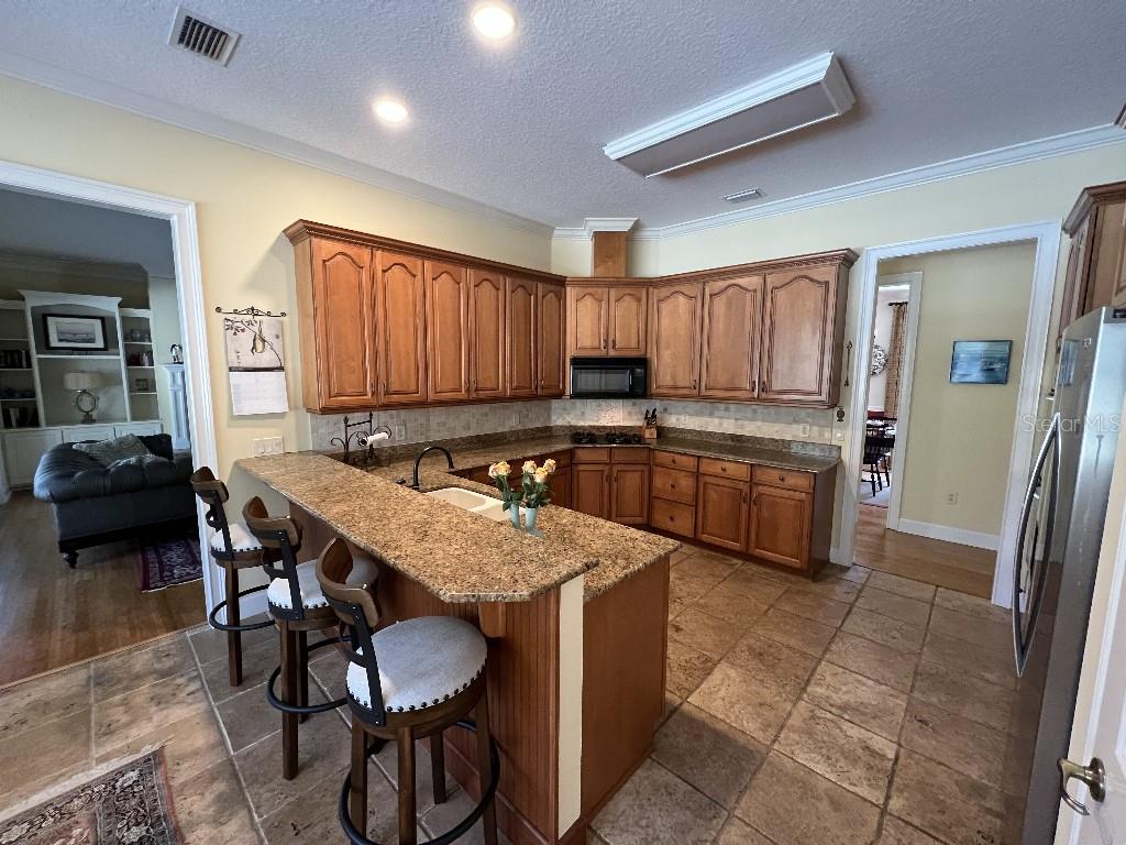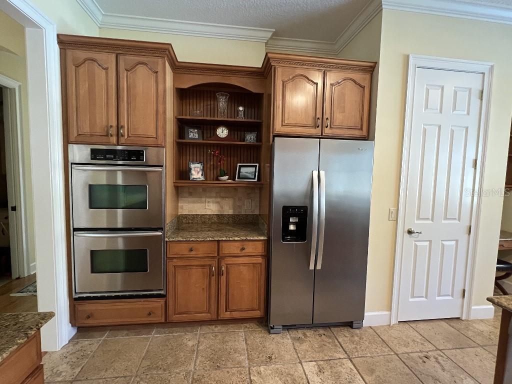 Split BedroomBuilt-in Features Walk-In Closet(s)Ceiling Fan(s) Eating Space In Kitchen High Ceilings Stone Counters Thermostat Window Treatments Solid Surface Counters Solid Wood CabinetsCrown Molding Primary Bedroom Main FloorAttic FanAttic VentilatorExterior Features: