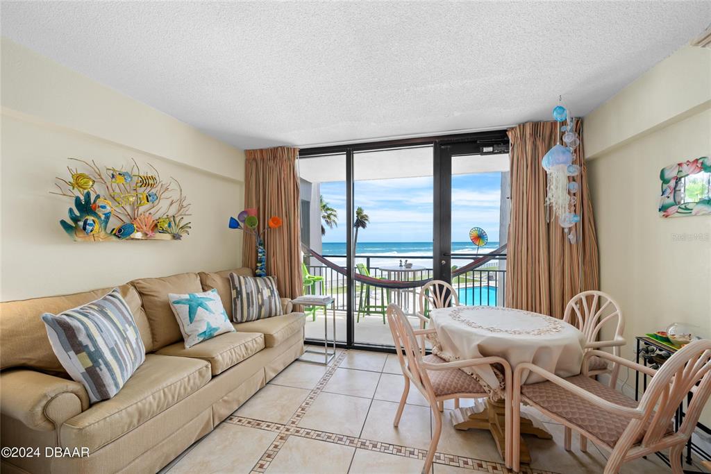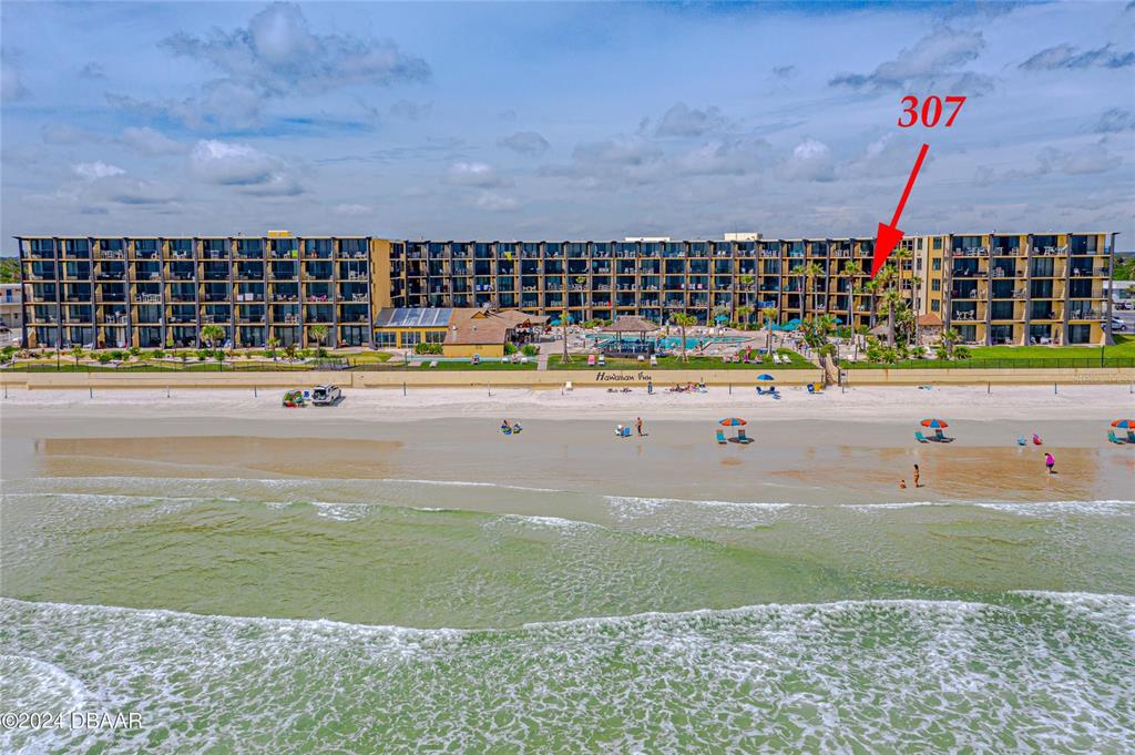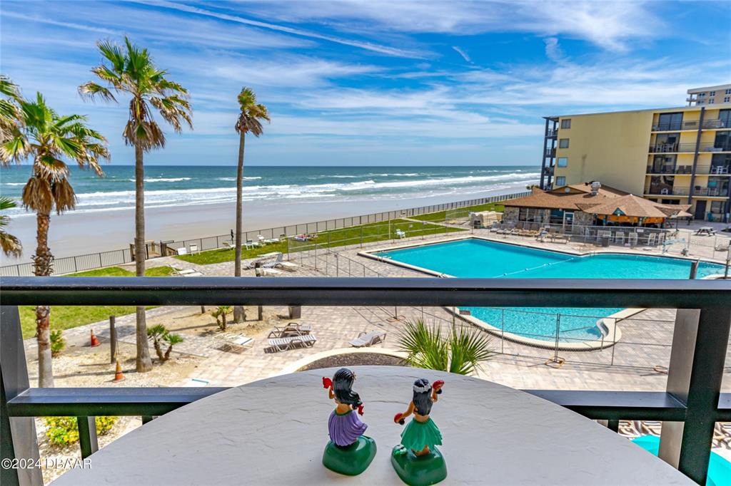 If you are looking for the perfect investment and vacation property, this is it! step into a beautifully designed space featuring a fully equipped kitchen and an update sleek bathroom. lounge on your oceanfront patio, complete with nice outdoor furniture and a relaxing hammock, the perfect place to take in the salt air. inside, a plush king-sized bed and a cozy sofa bed provide comfort and relaxation after a day of beach adventures. embrace the spirit of aloha with island inspired decor. all furniture, appliances, bedding, kitchen supplies ,and decor included. enjoy panoramic ocean views from both sides of the unit, offering a breathtaking backdrop to your island getaway. the hawaiian inn has a really beautiful beachfront pool and pool deck, featuring a tiki bar with drinks and burgers. located very close to shopping, dining, airport, attractions, and nascar, and also situated on the world's most famous beach! all information recorded in the mls intended to be accurate but cannot be guaranteed.2301 S ATLANTIC #307, DAYTONA BEACH, FL 32118