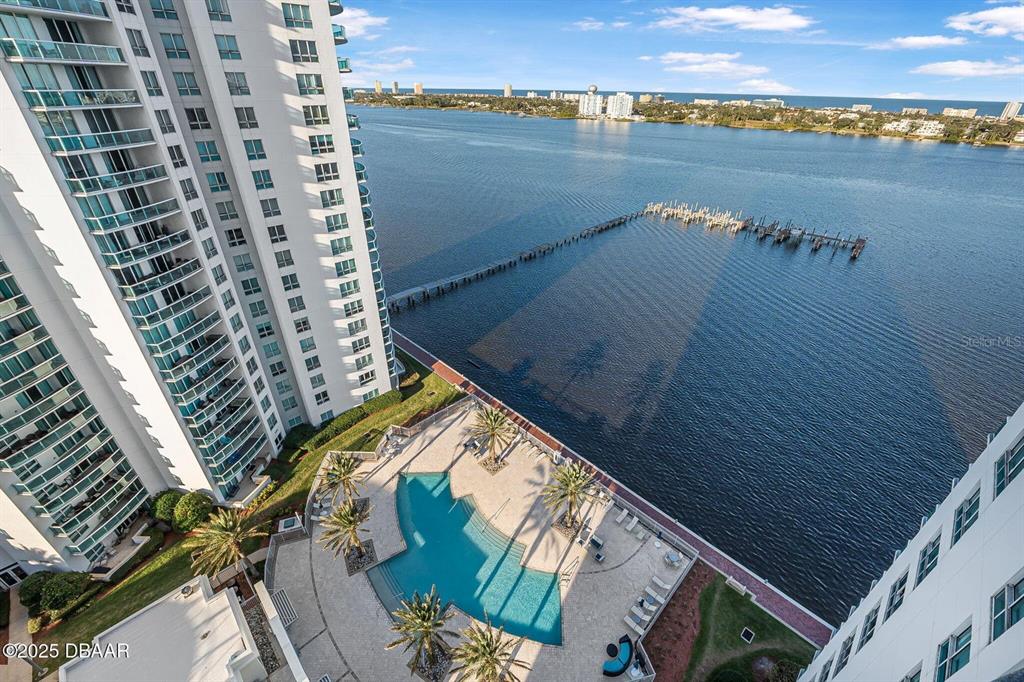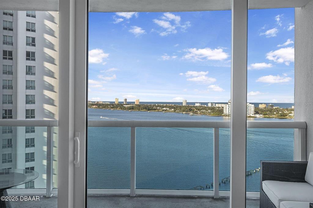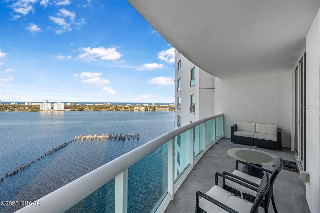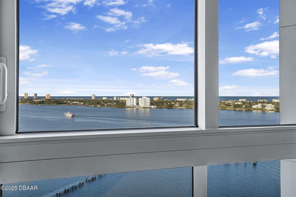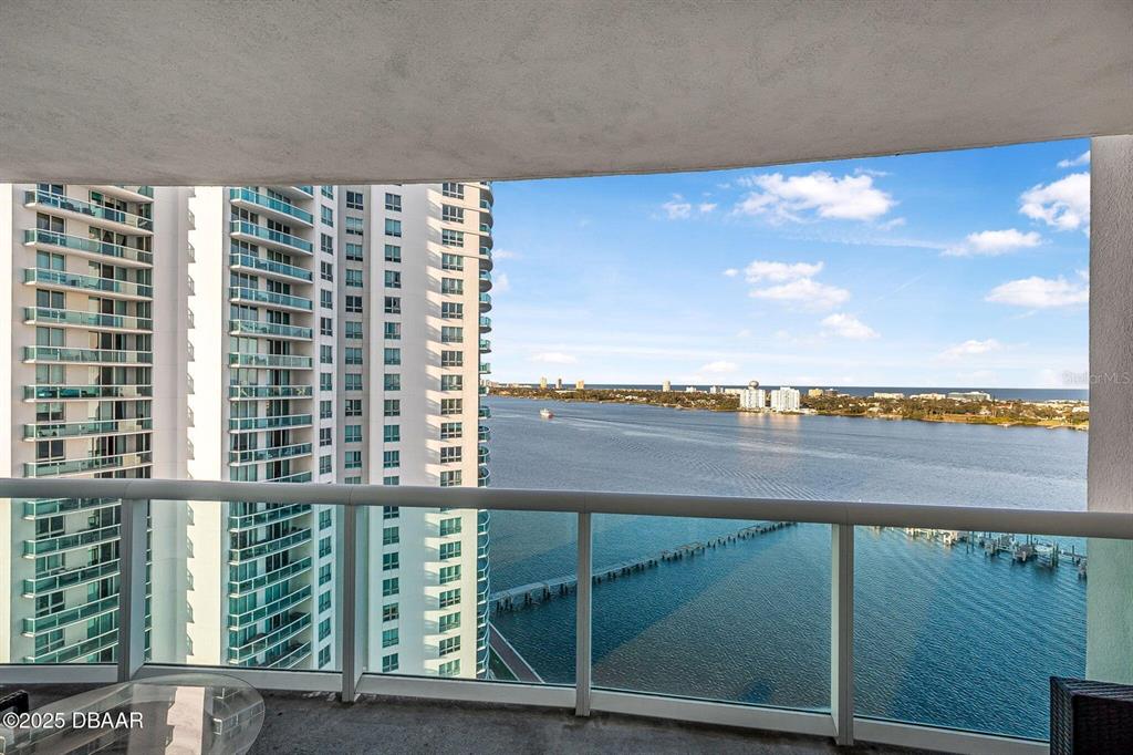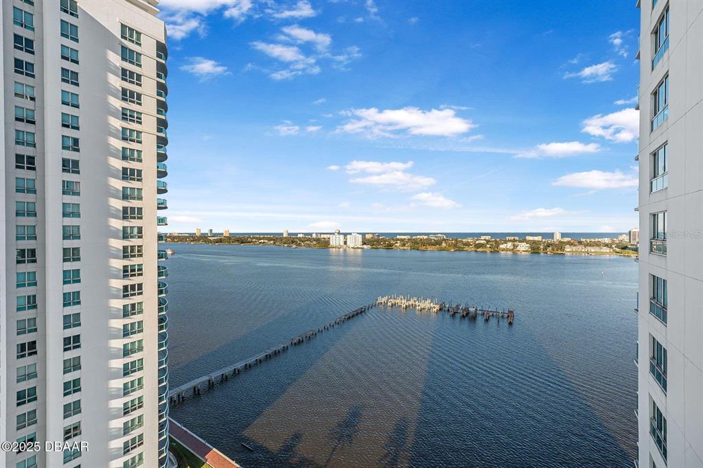 Price to sell! breathtaking waterfront luxury condo at marina grande! step into unparalleled luxury and be captivated by the stunning views of the intracoastal waterway and atlantic ocean from every room in this 2-bedroom, 2-bath condo located in the prestigious 24/7 gated community of marina grande. boasting a desirable split floor plan, this home features soaring 9-foot ceilings and floor-to-ceiling glass doors that open to an expansive glass balcony overlooking the halifax river. the spacious master suite offers a walk-in closet and an opulent master bath with marble counters and flooring, dual sinks, a jetted soaking tub, and a large walk-in shower. the gourmet kitchen is a chef's dream, equipped with imported italian cabinetry, stainless steel appliances, and granite countertops—all with incredible waterfront views. additional conveniences include a new washer and dryer inside the unit and prime parking location covered. enjoy your mornings watching dolphins play in the river or take in the vibrant city skyline illuminated by fireworks at night. this luxurious residence is more than a homeit's a lifestyle. schedule your private showing today and experience the magic of marina grande living! this condo complex has the largest sq. ft of any condo and offers some amazing amenities: 7 day concierge, security guarded-gated access with more than 10,000 sq. ft of amenities. live the condo luxury life with a movie theater, party room, fitness center, a yoga/pilates/dance studio, steam rooms, billiards room, game room, library, wi-fi, full-time concierge, hot tub, 2 beautiful pools, his an hers steam rooms and lots of social events. assigned garage parking and storage area. enjoy maintenance free waterfront living at the fabulous mg on the halifax and you almost never have to leave the condo! the marina grande is an active community, the residents are offered yoga classes, poker night, monday night football, coffee time, movie night, mahjong, thursday's food truck night, and grill & chill with your neighbors. with easy access to downtown daytona beach, the world's most famous beach, international speedway, golf courses, kayaking, deep-sea fishing, jet skiing, and boating. don't miss this amazing opportunity and call to schedule your private showing today!231 RIVERSIDE #1604-1, DAYTONA BEACH, FL 32117