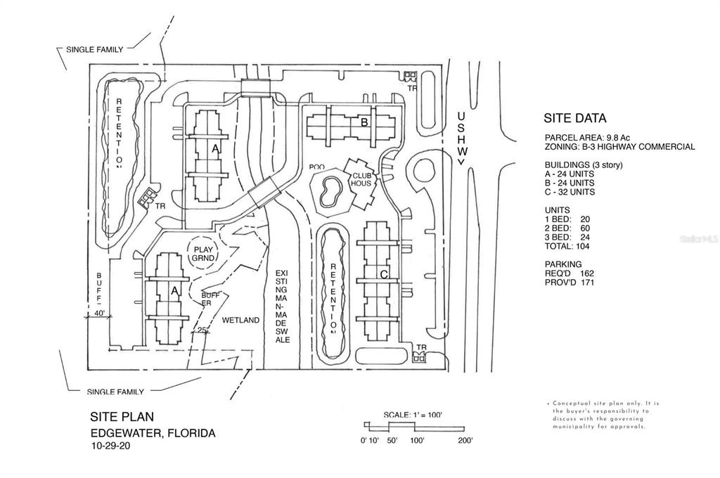 9.77 +/- acres site recently approved for multi-family, located in edgewater, fl. situated on a major thoroughfare, us highway 1 (ridgewood avenue); less than half mile south of indian river blvd (us highway 442). zoned b-3 highway commercial. with the potential of developing an apartment complex of 100+ units. a variety of uses include also automobile services, sales and leasing, boat sales and leasing, day care - children or adult, financial institution, garden & yard supplies, hotel / motel, machine shop / repair, medical / dental offices, recreational uses, restaurants, retail - general, shopping centers. nearby businesses include dunkin, chick-fil-a, publix, winn-dixie, wells fargo, cvs, jiffy lube and best western. anticipated deering park center will be located less than 5 miles away and has been approved for 1,362 homes.Gelfand Realty Miami Properties for Sale - Other Land for Sale