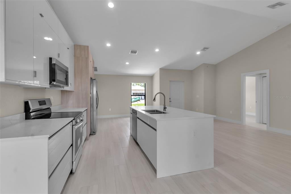 Welcome to newly built home 23367 mayville ave — a beautifully maintained 4-bedroom, 2-bath, hurricane impact window home nestled in the heart of punta gorda, just minutes from shopping, dining, and the gulf coast lifestyle florida is famous for. situated in a quiet, no-hoa neighborhood with a north-facing front exposure, this home offers both privacy and convenience. step inside to find a light and bright open floor plan with ceramic tile flooring throughout, vaulted ceilings, and a split-bedroom layout ideal for families or guests. the spacious kitchen features stainless steel appliances, quartz countertops, ample counter space, and a breakfast bar perfect for casual dining. the primary suite boasts a walk-in closet and an ensuite bath with a walk-in shower. the ceramic tiled bathrooms, tiled backsplash, automated garage and automated garden irrigation system is just the cherry on top! enjoy florida living with an outside patio overlooking the private backyard — perfect for morning coffee or evening gatherings. with a two-car garage, newer roof, and impact-resistant windows, this home combines comfort and peace of mind. located close to i-75, beaches, top-rated schools, and downtown punta gorda, this home is the perfect blend of tranquility and accessibility.23367 MAYVILLE, PUNTA GORDA, FL 33980