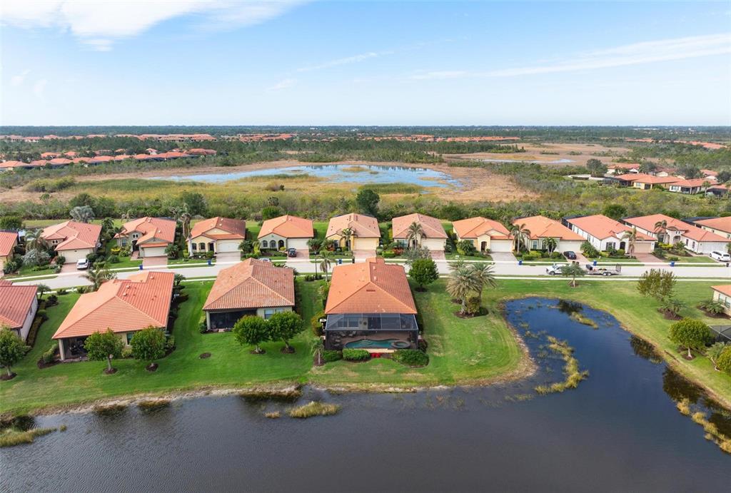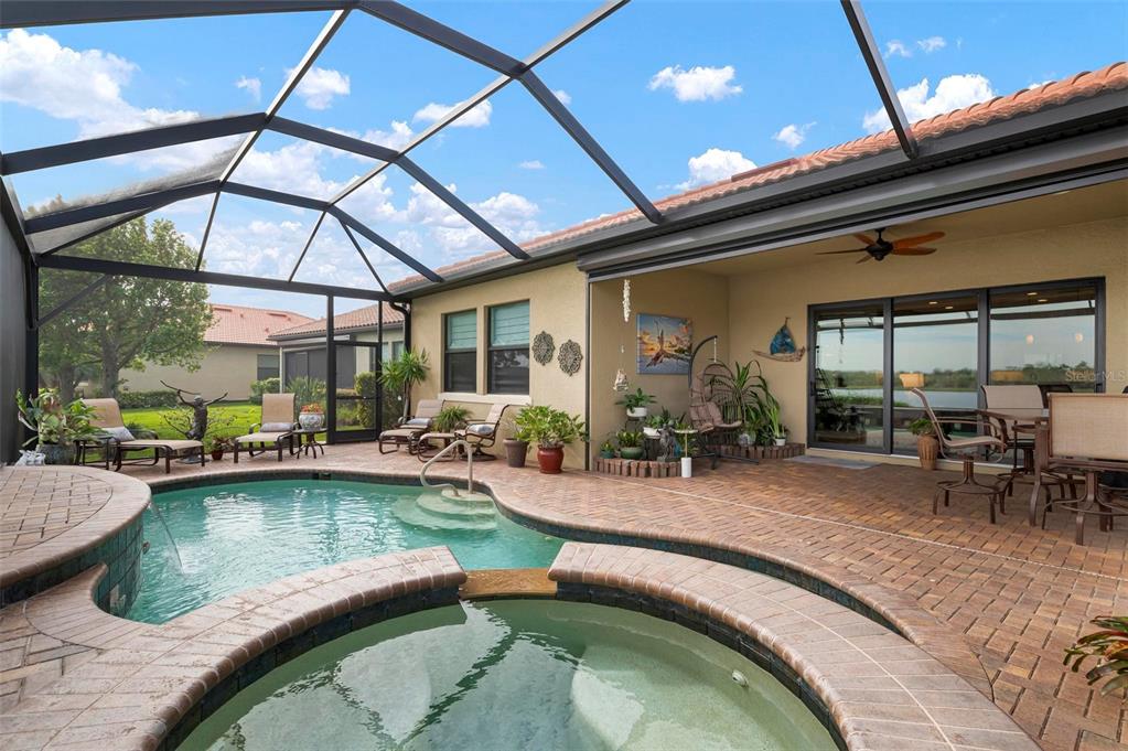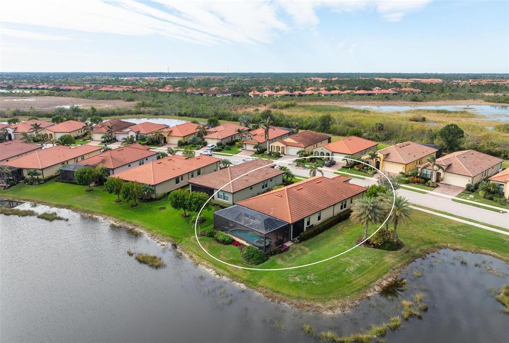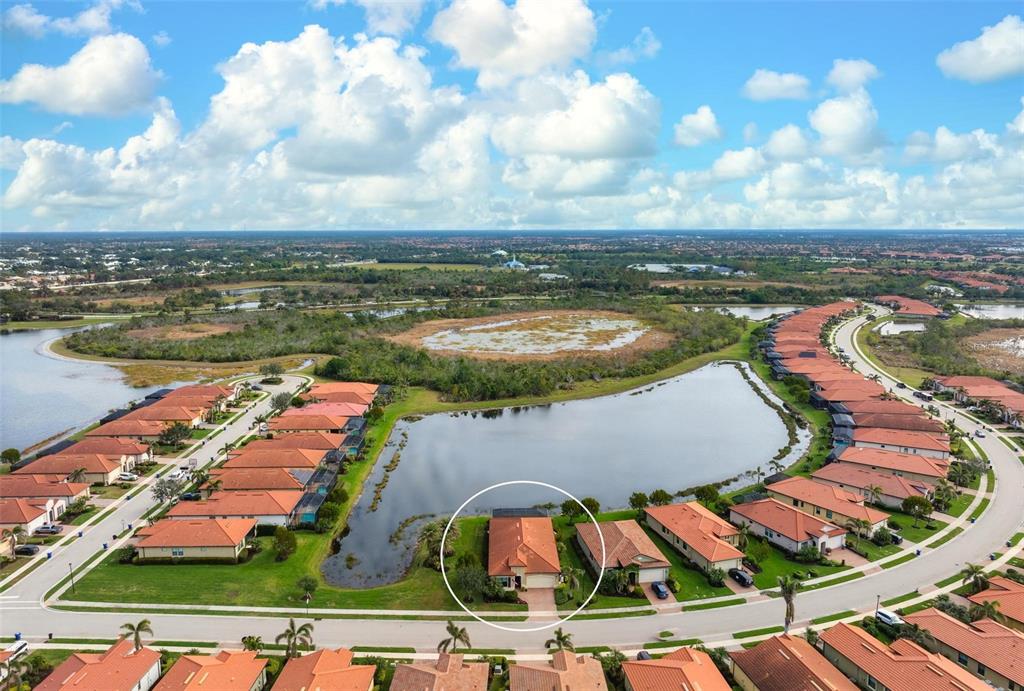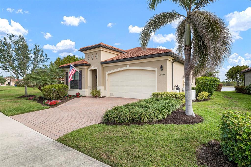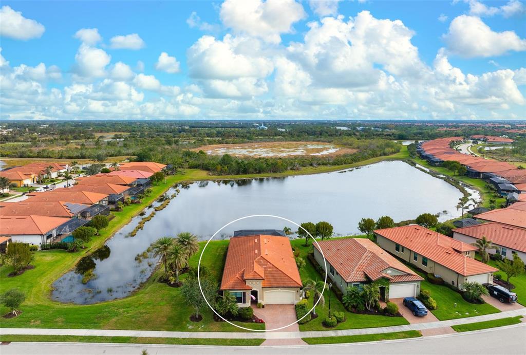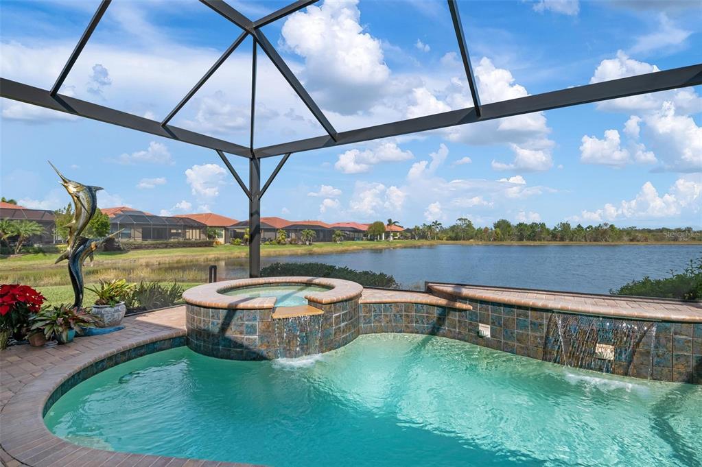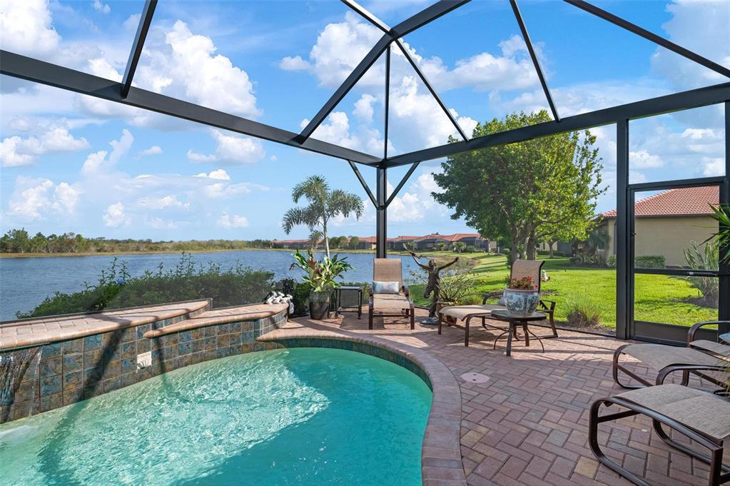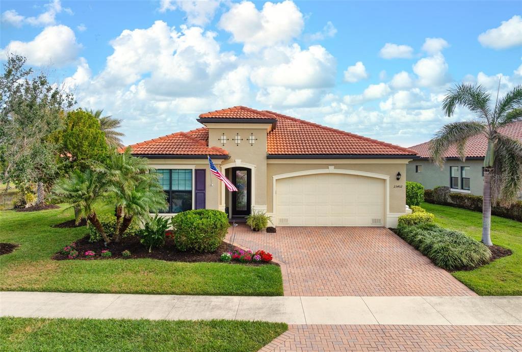 Wrap around water views of the natural florida landscape are yours to enjoy from sunrise to sunset. welcome to the key largo by wci homes, a true symbol of quality and craftsmanship, located in the exclusive lake village of sarasota national. this stunning private tip lot offers breathtaking water and preserve views, providing the perfect backdrop for your everyday living. step outside to your heated saltwater pool and spa, with a clearview screen enclosure for unobstructed views. inside, you'll find luxurious 8-foot interior doors, tall baseboards, and beautiful travertine-look porcelain tile throughout the living areas and baths. the gourmet island kitchen features staggered solid wood linen cabinets with crown molding, under-cabinet lighting, granite countertops, and sleek stainless-steel appliances. each of the three spacious bedrooms boasts its own private full bath, providing ultimate comfort and privacy. additional upgrades include extensive landscape lighting, a whole-home water conditioning system, impact-resistant windows and doors, and a whole-home generator for peace of mind. this certified audubon community offers miles of picturesque sidewalks winding through the natural florida surroundings. enjoy superb amenities such as a resort-style pool with a tiki bar overlooking the golf course, a fitness center, pickleball and tennis courts, a coffee lounge, and an on-site restaurant. for dog lovers, there's even a park just for your furry friends! as a lake village homeowner, you'll also have access to the golf course during the off-season. excellent location right between downtown wellen park with its shops, restaurants and braves stadium and historic downtown venice with its quaint shops, tree-lined streets and beautiful beaches. experience the very best in luxury living with this exceptional home—schedule your private showing today!23402 COPPERLEAF, VENICE, FL 34293