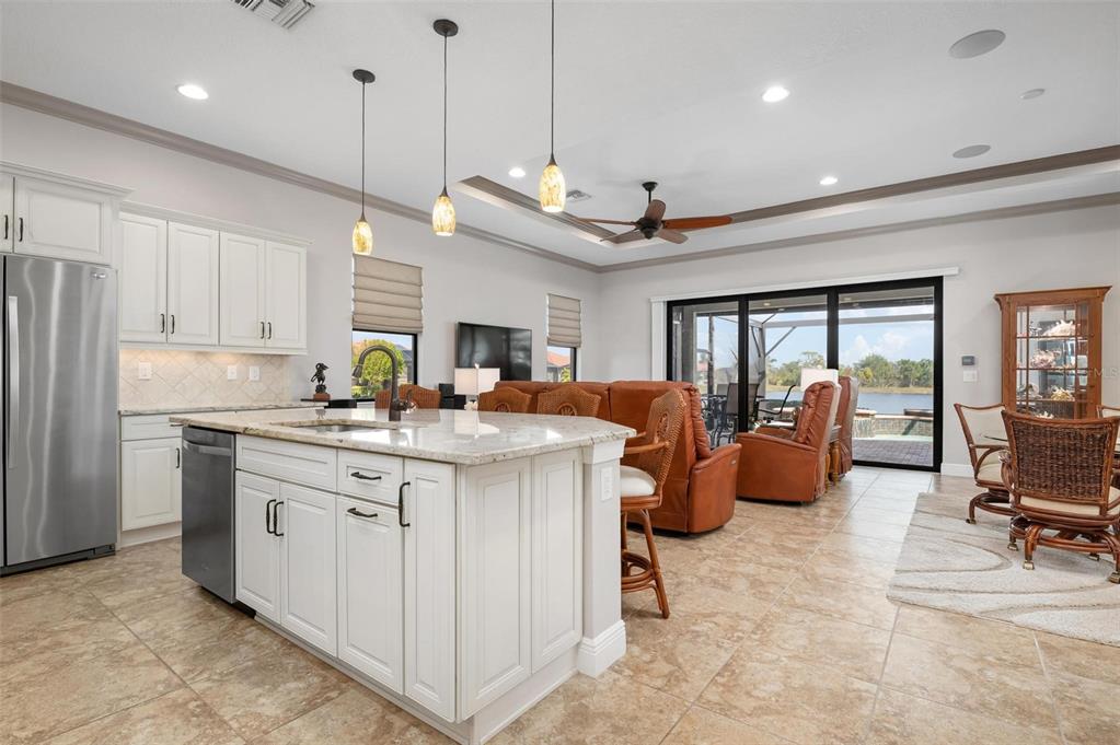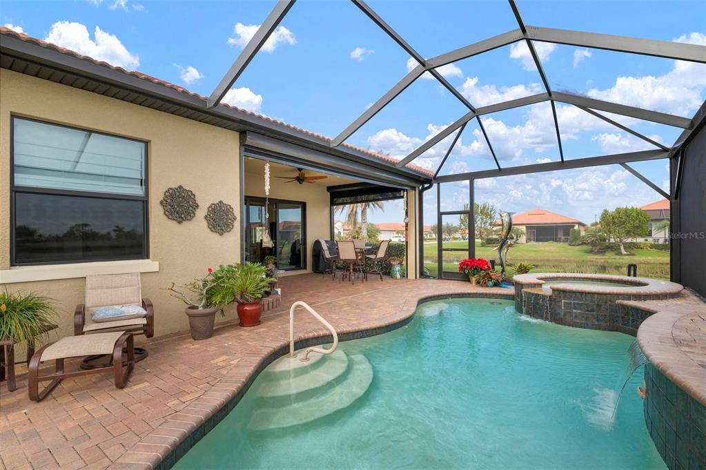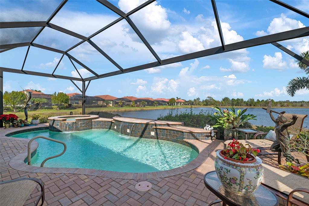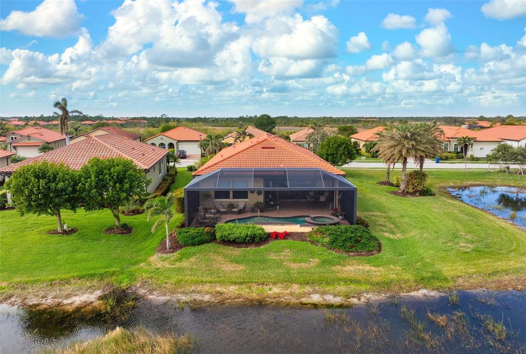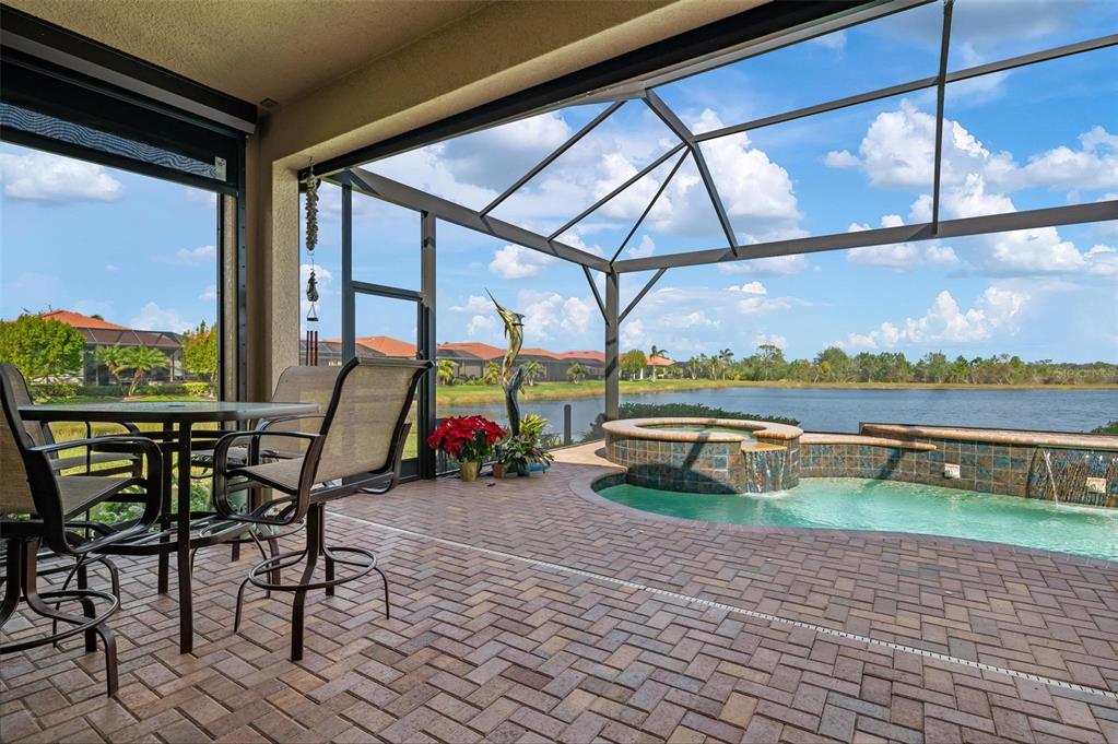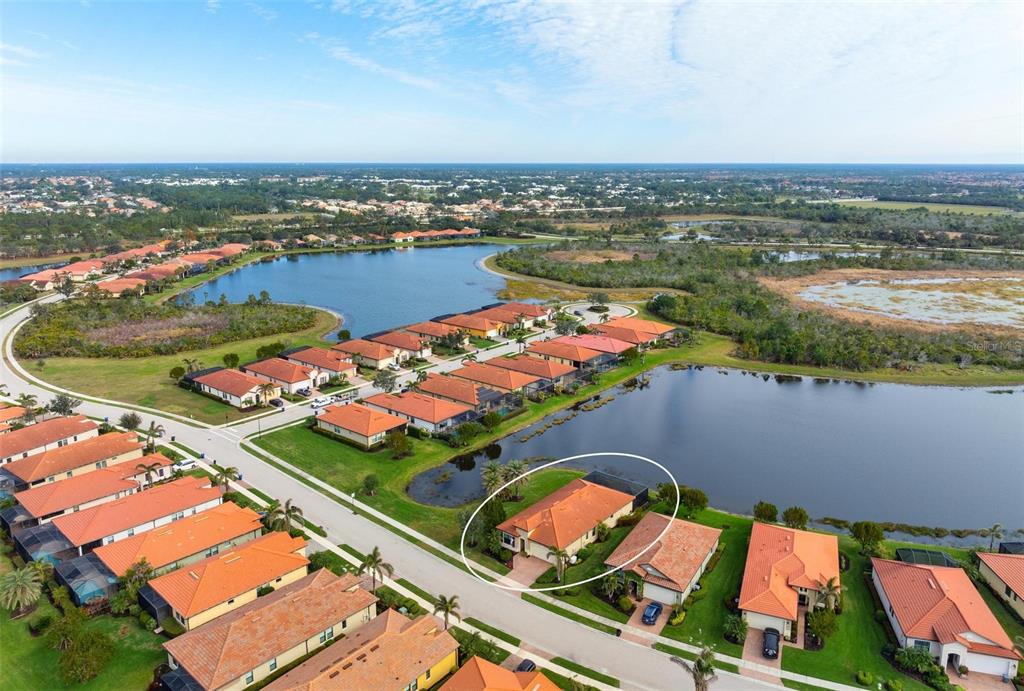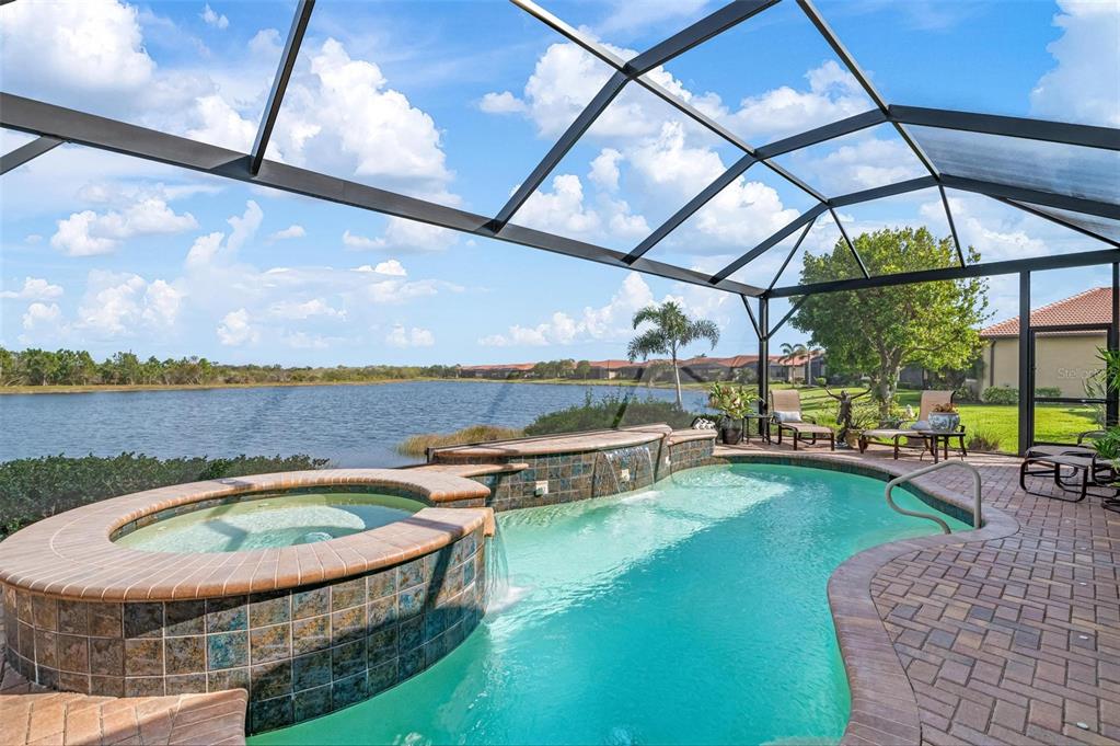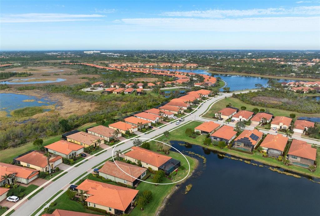 Wrap around water views of the natural florida landscape are yours to enjoy from sunrise to sunset. welcome to the key largo by wci homes, a true symbol of quality and craftsmanship, located in the exclusive lake village of sarasota national. this stunning private tip lot offers breathtaking water and preserve views, providing the perfect backdrop for your everyday living. step outside to your heated saltwater pool and spa, with a clearview screen enclosure for unobstructed views. inside, you'll find luxurious 8-foot interior doors, tall baseboards, and beautiful travertine-look porcelain tile throughout the living areas and baths. the gourmet island kitchen features staggered solid wood linen cabinets with crown molding, under-cabinet lighting, granite countertops, and sleek stainless-steel appliances. each of the three spacious bedrooms boasts its own private full bath, providing ultimate comfort and privacy. additional upgrades include extensive landscape lighting, a whole-home water conditioning system, impact-resistant windows and doors, and a whole-home generator for peace of mind. this certified audubon community offers miles of picturesque sidewalks winding through the natural florida surroundings. enjoy superb amenities such as a resort-style pool with a tiki bar overlooking the golf course, a fitness center, pickleball and tennis courts, a coffee lounge, and an on-site restaurant. for dog lovers, there's even a park just for your furry friends! as a lake village homeowner, you'll also have access to the golf course during the off-season. excellent location right between downtown wellen park with its shops, restaurants and braves stadium and historic downtown venice with its quaint shops, tree-lined streets and beautiful beaches. experience the very best in luxury living with this exceptional home—schedule your private showing today!23402 COPPERLEAF, VENICE, FL 34293