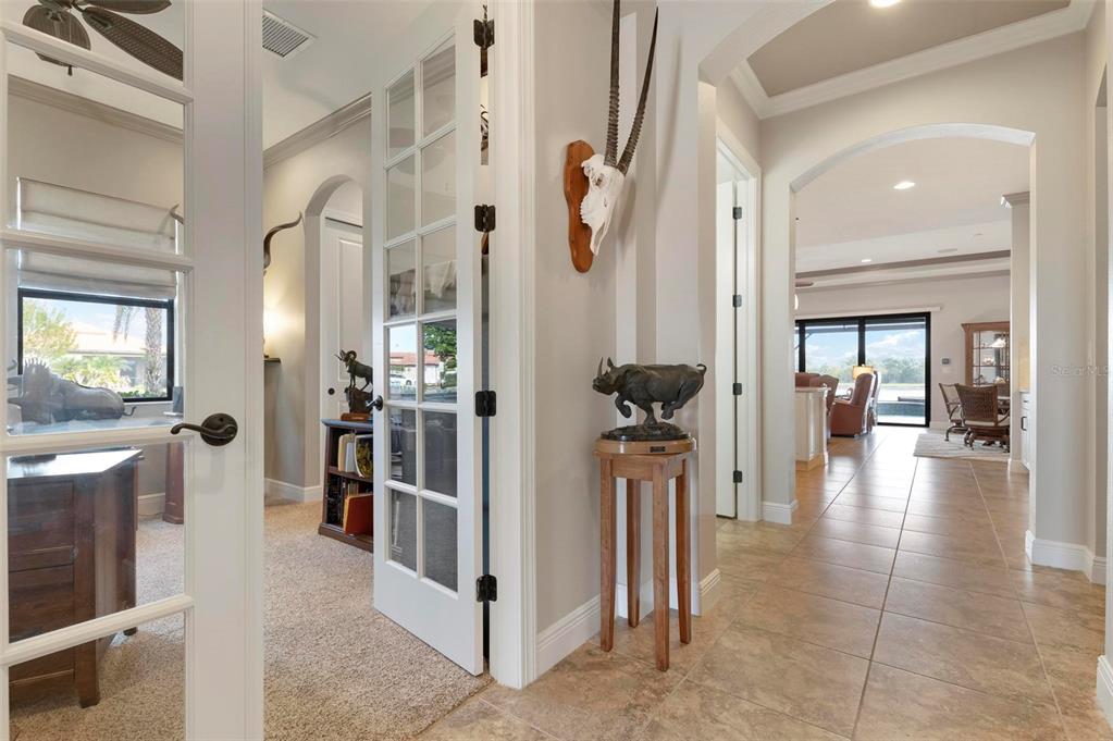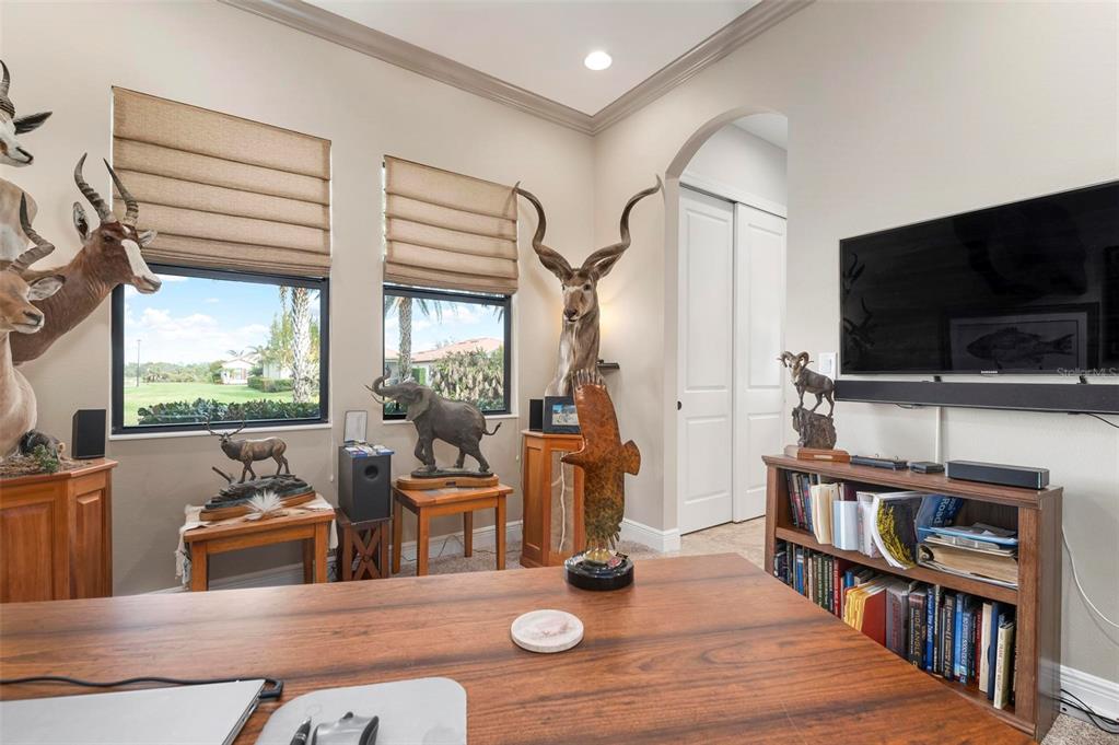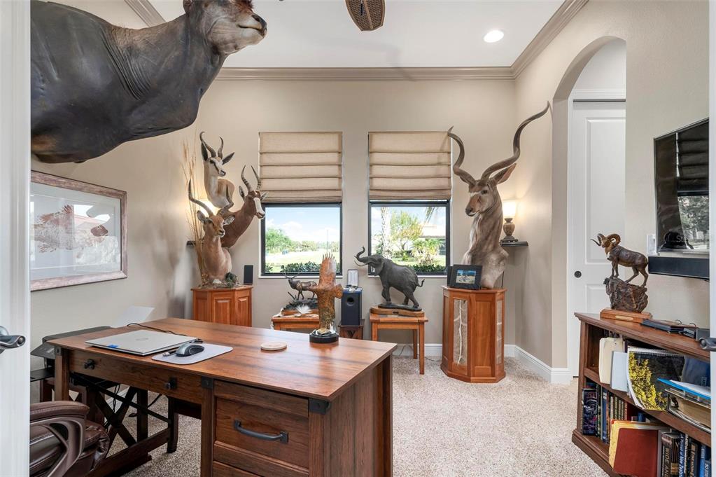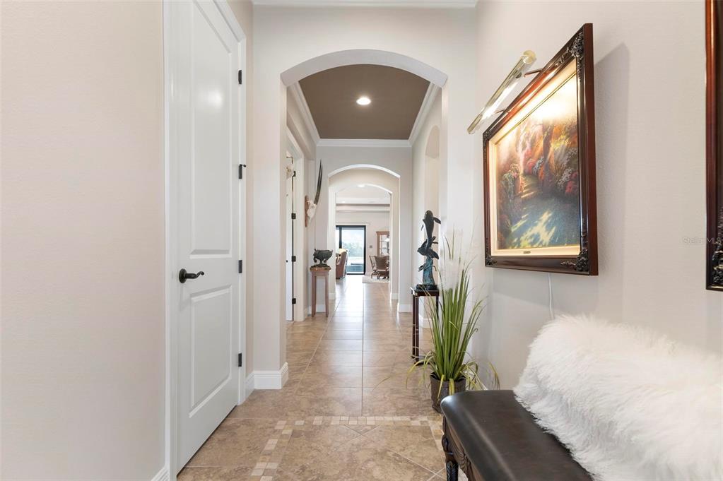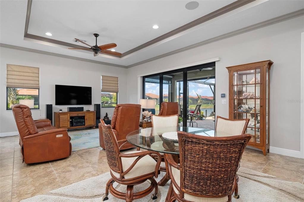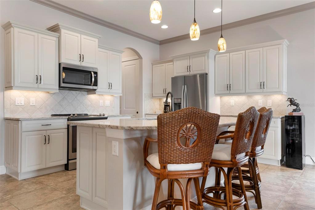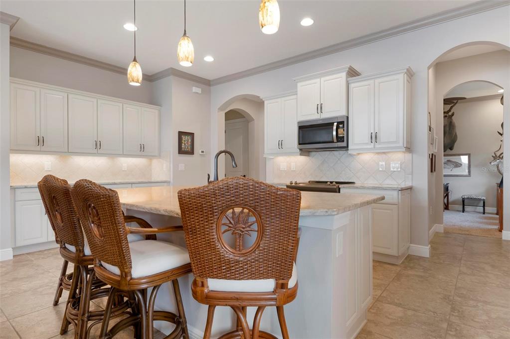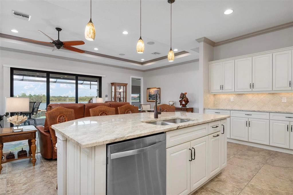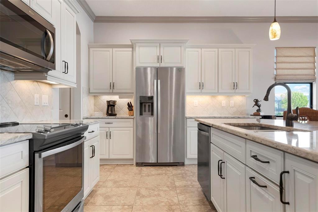 Wrap around water views of the natural florida landscape are yours to enjoy from sunrise to sunset. welcome to the key largo by wci homes, a true symbol of quality and craftsmanship, located in the exclusive lake village of sarasota national. this stunning private tip lot offers breathtaking water and preserve views, providing the perfect backdrop for your everyday living. step outside to your heated saltwater pool and spa, with a clearview screen enclosure for unobstructed views. inside, you'll find luxurious 8-foot interior doors, tall baseboards, and beautiful travertine-look porcelain tile throughout the living areas and baths. the gourmet island kitchen features staggered solid wood linen cabinets with crown molding, under-cabinet lighting, granite countertops, and sleek stainless-steel appliances. each of the three spacious bedrooms boasts its own private full bath, providing ultimate comfort and privacy. additional upgrades include extensive landscape lighting, a whole-home water conditioning system, impact-resistant windows and doors, and a whole-home generator for peace of mind. this certified audubon community offers miles of picturesque sidewalks winding through the natural florida surroundings. enjoy superb amenities such as a resort-style pool with a tiki bar overlooking the golf course, a fitness center, pickleball and tennis courts, a coffee lounge, and an on-site restaurant. for dog lovers, there's even a park just for your furry friends! as a lake village homeowner, you'll also have access to the golf course during the off-season. excellent location right between downtown wellen park with its shops, restaurants and braves stadium and historic downtown venice with its quaint shops, tree-lined streets and beautiful beaches. experience the very best in luxury living with this exceptional home—schedule your private showing today!23402 COPPERLEAF, VENICE, FL 34293