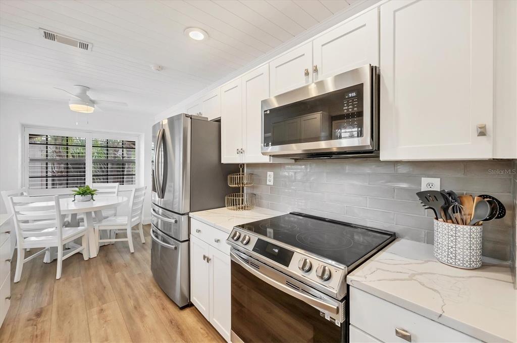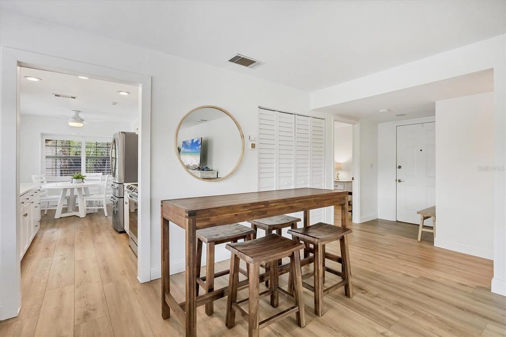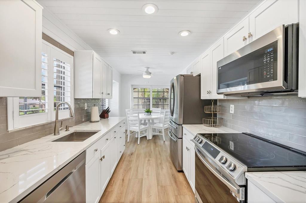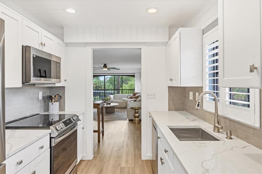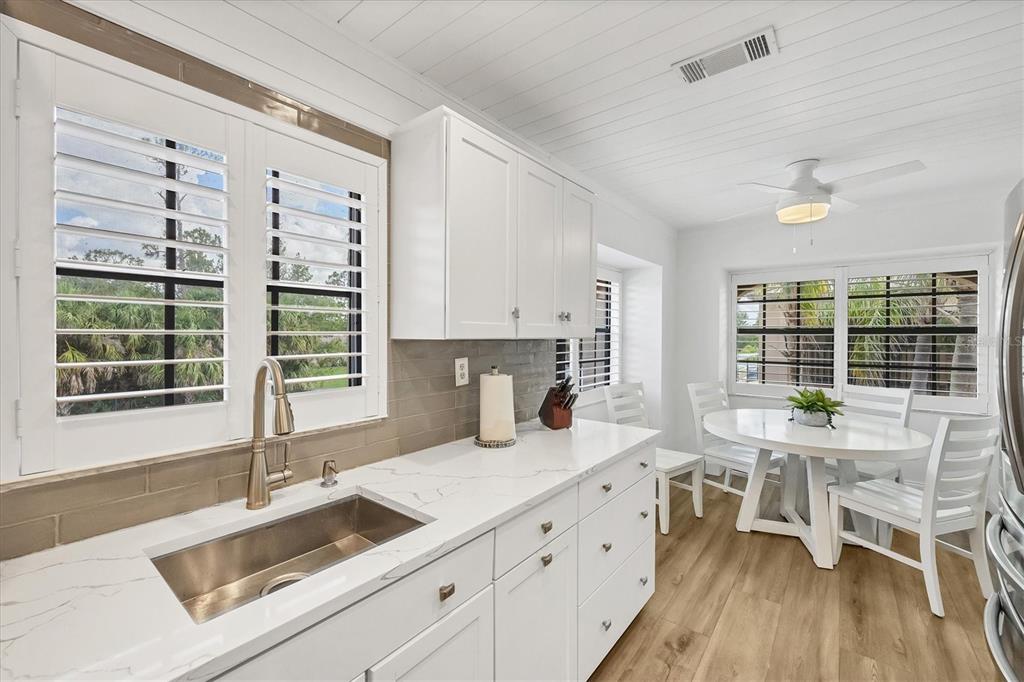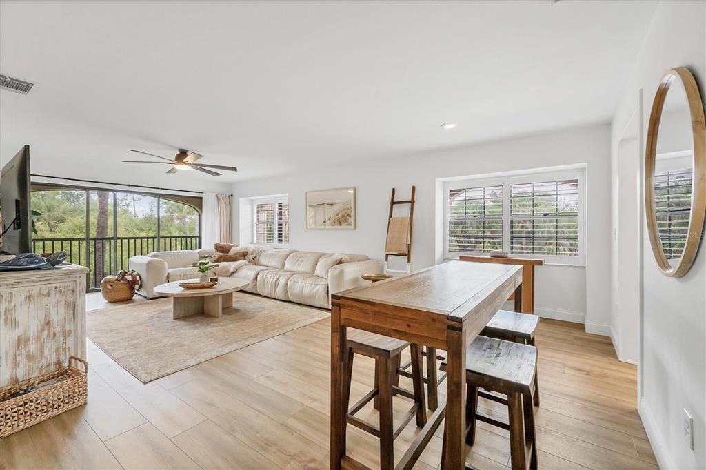 Over $13,000 price adjustment on this unit that looks and shows like a model and located in boating community of rolls landing. docks already contracted to be restored with access to river, harbor intracoastal and gulf!! step in to this 2nd floor end unit condo and you immediately feel like your home. lvp flooring throughout for ease of cleaning, spacious living/dining room combo layout with sliders to balcony overlooking the treetops. the galley style kitchen is a delight with eat in area as well as ship lap ceiling and walls, crown molding, closet pantry, plenty of cottage style white cabinetry, quartz counters and stainless appliances. primary suite has neutral, tranquil colors with walk in closet with organizers, en suite bath with dual sinks atop a beautiful furniture style vanity and step in tiled shower. down the short hall you'll find the guest bedroom right past the 2nd bath. adjacent to dining area is your closet laundry area with washer/dryer included. what a bonus to have plantation shutters on almost every window in the unit except slider and bedroom 2. this is the only two story building in rolls landing so no worries about more fees for structural integrity inspections now required for over 2 stories. docks are available on a first come, first serve basis for a low annual fee and are contracted to be restored this summer, storage lot for trailer also has low annual fee per seller. you can also take advantage of the private boat ramp. for your enjoyment there is a community pool, tennis courts and more. your monthly fee includes water, sewer and basic cable charges. rolls landing is located with easy access in either direction to us 41 in one direction and i75 in the other which allows you access to shopping, dining, medical and so much more. this unit shows like the epitome of living in paradise with that sunny, cottage feel. do yourself a favor and call to see today, you'll be glad you did!!23465 HARBORVIEW #1031, PUNTA GORDA, FL 33980