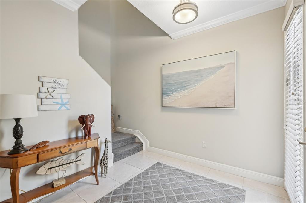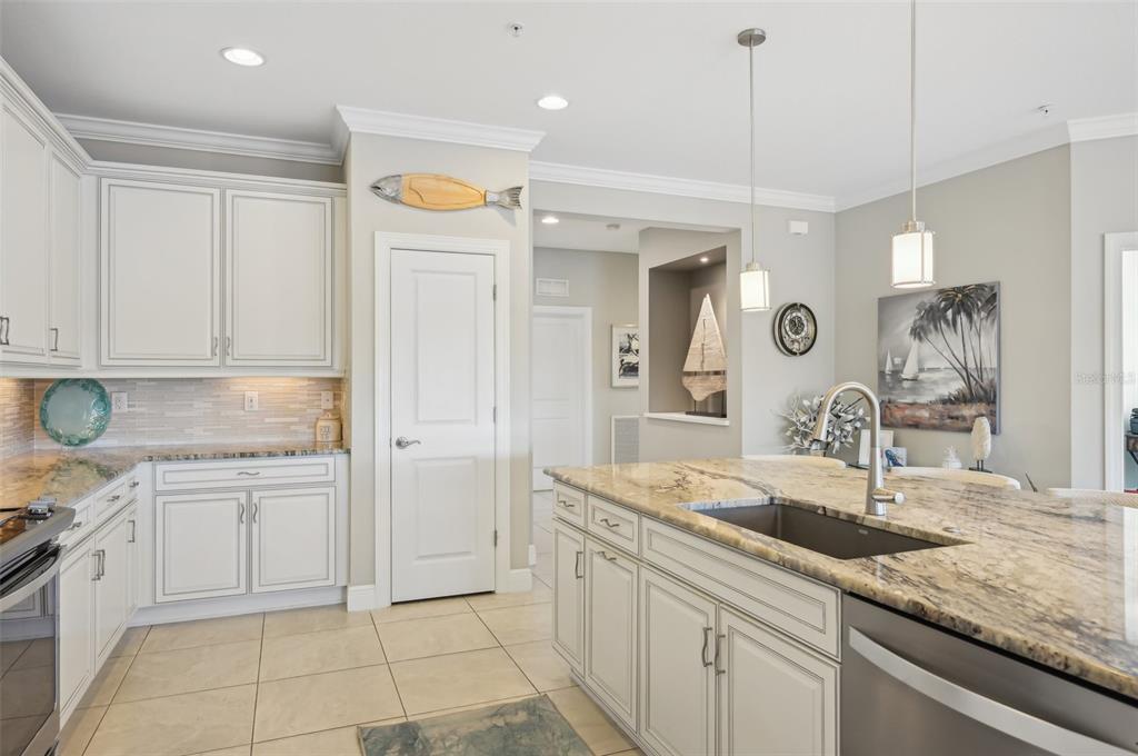 Walk-In Closet(s) Eating Space In Kitchen High Ceilings Stone Counters Thermostat Open Floorplan Solid Wood CabinetsCrown Molding L Dining Tray Ceiling(s)Exterior Features:
