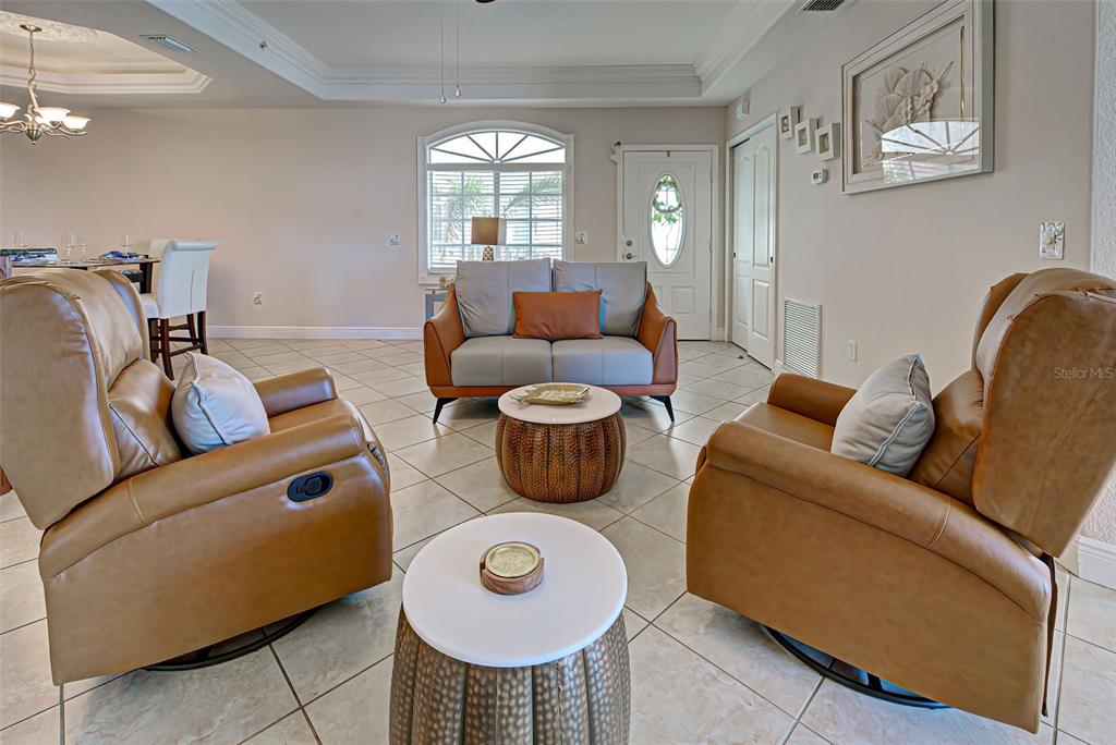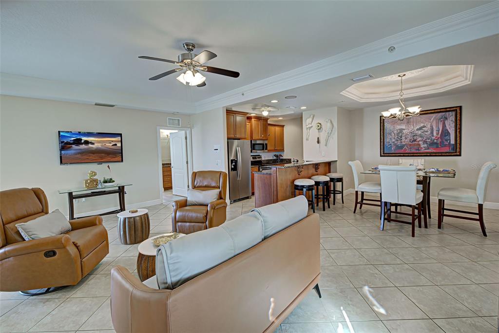 Elevator Walk-In Closet(s)Ceiling Fan(s) High Ceilings Living Room/Dining Room Combo Stone Counters Window TreatmentsCrown Molding Kitchen/Family Room Combo Coffered Ceiling(s)Exterior Features: