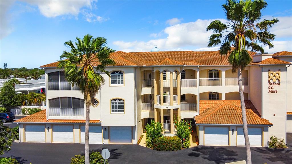 5 minutes to the beach! one of the best kept secrets on venice island! brezza del mare was built in 2006 as a luxury pet friendly condominium with a peaceful courtyard and soothing fountain which is beautiful focal point of this stunning condominium. walk, bike, or take your golf cart to sharkey's restaurant for sunset! the only dog beach in sarasota county is also just 5 min away. ! this cozy unit boasts a high ceiling, a split plan with 2 bedrooms and 2 bathrooms, a surround sound music system, coffered ceilings, granite countertops, and ceramic and vinyl flooring. brand new whirlpool fridge, h20 heater 2021, ac 2017, and new front screen/storm door. tuck your car, beach gear, and bikes away in your private garage with "safe shelving" for all your storage needs. enjoy the spacious lanai with your morning coffee and watch the planes fly in. the unit is on the second floor, close to the stairs, and has an elevator for peace of mind. enjoy a sunny day with friends at the pool and grill some food at the community gas grill. downtown historic venice island is just minutes from your condo, where boutique shops, restaurants, bars, and events are always happening! farmers market on saturdays, music and splash park at centennial park, and so much more! take a look today!235 BASE E #201, VENICE, FL 34285