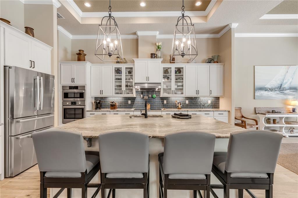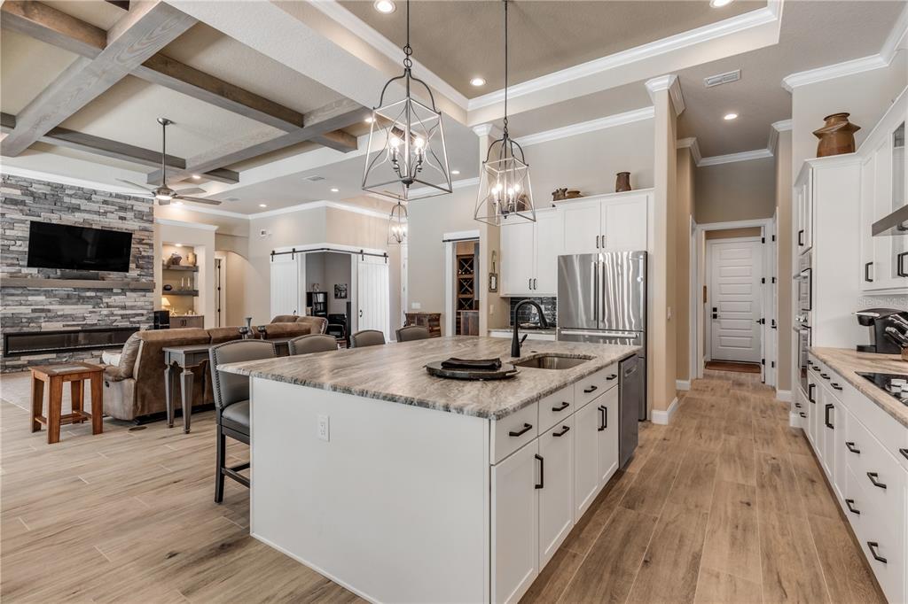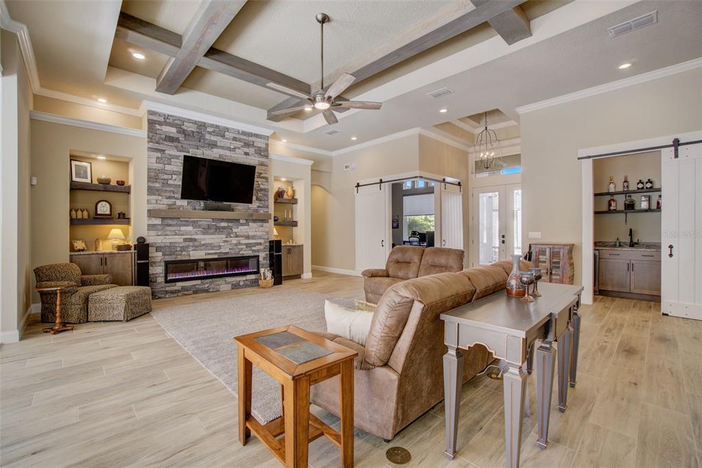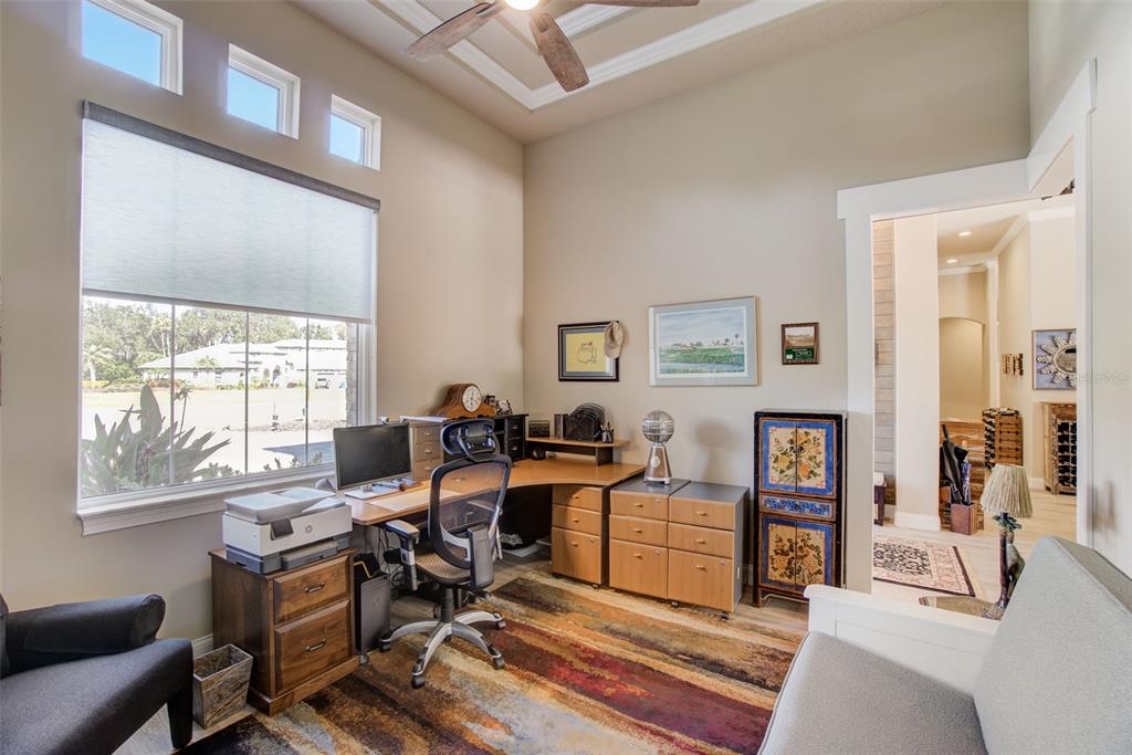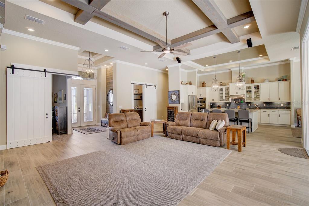 Split BedroomWet BarBuilt-in Features Walk-In Closet(s)Ceiling Fan(s) Eating Space In Kitchen High Ceilings Thermostat Open Floorplan Window Treatments Solid Surface Counters Solid Wood CabinetsCrown Molding Primary Bedroom Main Floor Kitchen/Family Room Combo Coffered Ceiling(s) Smart HomeCathedral Ceiling(s)Exterior Features:
