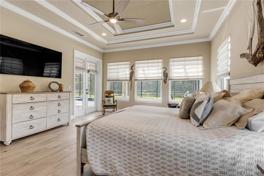 This must-see, custom-built olsen home in liberty village is a rare opportunity for luxurious lakefront living. nestled on 3.3 meticulously landscaped acres across three premium lots, this state-of-the-art smart home at 2354 legacy lane offers breathtaking water and conservation views. step into an open floor plan featuring 12' coffered ceilings, floor-to-ceiling pocket sliders, and a stunning lanai with a heated pool/spa, all overlooking your private lake with a tranquil fountain. the gourmet kitchen is a chef’s dream with luxury appliances, soft-close wood cabinetry, a walk-in pantry, and elegant leathered granite countertops. the owner’s suite is a retreat of its own with double walk-in closets, dual vanities, a soaking tub, and a walk-in shower with dual shower heads. guests will love their private bedroom with an ensuite bath, while a private office with custom barn doors offers flexibility as a fourth bedroom. additional highlights include a wet bar with a wine cooler, a large laundry room, 3-car garage, low-e impact-resistant windows, full-home generator, and an elegant paver driveway. minutes from i-95, new smyrna beach, flagler avenue, and historic canal street, this home blends high-end living with every imaginable luxury. don’t miss your chance to make this stunning estate your private oasis!2354 LEGACY, NEW SMYRNA BEACH, FL 32168