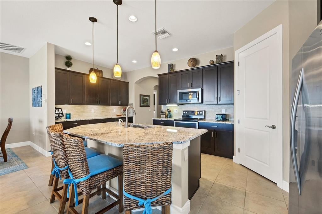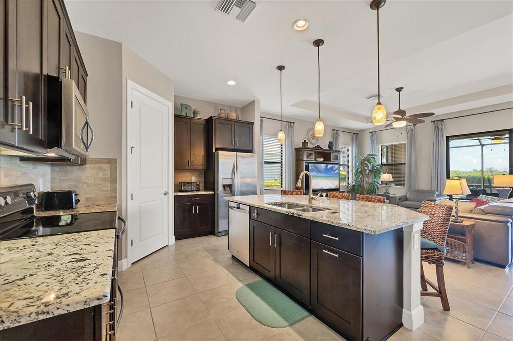 Immerse yourself in luxury in the golf resort community of sarasota national in beautiful venice, florida. world-class golf membership for two is included with this home, plus so many other amazing home features and lifestyle amenities! the home is being offered turn-key furnished so bring your clubs, bathing suit and toothbrush and move right in! the nearly 2200 sf home with barrel tile roof is stunning, situated along the water with conservation land behind that will never be built on. the wci-built islamorada model offers great space & privacy to you and your guests with 2 ensuite bedrooms, plus an additional bedroom, den/office with french door entry, and full bath! the kitchen is a dream with granite counters, wood cabinets, a walk-in pantry, huge island, and an additional built-in buffet/coffee bar. the main area, with vaulted tray ceilings flow seamlessly into the spacious outdoor patio which is plumbed and ready for your outdoor kitchen if you wish. the primary suite aims to please with a 14’ x 12’ bathroom and a 21’ long walk-in closet! community amenities include the 13,167 sf palm club with adjacent restaurant, bar and lounge, library, coffee room, meeting room and multi-purpose room. there is a 7,356 sf fitness center with state-of-the-art equipment, workout and locker rooms, fitness classes, and personal trainers. in addition, residents also enjoy tennis, pickleball, bocce ball, a dog park, zero-entry resort pool with lap lanes, and an 8000 sf event lawn, expansive patios, coffee lounge, library, day spa and more! do a little shopping in historic downtown venice or popular wellen park, pop over to the beach, or watch the altanta braves play a spring training game next door, then enjoy the sunset and a bite & beverage at the pool side tiki bar. sarasota national is proud to be an audubon international certified signature sanctuary, surrounded by native wetlands and preserves, providing you a dramatic and beautiful place to call home. come experience the florida lifestyle at sarasota national.23781 WAVERLY, VENICE, FL 34293