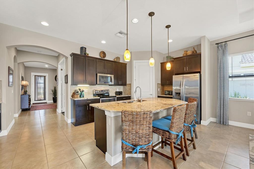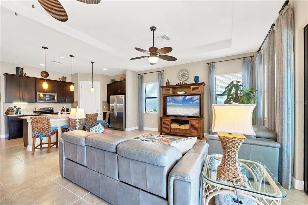 Split Bedroom Walk-In Closet(s)Ceiling Fan(s) High Ceilings Stone Counters Thermostat Open Floorplan Window Treatments Kitchen/Family Room Combo Coffered Ceiling(s)Exterior Features: