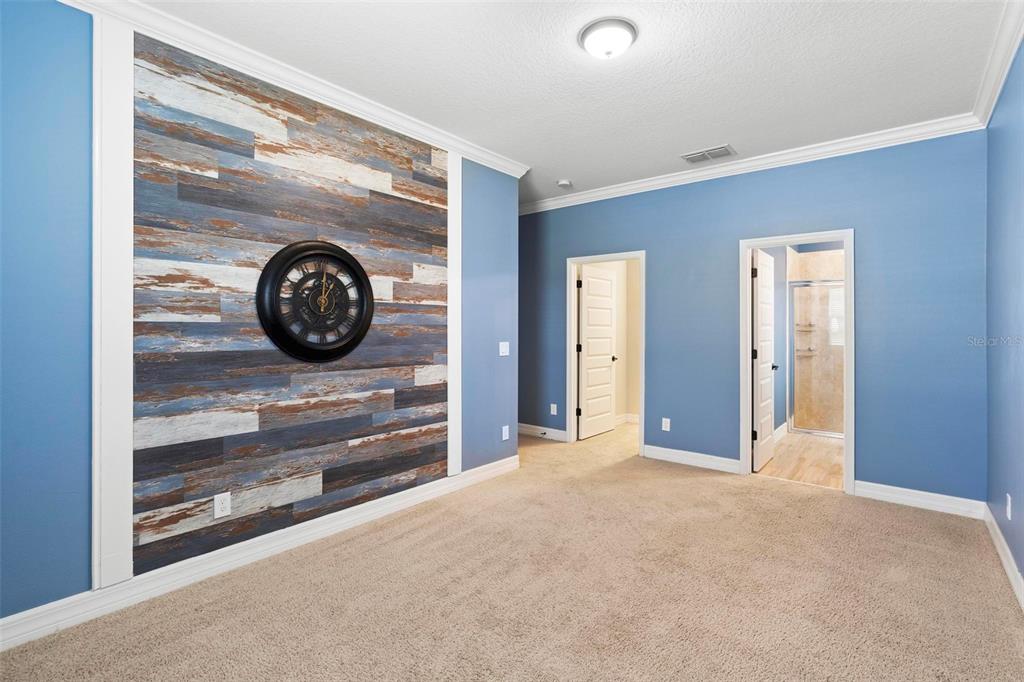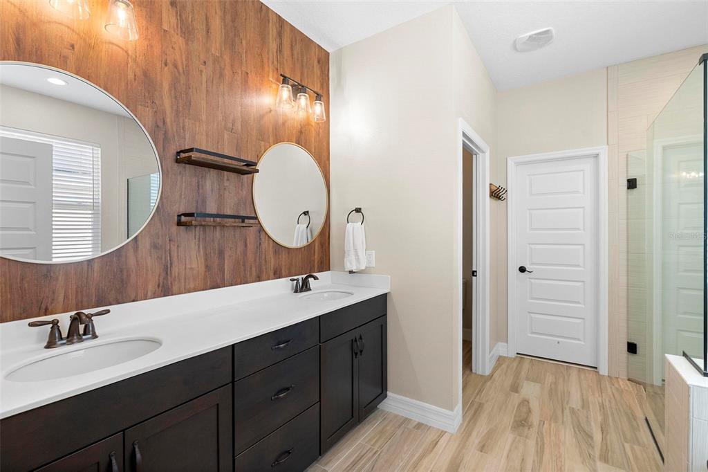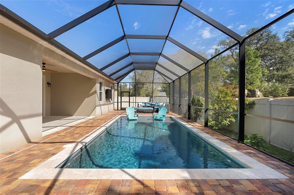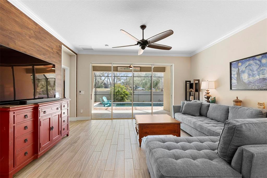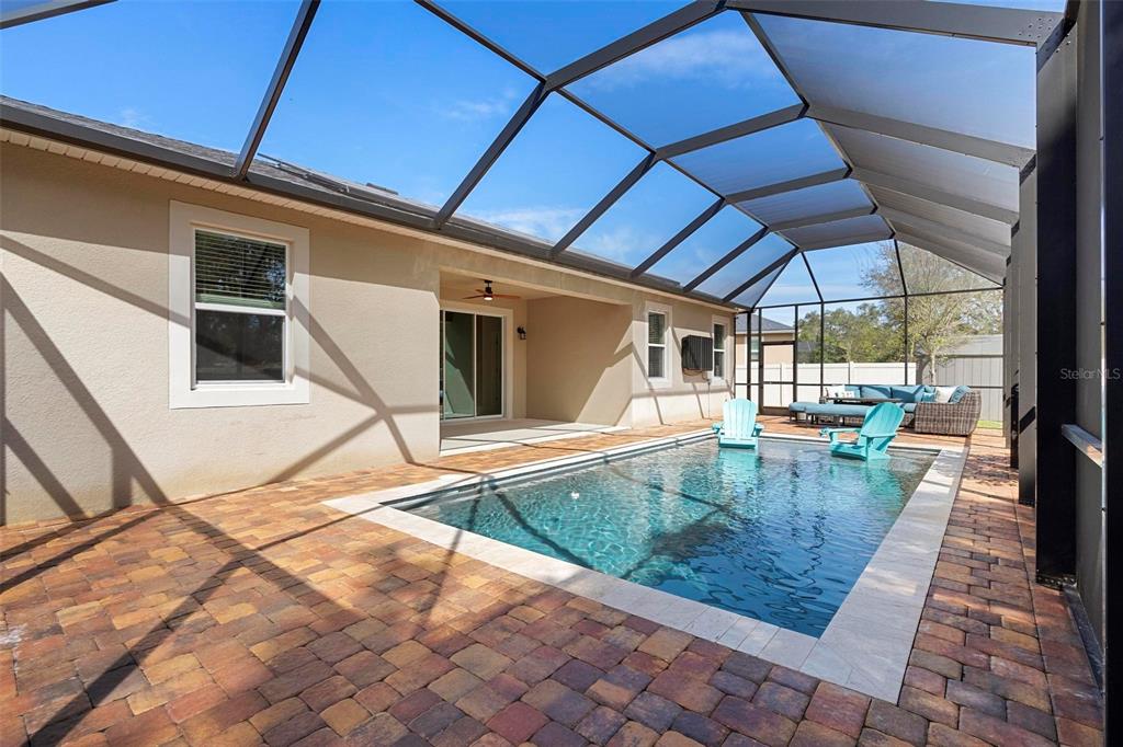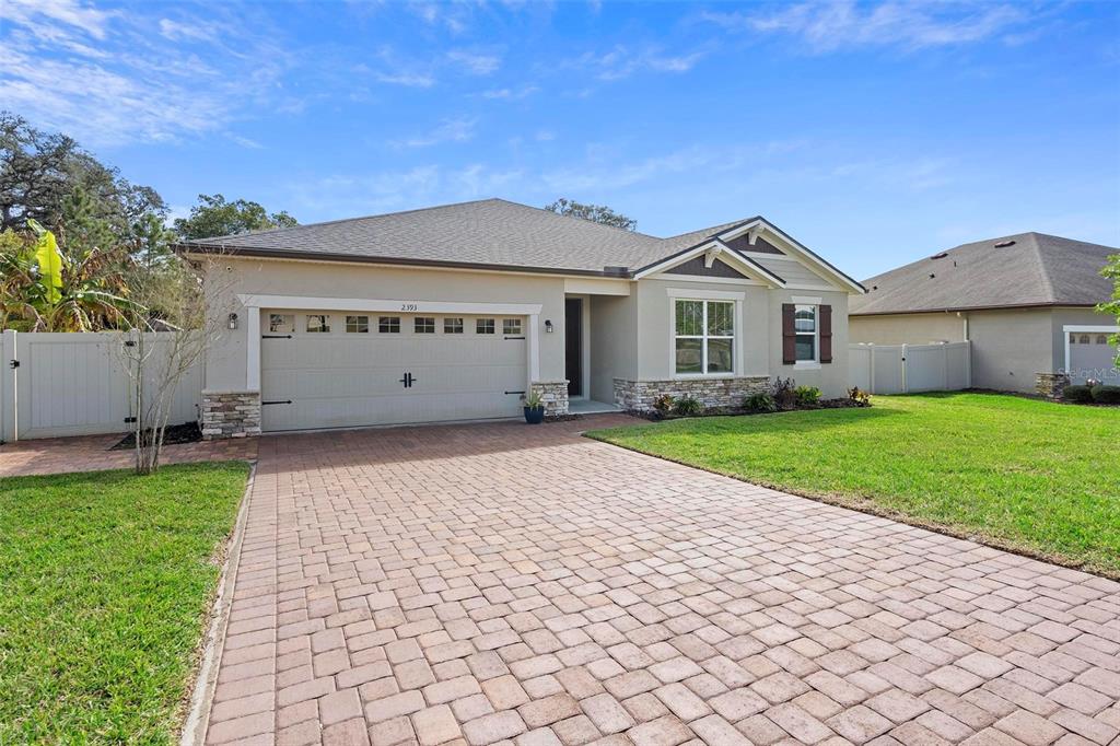 Screened heated saltwater pool with sundeck / solar & high-end water filtration system -seller paying off / gourmet kitchen / 2 primary suites / 3 way split floor plan / fenced in back yard and more!! welcome to your future home in bentley green! this stunning property has numerous upgrades designed to enhance your life with luxury and convenience. the gourmet kitchen features 42" upper wood cabinets, walk in butler pantry, double oven, range hood, cooktop, and a built-in countertop 4-in-1 multi-oven microwave. additionally, a large island with a sink, pendant lighting, coffee station, and under-cabinet lighting. the laundry room is inside just off the garage with cabinets for storage and a utility sink with drawer. wood plank tiles run throughout the home, complemented by crown molding and 5 1/4" baseboards. this home also offers two primary bedrooms. the main bedroom features a large walk-in closet, and a private ensuite with a walk-in shower, garden tub, double sinks, and a private toilet area. the secondary primary bedroom, located at the front of the home, is ideal for guests or multigenerational families, and it also includes a private ensuite and a walk-in closet. there are two additional spacious bedrooms that share a guest bathroom. additional upgrades include custom blinds, custom wall treatments in the front bedroom, entryway, bedroom 4, master bathroom, and a bar with cabinets and custom counter in the dining area. the heated 12 x 24 pool is screened with micro screen, has a 6 ft sun shelf, and comes with a lifetime warranty on the pebble tech coating and large paver deck. the seller has sealed the pool deck and driveway and added a high-end water treatment system with storage for salt. the fenced backyard includes a shed and pavers for grilling or a fire pit. the low hoa provides access to the community playground, pool, and clubhouse. ideally located close to i-4, stetson university, historic downtown deland, and walking distance to publix, shopping and several dining options. schedule your showing today!!2393 OXMOOR, DELAND, FL 32724