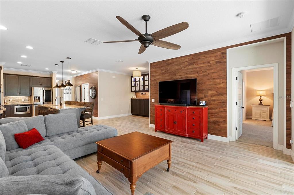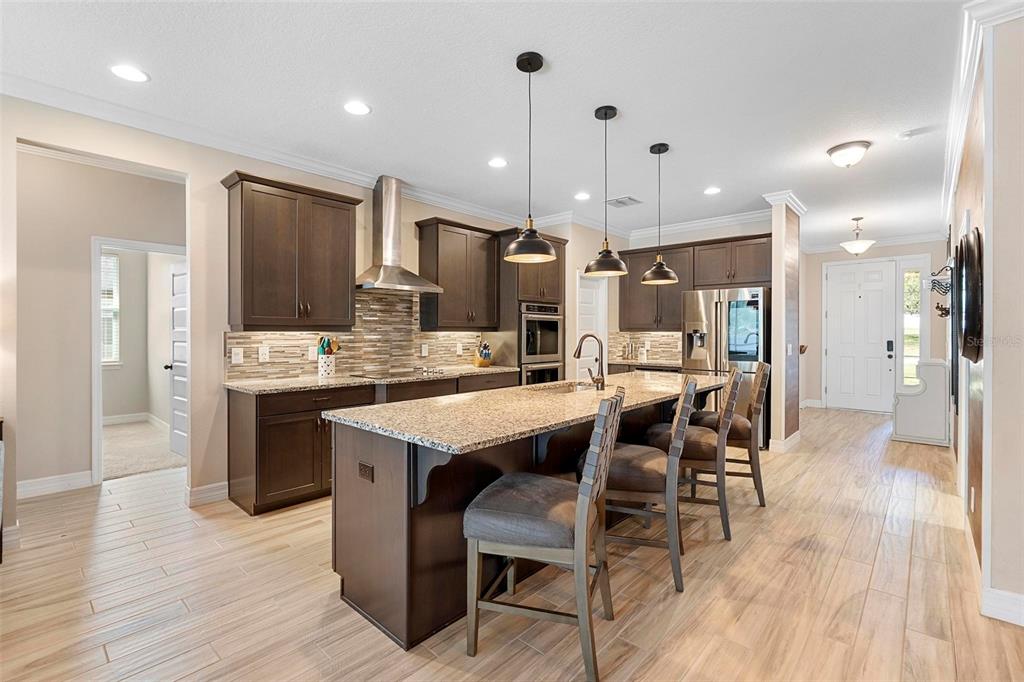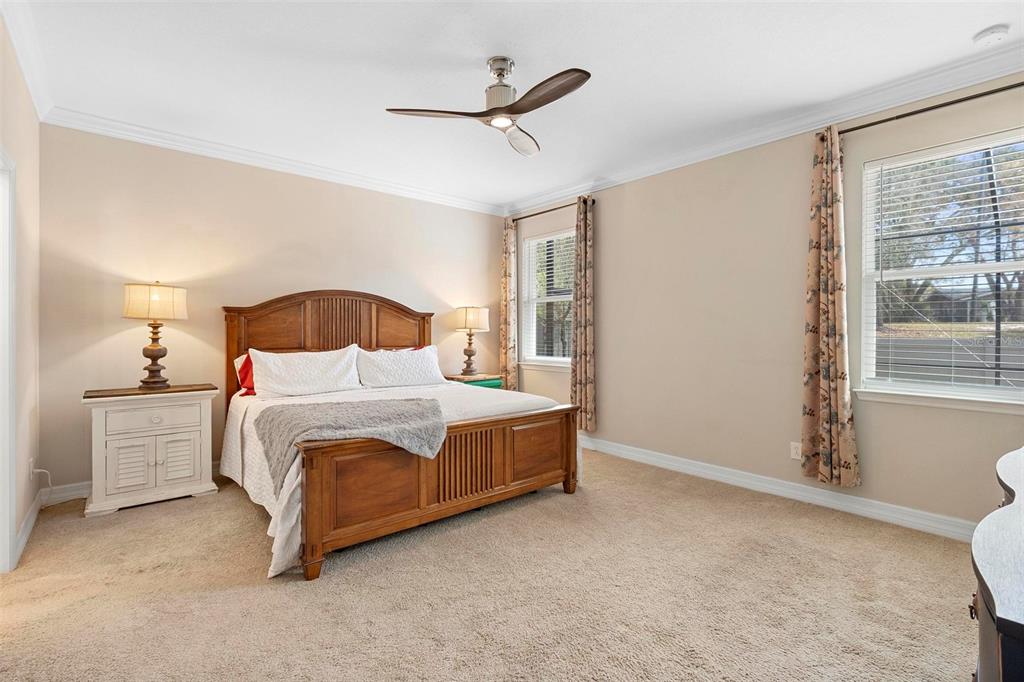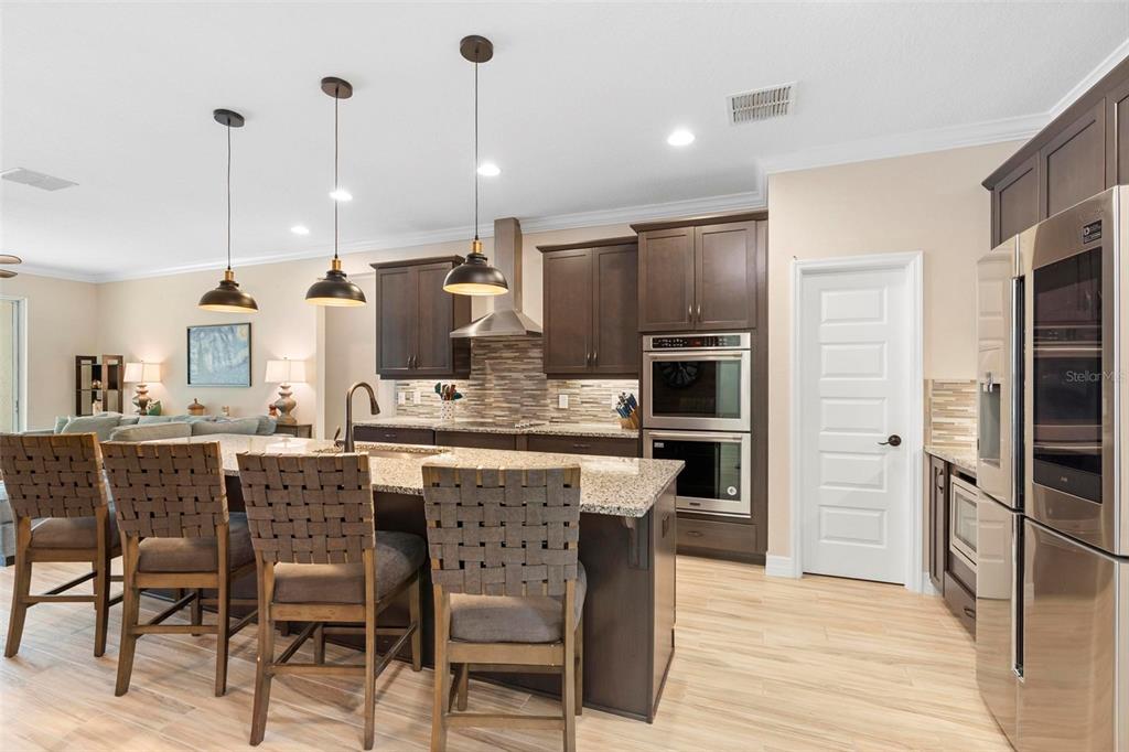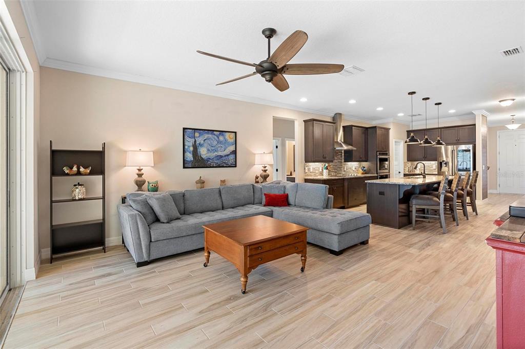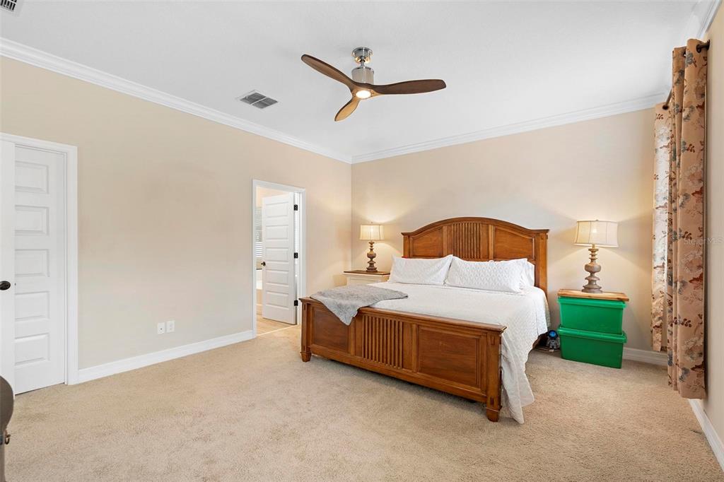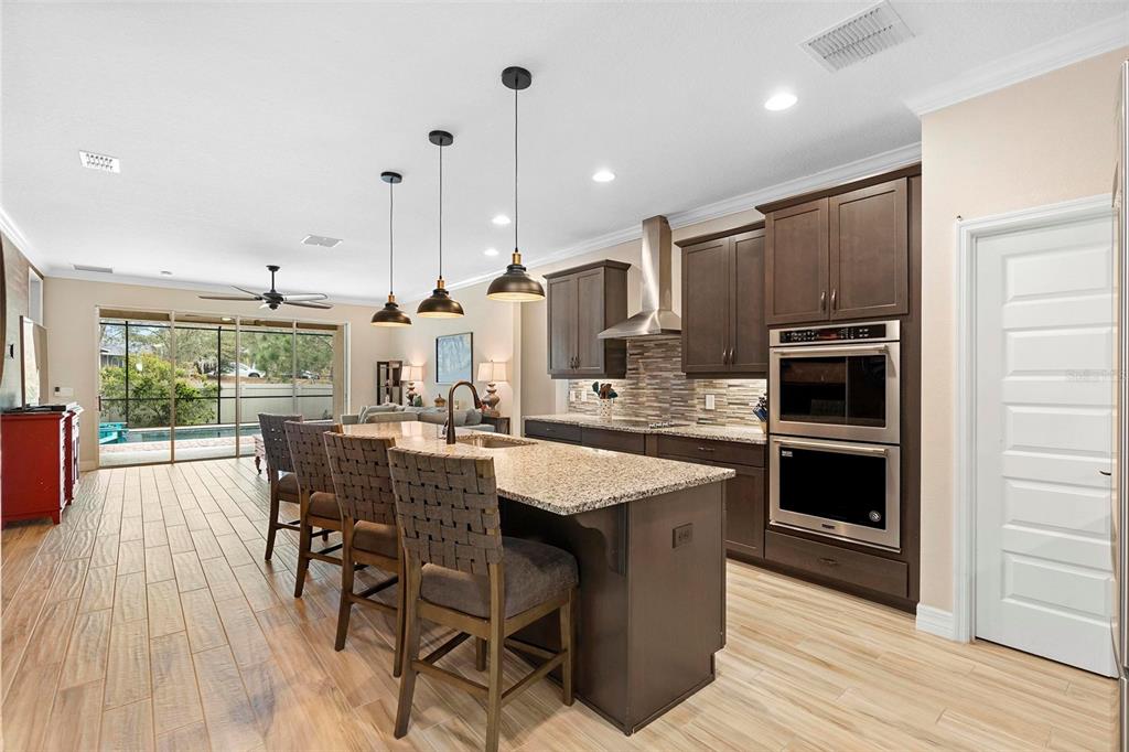 Screened heated saltwater pool with sundeck / solar & high-end water filtration system -seller paying off / gourmet kitchen / 2 primary suites / 3 way split floor plan / fenced in back yard and more!! welcome to your future home in bentley green! this stunning property has numerous upgrades designed to enhance your life with luxury and convenience. the gourmet kitchen features 42" upper wood cabinets, walk in butler pantry, double oven, range hood, cooktop, and a built-in countertop 4-in-1 multi-oven microwave. additionally, a large island with a sink, pendant lighting, coffee station, and under-cabinet lighting. the laundry room is inside just off the garage with cabinets for storage and a utility sink with drawer. wood plank tiles run throughout the home, complemented by crown molding and 5 1/4" baseboards. this home also offers two primary bedrooms. the main bedroom features a large walk-in closet, and a private ensuite with a walk-in shower, garden tub, double sinks, and a private toilet area. the secondary primary bedroom, located at the front of the home, is ideal for guests or multigenerational families, and it also includes a private ensuite and a walk-in closet. there are two additional spacious bedrooms that share a guest bathroom. additional upgrades include custom blinds, custom wall treatments in the front bedroom, entryway, bedroom 4, master bathroom, and a bar with cabinets and custom counter in the dining area. the heated 12 x 24 pool is screened with micro screen, has a 6 ft sun shelf, and comes with a lifetime warranty on the pebble tech coating and large paver deck. the seller has sealed the pool deck and driveway and added a high-end water treatment system with storage for salt. the fenced backyard includes a shed and pavers for grilling or a fire pit. the low hoa provides access to the community playground, pool, and clubhouse. ideally located close to i-4, stetson university, historic downtown deland, and walking distance to publix, shopping and several dining options. schedule your showing today!!2393 OXMOOR, DELAND, FL 32724