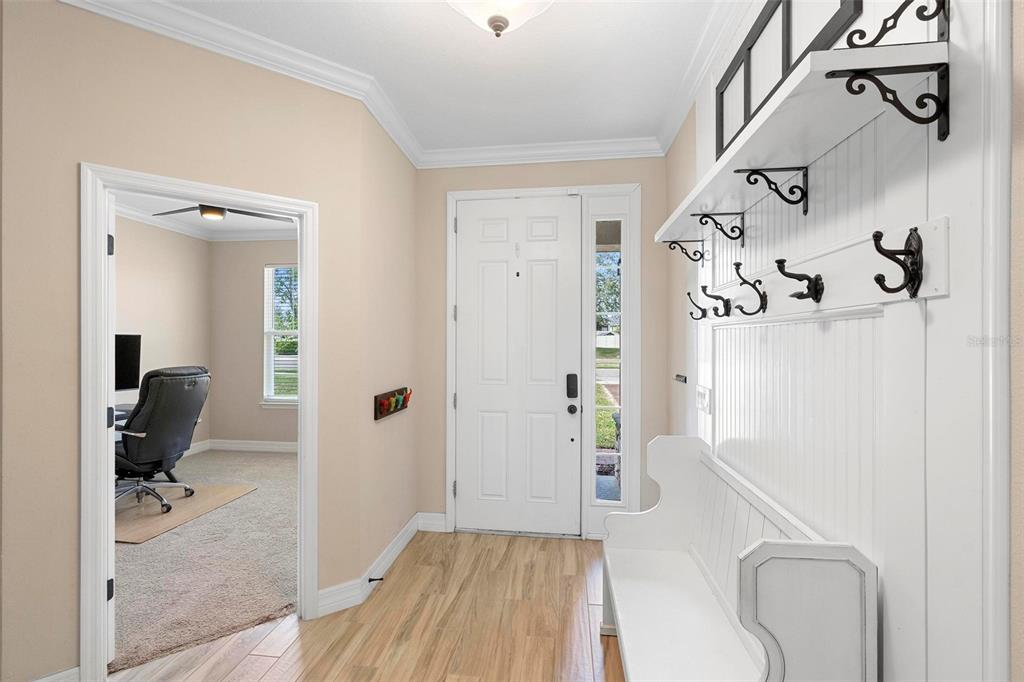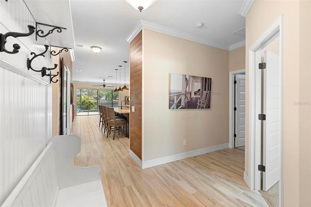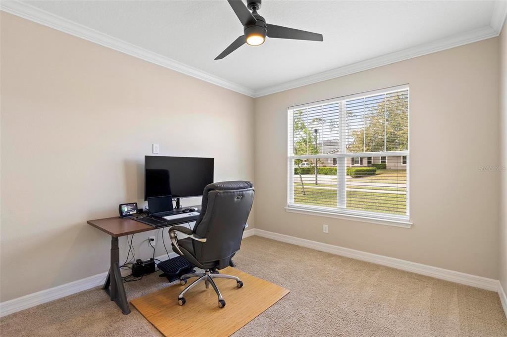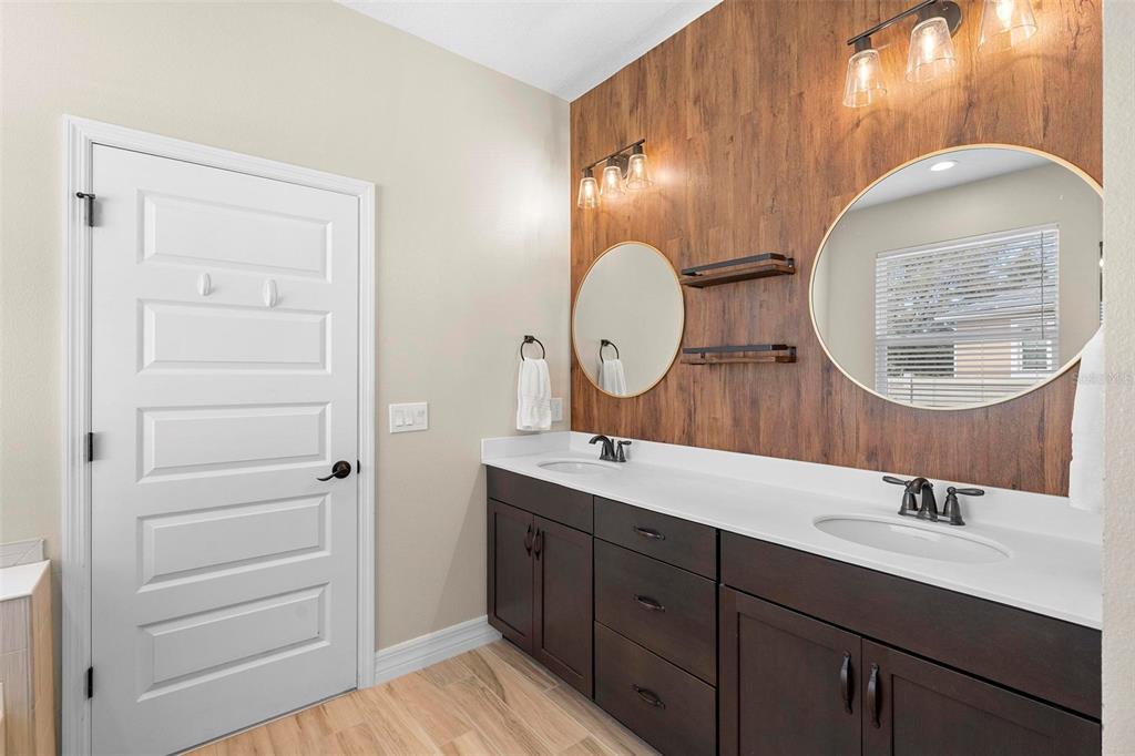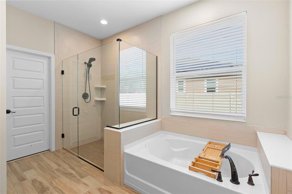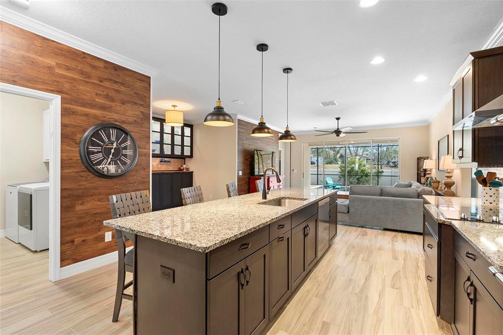 Screened heated saltwater pool with sundeck / solar & high-end water filtration system -seller paying off / gourmet kitchen / 2 primary suites / 3 way split floor plan / fenced in back yard and more!! welcome to your future home in bentley green! this stunning property has numerous upgrades designed to enhance your life with luxury and convenience. the gourmet kitchen features 42" upper wood cabinets, walk in butler pantry, double oven, range hood, cooktop, and a built-in countertop 4-in-1 multi-oven microwave. additionally, a large island with a sink, pendant lighting, coffee station, and under-cabinet lighting. the laundry room is inside just off the garage with cabinets for storage and a utility sink with drawer. wood plank tiles run throughout the home, complemented by crown molding and 5 1/4" baseboards. this home also offers two primary bedrooms. the main bedroom features a large walk-in closet, and a private ensuite with a walk-in shower, garden tub, double sinks, and a private toilet area. the secondary primary bedroom, located at the front of the home, is ideal for guests or multigenerational families, and it also includes a private ensuite and a walk-in closet. there are two additional spacious bedrooms that share a guest bathroom. additional upgrades include custom blinds, custom wall treatments in the front bedroom, entryway, bedroom 4, master bathroom, and a bar with cabinets and custom counter in the dining area. the heated 12 x 24 pool is screened with micro screen, has a 6 ft sun shelf, and comes with a lifetime warranty on the pebble tech coating and large paver deck. the seller has sealed the pool deck and driveway and added a high-end water treatment system with storage for salt. the fenced backyard includes a shed and pavers for grilling or a fire pit. the low hoa provides access to the community playground, pool, and clubhouse. ideally located close to i-4, stetson university, historic downtown deland, and walking distance to publix, shopping and several dining options. schedule your showing today!!2393 OXMOOR, DELAND, FL 32724