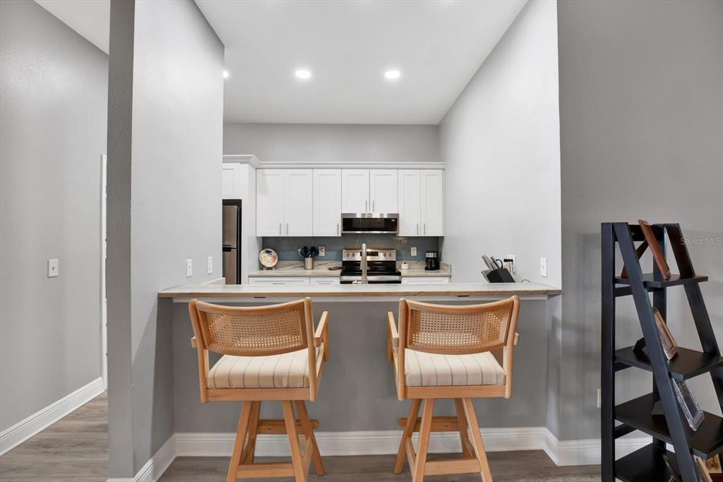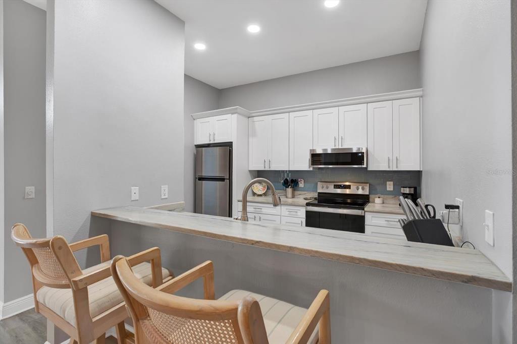 Seller motivated bring all offers! welcome to this beautifully updated chelsea model ideally located in the sought-after kings point community of sun city center. open floor plan with freshly painted split 2 bedrooms and 2 baths and luxury vinyl flooring throughout. the kitchen offers upgraded cabinets, stainless appliances and stunning quartzite counters and beautiful glass backsplash. the breakfast bar allows easy access to the lovely dining room which is open to the spacious great room. the enclosed florida room is perfect space for an office or to relax with friends and family. the laundry room/pantry with new washer and newer dryer leads to the 1 car garage. community pool is located just steps away! kings point is 55+ gated golf cart community with state-of-the-art recreation facilities, multiple indoor/outdoor heated pools, fitness centers, computer labs, arts & crafts, tennis, pickle ball and tons of activities for your pleasure! seller will leave dining room and great room furniture.2403 NANTUCKET GRN, SUN CITY CENTER, FL 33573