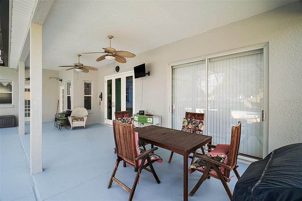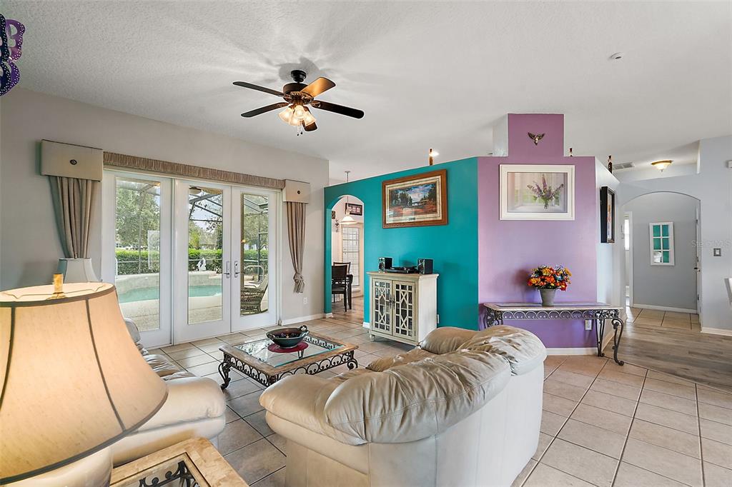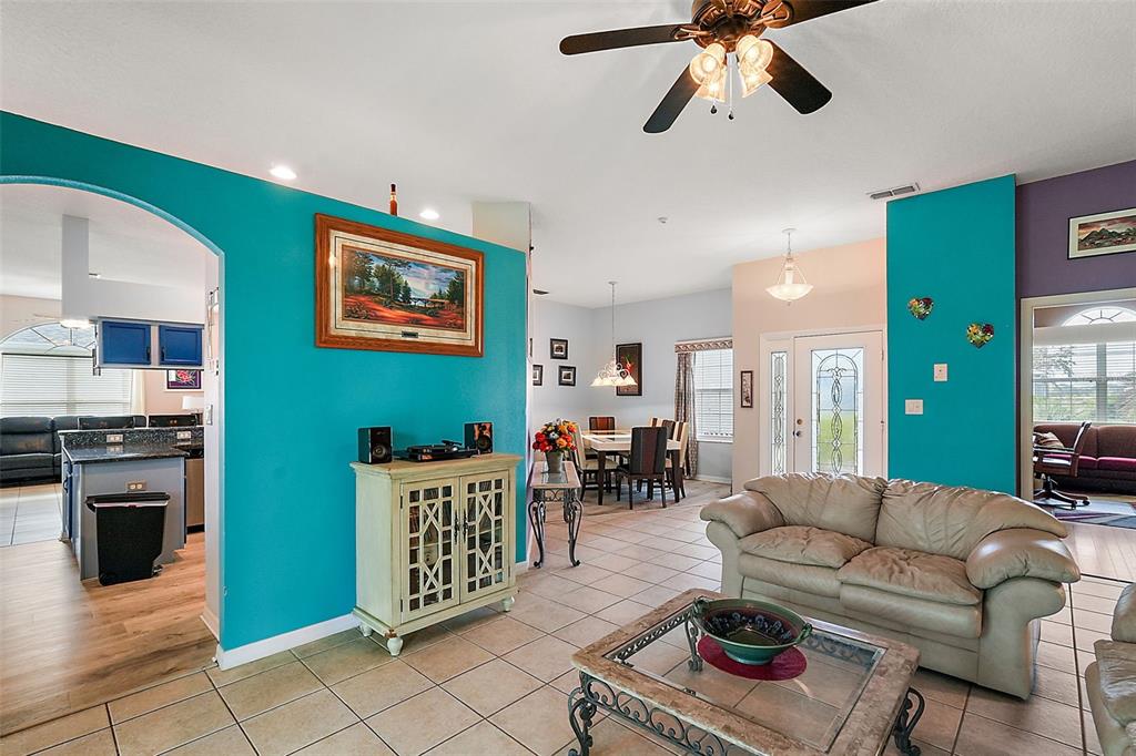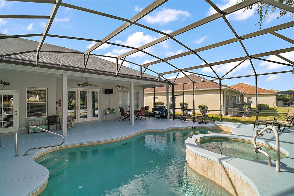 Up to date pool home with golf course views. roof 2022, ac 2023, solar 2022, spa heater 2024, pool pump 1 year old, all new birdcage screens, tankless propane water heater. the whole outside will be painted soon. kitchen with granite counter pullout cabinet shelves, tile backsplash, propane range, stainless appliances and luxury tile. living room with french doors to the pool area. formal dining room. family room off the kitchen. great split floor plan with two primary suites. each with upgraded bathrooms. inside laundry room. this model comes with a half bathroom for guest and a true 3rd bedroom. the outside grill is hooked up for propane. no need to refill portable tanks. nothing for new homeowners to do. plantation at leesburg offers everything for you to enjoy. two golf courses, 3 swimming pools, 3 club houses, walking trails, pickle ball, tennis, softball, his/hers sauna, 2 workout rooms and much more. take a ride in your golf cart for an afternoon lunch or dinner and entertainment with our restaurant located inside the plantation neighborhood. low hoa.24124 ROBINWOOD, LEESBURG, FL 34748