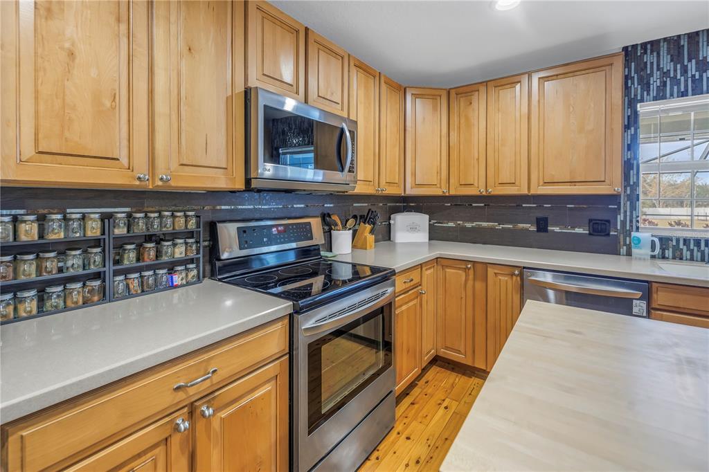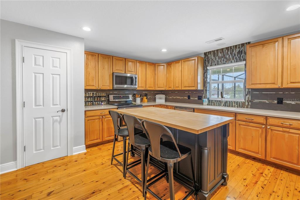Modern farmhouse living - non flood zone! this meticulously cared for 3 bedroom, 2 bath, oversized 2 car garage (27x22), pool/spa home features a sprawling 1+ acre (zoned agricultural) vinyl fenced lot, no utility bills, solar panel system, 24 gauge metal roof, rv/boat parking, no hoa/cdd and more! entering the home, you're greeted by beautiful pine wood flooring throughout the open floor plan. the spacious living room boasts a large tray ceiling while the kitchen offers solid wood cabinetry, solid surface counter tops and a custom amish hand carved sit-at island under butcher block. off the living room you have 2 spacious bedrooms and a hall way bath while the 3rd oversized primary bedroom will fit a full king size furniture set perfectly with room leftover! the en suite showcases a walk in closet, a jetted soaking tub and large walk in shower. if that's not enough, welcome to paradise as you walk through the perfect office space to enjoy the newer installed, in ground, resort style saltwater pool and spill over spa entertainment center! enjoy entertaining days or nights as you relax in this screened in oasis! gorgeous travertine leads you to your salt water, pebble tech finished, heated pool and spa. the pool area has plenty of space for lounging or bbqing overlooking the huge backyard with a separate solar system set up and a large double gate for rv/boat/trailer with access and electric hook up. all furniture is optional. more features to this energy efficient home includes the following: irrigation system on well, sprayed foam closed cell icynene under roof, 24 gauge metal roof with all new fasteners and vent boots (dec 2024), fresh paint (2025) new salt cell for pool (aug 2024), there is a well/septic tank onsite (future addition of public sewer and water) and the dual pane windows. a new walkable, high school and charter school to be built in future. 35 minutes to tia, brandon, bradenton and st.pete and tampa. this home has to be seen in person to appreciate country living inside city limits! call today to schedule your appointment! buyer to verify all information.2413 CRESTVIEW, WIMAUMA, FL 33598