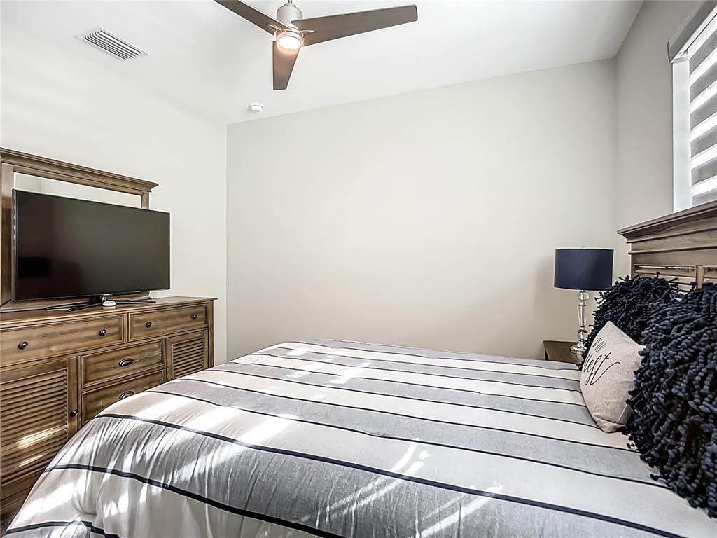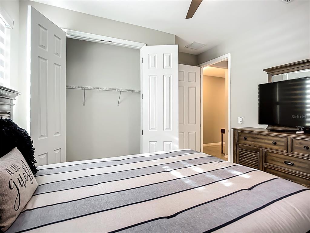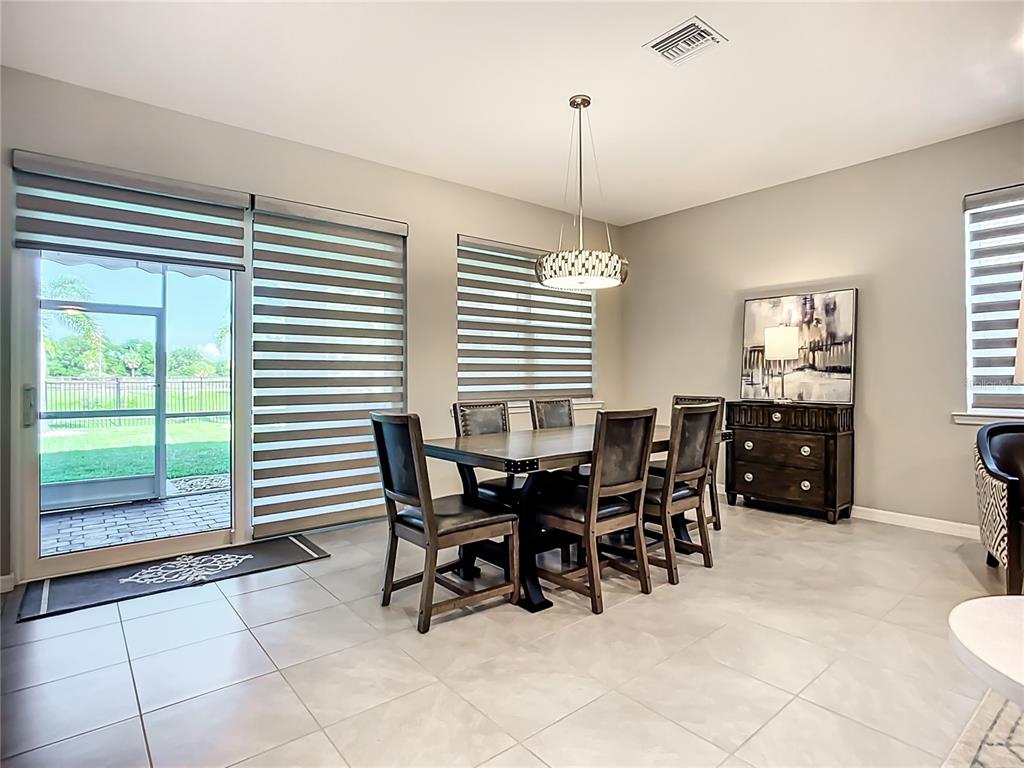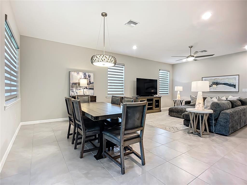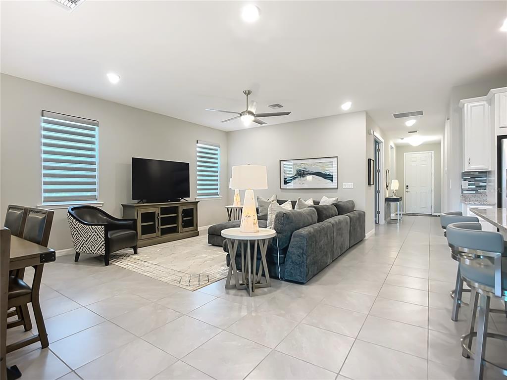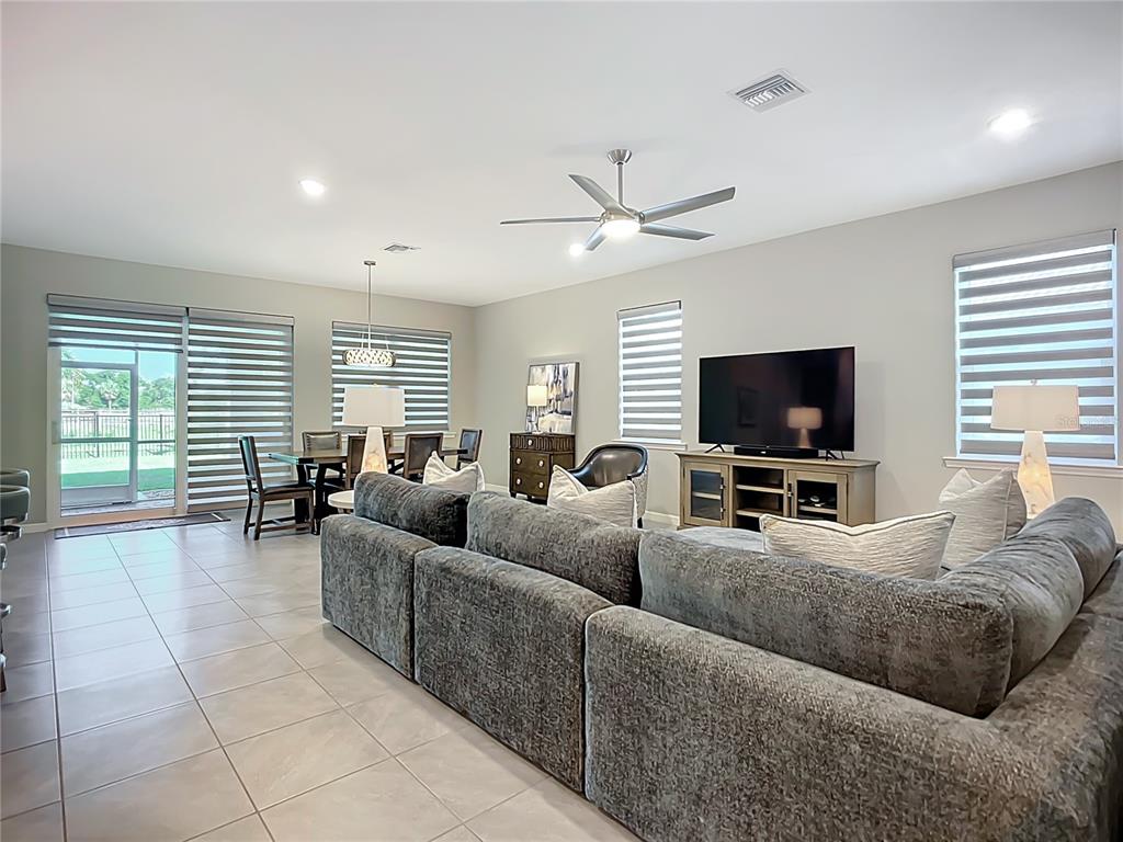 Split Bedroom Walk-In Closet(s)Ceiling Fan(s) High Ceilings Living Room/Dining Room Combo Thermostat Open Floorplan Window Treatments Solid Surface Counters Solid Wood Cabinets Kitchen/Family Room Combo Central VacuumAttic VentilatorExterior Features: