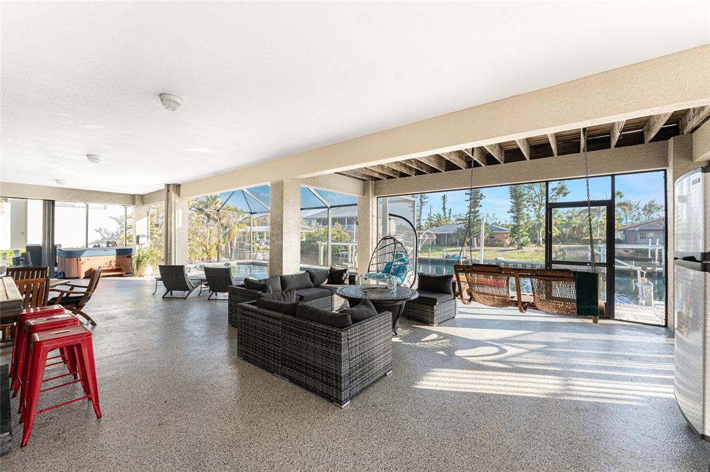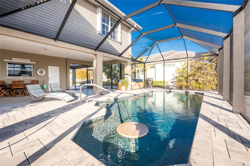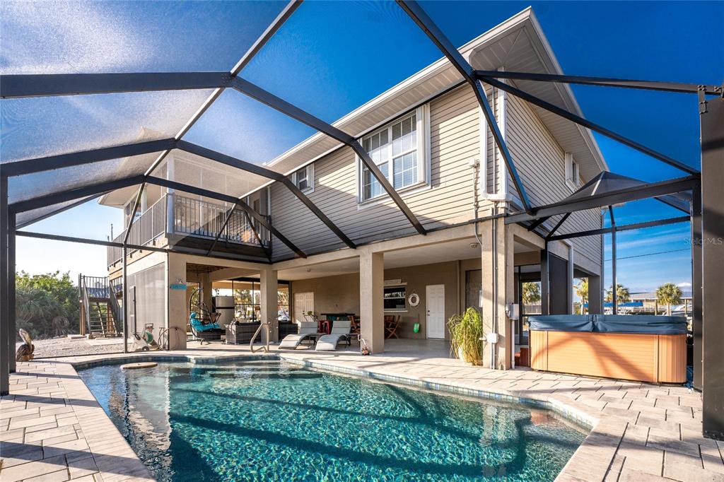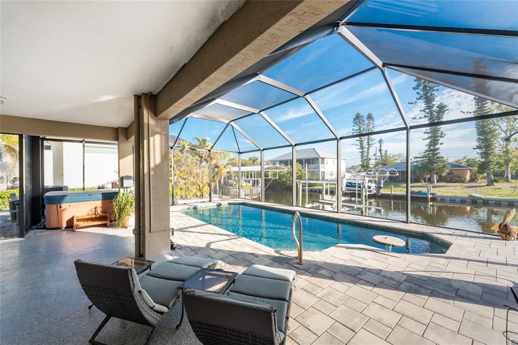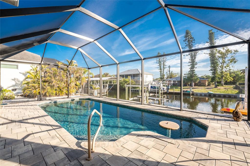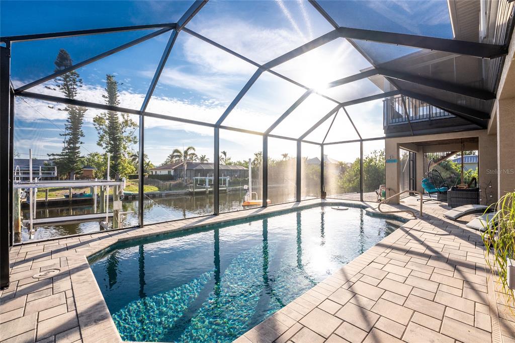 *key west-style sailboat waterfront retreat with pool– live large 4,080 total sq ft! embrace this island lifestyle -3 bedroom, 2-bath waterfront pool home with direct~you are less than a 5 minute, deep-water access to charlotte harbor and the gulf of mexico!! with 100 feet of saltwater canal frontage and a 12,000 lb boat lift!! there’s plenty of room for all your water toys—catch dinner off your dock or adventure cruising the neighboring waterways *you are in one of the best sport fishing spots in the usa *island-hopping to boca grande, or stop over to a nearby dockside restaurant **the expansive screened-in pool area is designed for fun and relaxation, the pool features a table and seating benches, unwind in the hot tub watching yet another gorgeous sunset after a day on the water. need space for extra gear? this home offers a dedicated workshop room, ample storage, and plenty of space for land and water toys. surrounded by nature at its finest, this home is nestled in a golf cart-friendly community near pristine beaches, world-class fishing, top-tier golf courses, charlotte harbor, historic downtown punta gorda for shopping, waterfront dining, entertainment... plus, with hurricane protection already in place, you can enjoy peace of mind year-round. live large, make this key west-style coastal escape your own!24343 PIRATE HBR, PUNTA GORDA, FL 33955