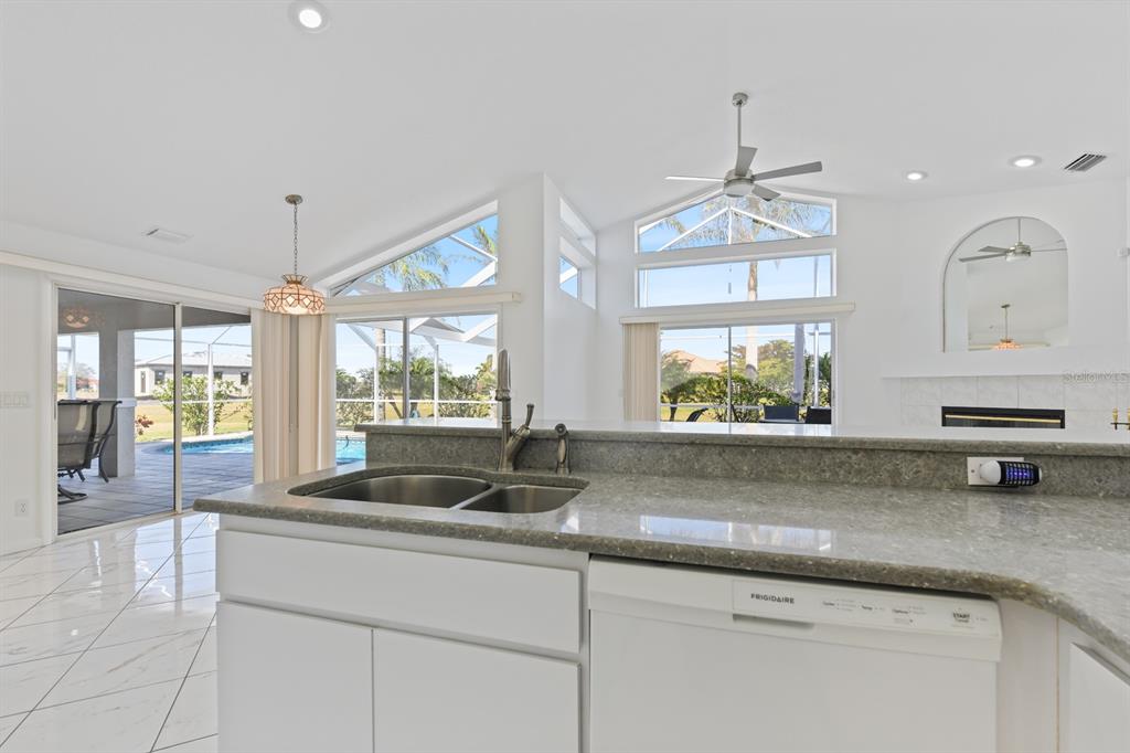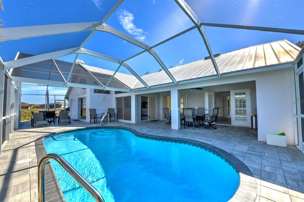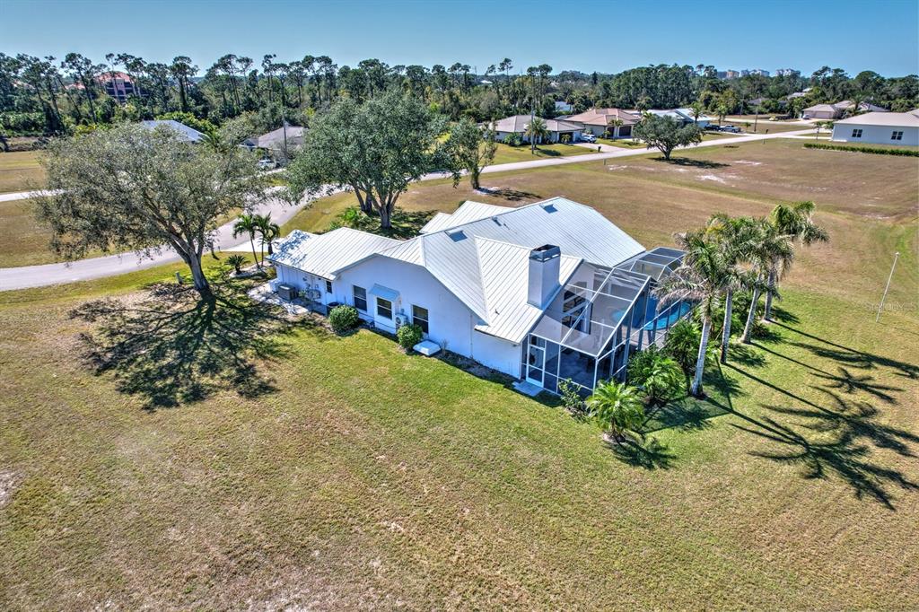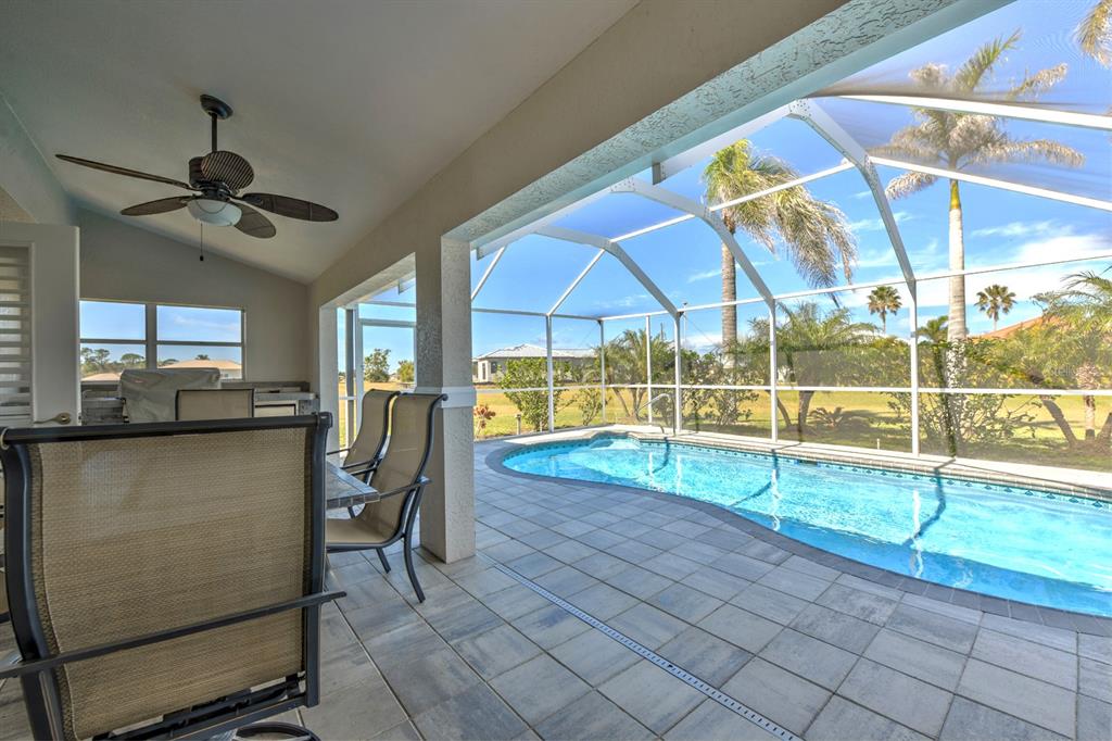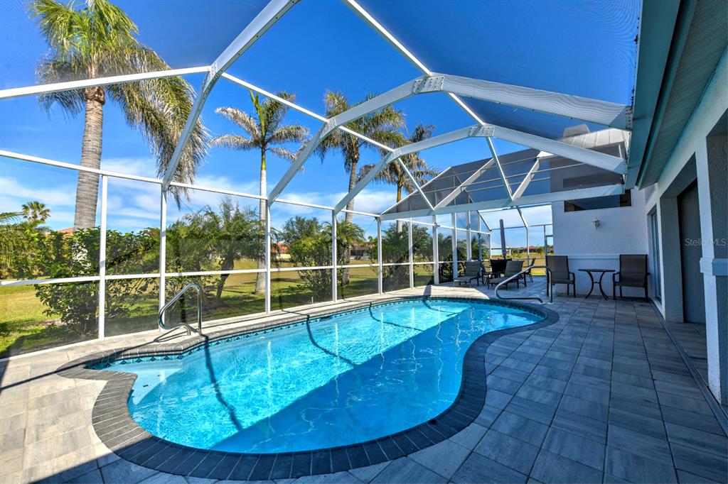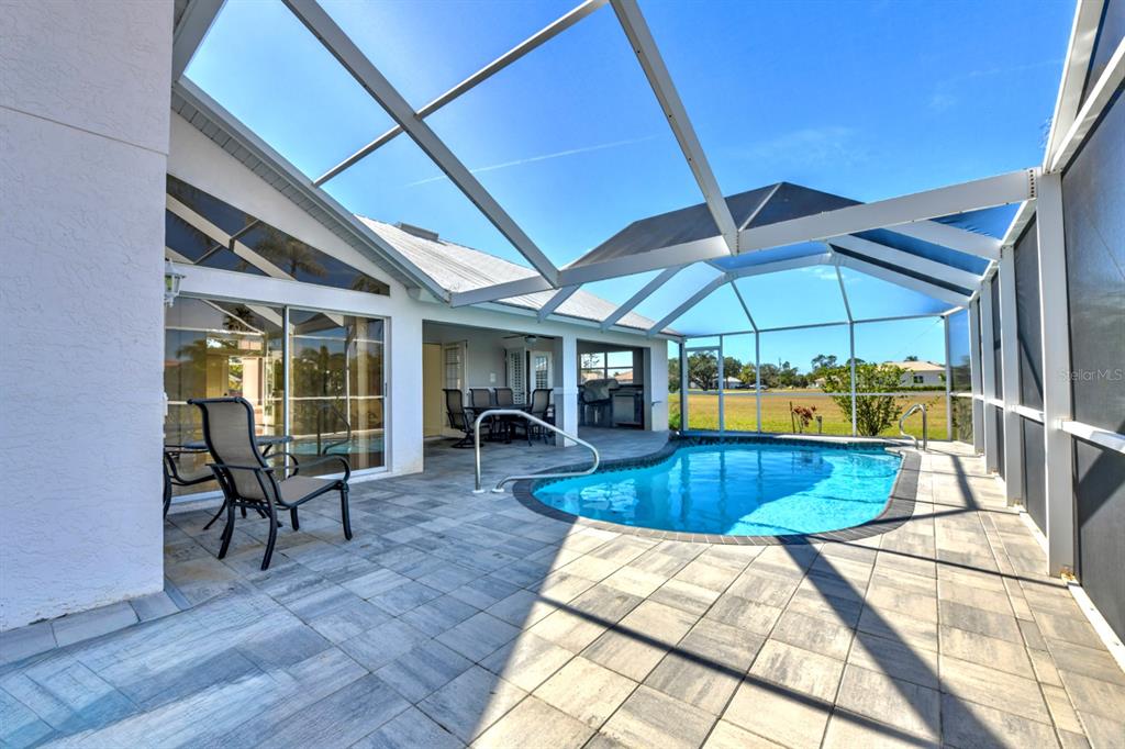 A quiet cul-de-sac in burnt store lakes takes you to a home beautifully framed by tall shade trees and mature landscaping. this 3 bed/3 bath custom home with side load garage, metal roof and sparkling pool is perfect for a family! with no other homes on either side, it offers tremendous privacy and long views. inside a breezy open floorplan has a full living room with dining area and a family room in back that features large windows, several sliding doors and a wonderful wood burning fireplace for those cooler days in winter. the combination of high ceilings, abundance of windows, transoms and sliding doors bring in loads of natural light throughout the day. a split floorplan provides separation and privacy between you and guests. in between the living and family rooms is a spacious central kitchen with new quartz counters and a wide breakfast bar for casual dining and newer black stainless appliances. a separate central island provides more prep space and storage so the chef can create everything from simple to exquisite meals. for less-formal dining, a charming dinette area is surrounded by sliding doors for easy access to the pool area with bright views of the tropical landscape beyond. step out to the spacious pool from multiple sliding doors and enjoy an expansive under cover lanai complete with summer kitchen at one end. new pavers surround a newly resurfaced pool and the large deck area is perfect for relaxing in the sun. the 3rd full bath is actually a separate pool bath accessible from only from outside for complete privacy. other attractive features include a spacious owner’s suite with large ensuite bath updated with wide quartz vanity and two sinks, soaking tub, walk-in shower and large closet. the guest suite on the other side features an updated bath with new vanity, toilet and shower doors. newer diamond-set marble flooring is found throughout the home with carpet in the owner’s bedroom. both the owner’s suite and one guest bedroom include separate mini-split ac units to keep you cooler in the summer months! even the garage has a mini-split ac system. make your own updates and take advantage of a beautiful home located very close to burnt store marina for access to world-class boating, golf, and dining. and you can make this a full acre lot by purchasing the vacant parcel to the right that’s also available. a whole home generator will give you peace of mind during storm season. city water and sewer, a private well for irrigation, non-flood zone and the wonderful community of burnt store lakes make this a special opportunity!24344 PENHOLLOW, PUNTA GORDA, FL 33955