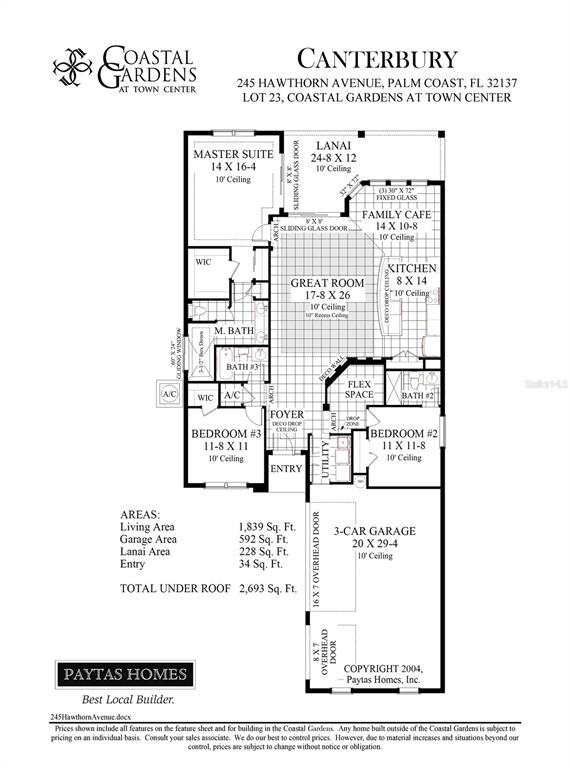 Under construction. this new paytas home is located in coastal gardens at town center, a paytas community in palm coast. this home includes a 3-car courtyard entry garage, upgraded quartz countertops in kitchen, premium tile backsplash, 39" tall upper cabinets with 24" tall glass front wood wellborn cabinets to ceiling with painted finish, double-trash pullout, suntunnels, recess ceiling in great room, premium laminate floors throughout main living areas, bathrooms have quartz countertops, painted finish on wellborn wood cabinets, upgraded tile and so much more! this beautiful open floor plan that makes entertaining a pleasure. this lot has a view of the lake and the peaceful conservation area! come see all that is included in our homes and the quality of the build that make paytas homes a proud local builder! *broker has business affiliation with seller.245 HAWTHORN, PALM COAST, FL 32164