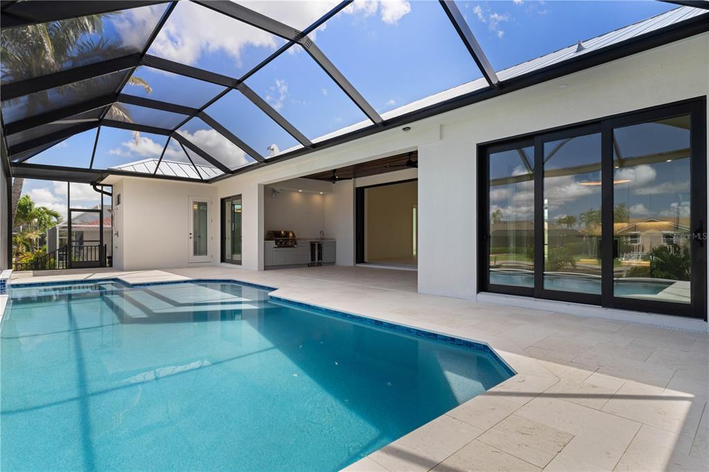 Brand new waterfront masterpiece by towles construction w/sail access + 90ft of seawall + designer interior: this just-completed luxury residence by tim towles offers 3 beds/3 baths plus a den & delivers an exceptional blend of bold architecture and refined finishes. set on a wide lot with 90 feet of sailboat-access canal frontage and a 70’ x 10’ dock by keesling construction with water/electric hook-ups dockside, the property offers quick access north or south to the harbor in minutes. western exposure guarantees stunning sunset views from the lanai and pool every evening. inside, an expansive great room with dramatic ceiling details and large-format porcelain tile flows seamlessly into a showstopping kitchen—featuring a massive center island w/gorgeous taj mahal quartzite counters, european-inspired cabinetry, a pot filler, wine cooler, under-cabinet lighting, and premium signature series appliances including an induction range, 48" french door refrigerator & double wall oven w/convection & steam. the main living/entertainment area is quite large due to the bigger than average lot size. kitchen. laundry & baths all offer quartz counters & custom, floating vanities. the owner’s suite is a private sanctuary offering canal views, lanai access, and two, fully built-out walk-in closets. the spa-worthy bath boasts a freestanding soaking tub, frameless glass shower with dual rainfall heads, designer tile extending to the ceiling, and sleek floating vanity w/two sinks. laundry room connects to the master suite & has tons of extra storage cabinets, stacked full-size washer & dryer plus hidden pull out drying racks. split bedroom layout boasts two generously sized guest suites that are tucked away for privacy, each featuring upscale finishes and dedicated bath access. the outdoor living space is anchored by an in-ground, heated pool with sun shelf and spillover spa, surrounded by a travertine tile deck and complemented by a full summer kitchen with grill, beverage center, and sink—all under a richly stained tongue-and-groove wood ceiling. pool features a pentair intellicenter indoor, digital, control panel. lanai extends to the full width of the home w/a picture-frame pool cage ensuring an unobstructed canal view. an outdoor shower on the lanai allows you to rinse off after a long day on the boat. other amenities include an attached, three-car garage w/painted floor, complete hurricane protection w/impact-rated windows & doors, brick paver circular driveway, backyard brick paver patio & walkway to dock plus professionally-designed landscaping that surrounds the home. sophistication, clean architectural lines, and modern elegance converge in this truly exceptional new construction home. be the first to call it home and start living your florida dream today. by appointment only.245 LIDO, PUNTA GORDA, FL 33950