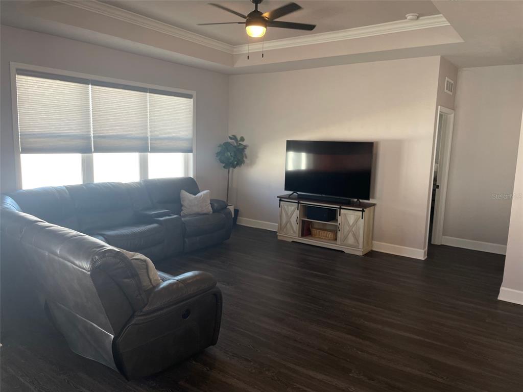 Split Bedroom Walk-In Closet(s)Ceiling Fan(s) High Ceilings Thermostat Open Floorplan Window Treatments Solid Surface Counters Primary Bedroom Main Floor Kitchen/Family Room ComboExterior Features: