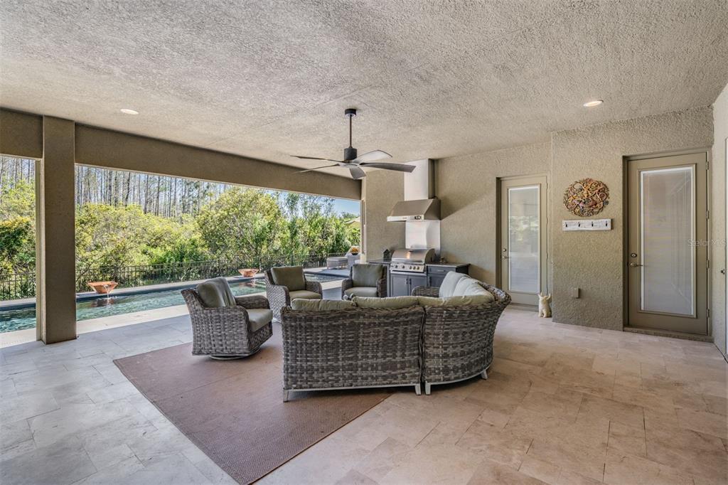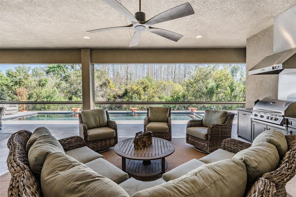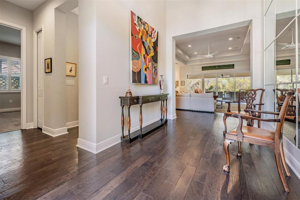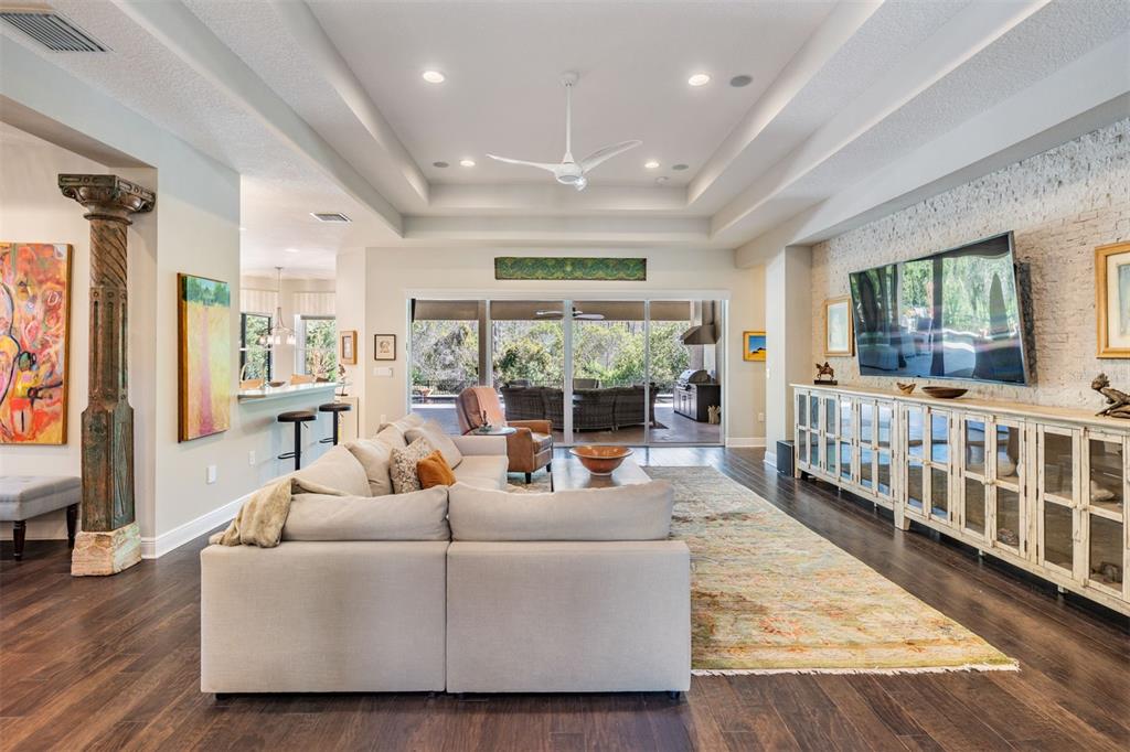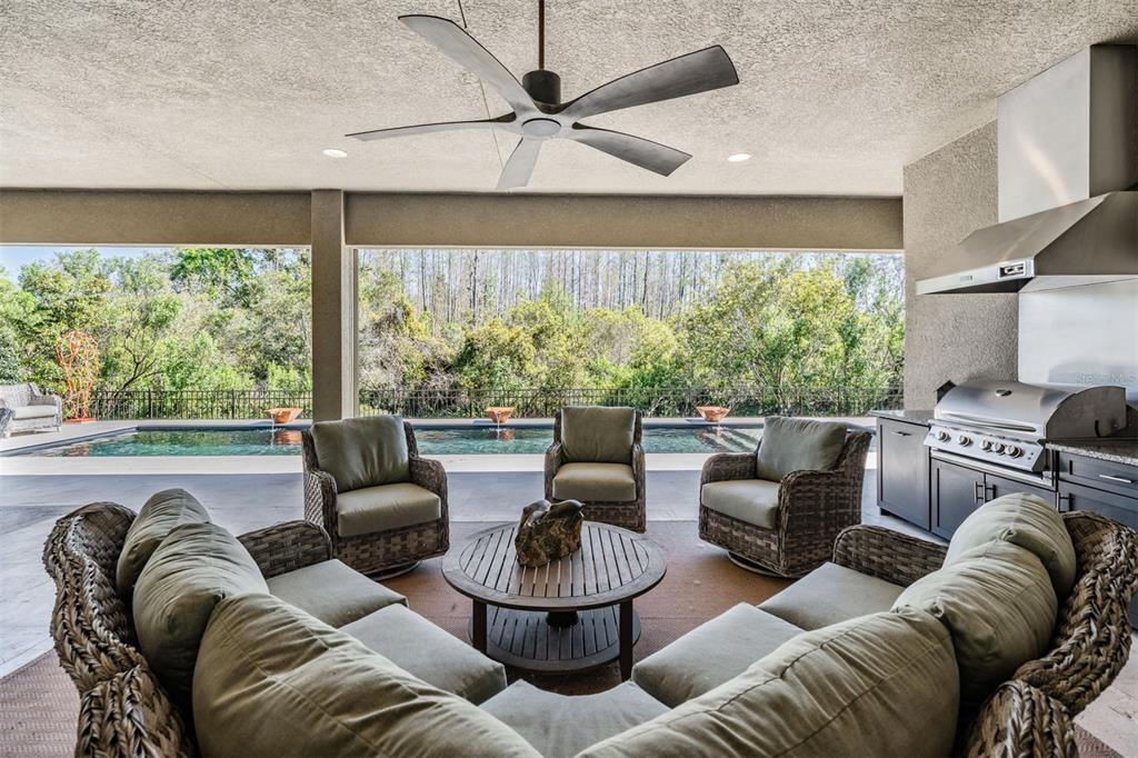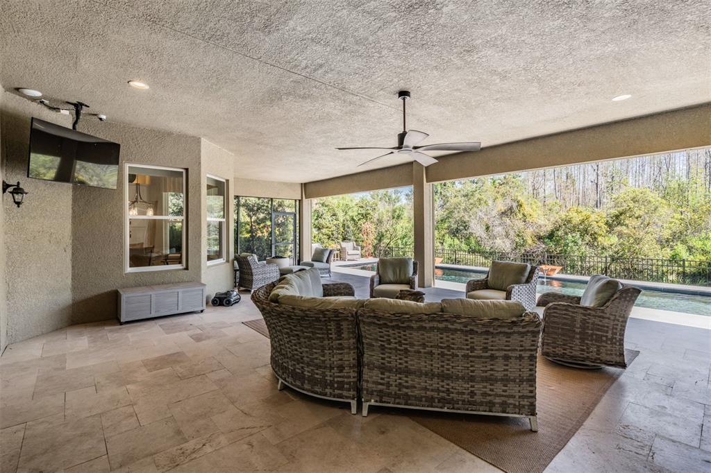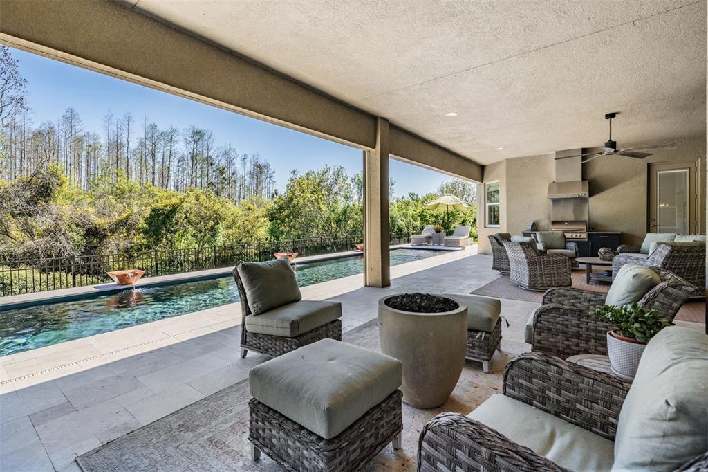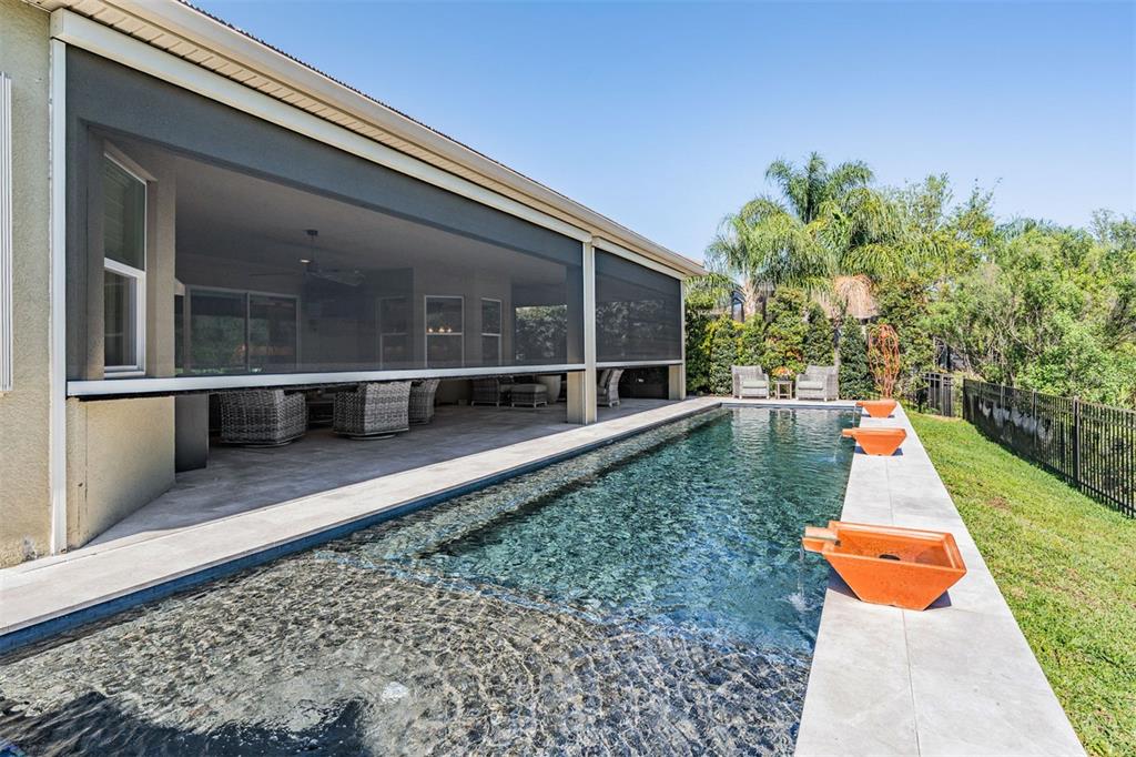 Welcome to 2468 coco palm circle, a luxurious carlyle model by gl homes in the sought after ridge at wiregrass ranch. this meticulously upgraded property offers 3,460 square feet, 4 bedrooms, 3.5 bathrooms, plus additional entertaining spaces and sits on an expansive 0.27 acre conservation lot with fresh landscaping, offering ultimate privacy and resort style living. step through the gated courtyard and enter through cut glass double doors into a grand 16 ft coffered ceiling entryway with a custom mirrored feature wall. the great room showcases rich wood floors, a painted stone feature wall, built in surround sound with subwoofers, and panoramic sliding glass doors framing breathtaking pool and nature views. the gourmet kitchen is a chef’s dream, featuring quartzite countertops, custom soft close cabinetry with pull out shelving, an upgraded refrigerator, microwave, and dishwasher, plus a gas cooktop, double ovens, and a stainless steel hood. entertain in the formal dining room or at the full wet bar, complete with custom cabinetry, a wine cooler, and a beverage refrigerator. the primary suite is a private sanctuary with motorized blackout shades, a coffered ceiling, built in surround sound, and private lanai access. a private hallway leads to dual custom walk in closets and a spa-inspired bath with granite topped vanities, a soaking tub, and a large glass enclosed shower. beyond the primary suite, the home offers versatile additional living spaces. the club room, equipped with built-in surround sound and av equipment, is perfect for a media space, home office, or entertainment area. additionally, the connected hobby room offers a quiet retreat for creative projects or can easily serve as a fourth bedroom. combine the two and you have a wonderful retreat for guests. there are two additional bedrooms, one with an en suite bathroom, and one with a built in murphy bed and desk area, along with a well appointed laundry room with full cabinetry, that adds to the home’s thoughtful design. step outside to the 800 sq. ft. covered lanai, equipped with motorized screens, a built in gas grill, storage area, and a 60” tv. the 47-ft heated saltwater pebbletec lap pool features vessel fountains, a sun shelf, and marble pavers, all set within a fenced backyard with anti-critter protection. additional upgrades include a generac full-home generator, hurricane window coverings, central vacuum, an air knight px5 air filtration system, and a full security system with four cameras. residents of the ridge at wiregrass ranch enjoy resort style amenities, including multiple pools, a waterslide, fire pits, lighted tennis courts, a fitness center, sports courts, a playground, and a full time gated entrance. conveniently located minutes from top rated schools, fine dining, shopping, and major interstates, this home offers an effortless commute to downtown tampa and tampa international airport. a home of this caliber, elegance, and exclusivity is truly a rare find. view the 3d walk thru here https://show.tours/e/hqdckds2468 COCO PALM, WESLEY CHAPEL, FL 33543