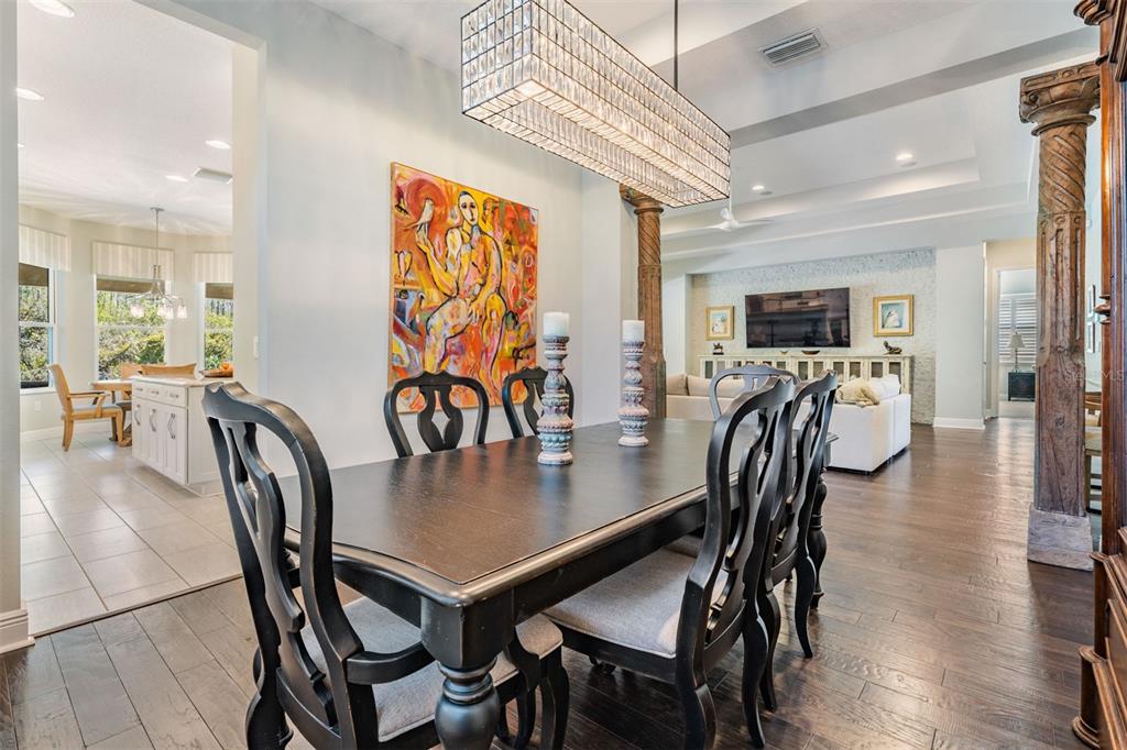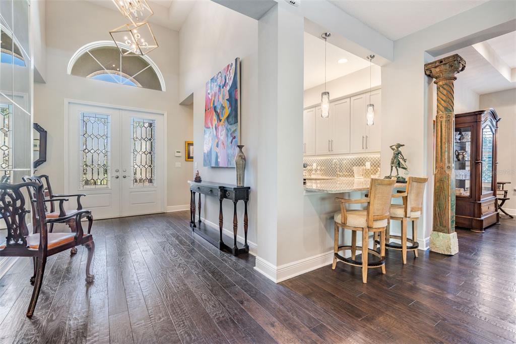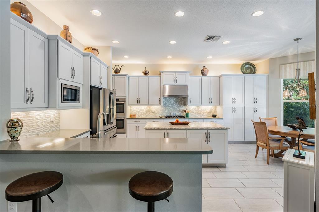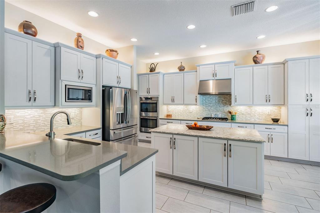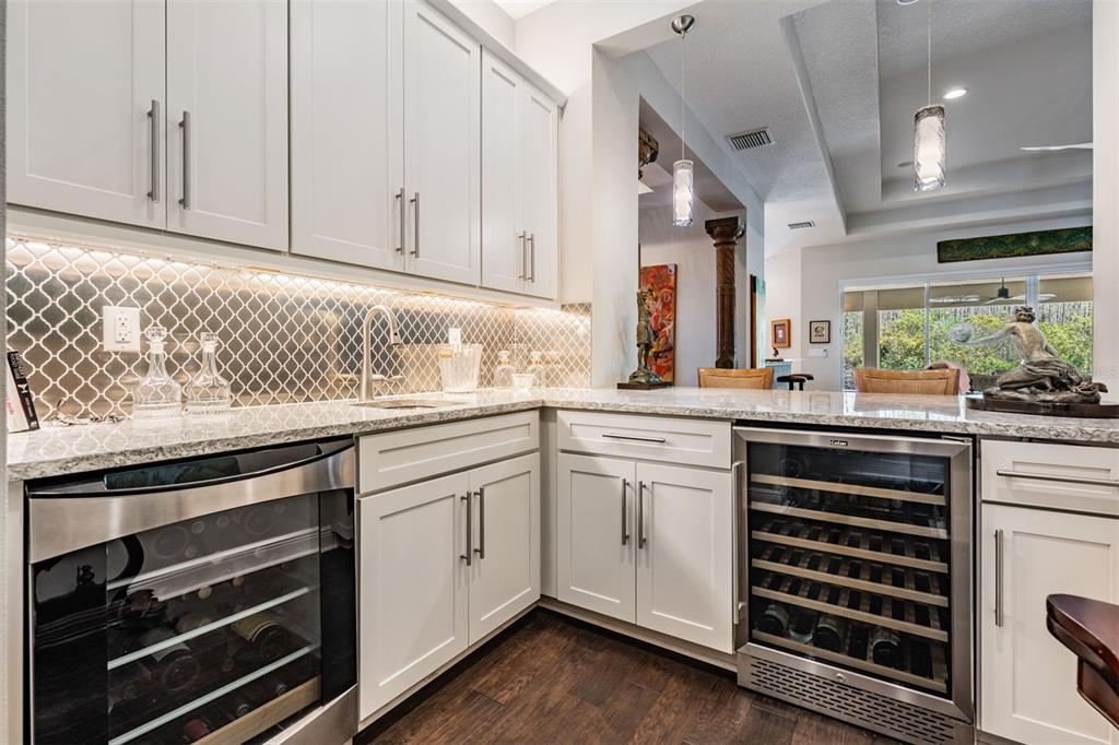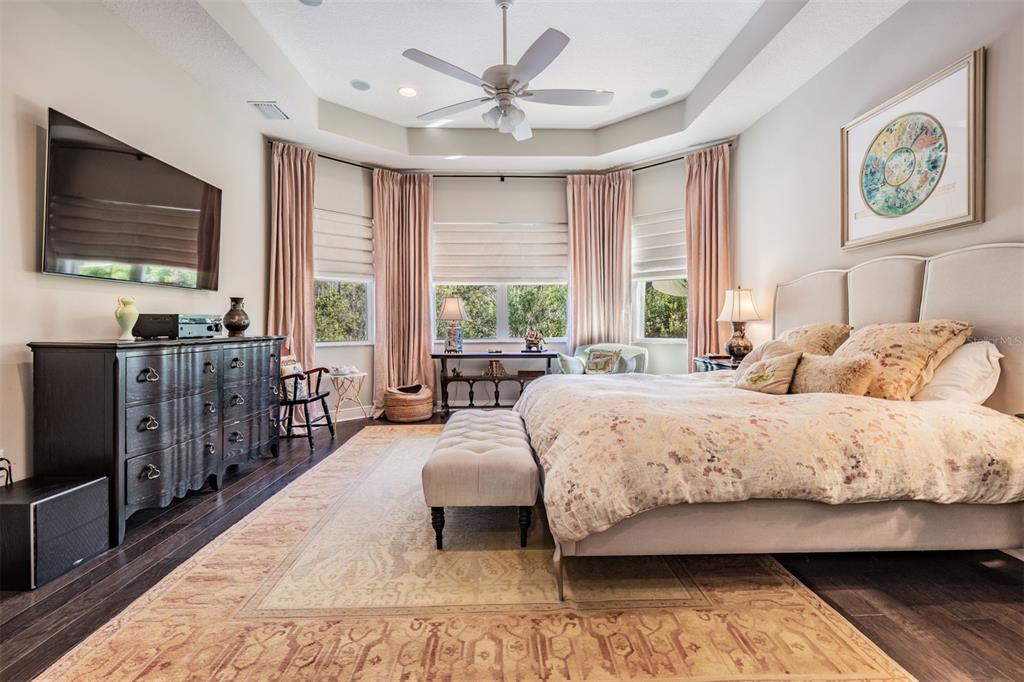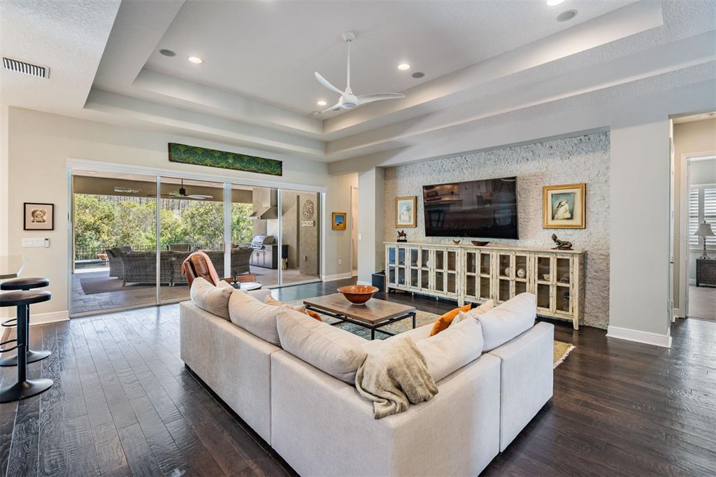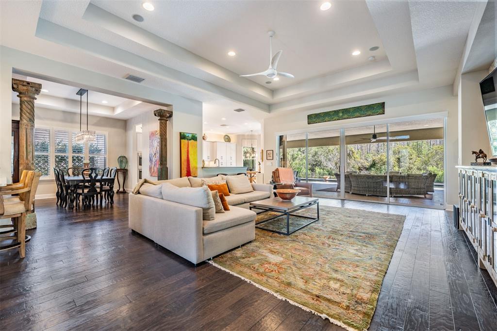 Welcome to 2468 coco palm circle, a luxurious carlyle model by gl homes in the sought after ridge at wiregrass ranch. this meticulously upgraded property offers 3,460 square feet, 4 bedrooms, 3.5 bathrooms, plus additional entertaining spaces and sits on an expansive 0.27 acre conservation lot with fresh landscaping, offering ultimate privacy and resort style living. step through the gated courtyard and enter through cut glass double doors into a grand 16 ft coffered ceiling entryway with a custom mirrored feature wall. the great room showcases rich wood floors, a painted stone feature wall, built in surround sound with subwoofers, and panoramic sliding glass doors framing breathtaking pool and nature views. the gourmet kitchen is a chef’s dream, featuring quartzite countertops, custom soft close cabinetry with pull out shelving, an upgraded refrigerator, microwave, and dishwasher, plus a gas cooktop, double ovens, and a stainless steel hood. entertain in the formal dining room or at the full wet bar, complete with custom cabinetry, a wine cooler, and a beverage refrigerator. the primary suite is a private sanctuary with motorized blackout shades, a coffered ceiling, built in surround sound, and private lanai access. a private hallway leads to dual custom walk in closets and a spa-inspired bath with granite topped vanities, a soaking tub, and a large glass enclosed shower. beyond the primary suite, the home offers versatile additional living spaces. the club room, equipped with built-in surround sound and av equipment, is perfect for a media space, home office, or entertainment area. additionally, the connected hobby room offers a quiet retreat for creative projects or can easily serve as a fourth bedroom. combine the two and you have a wonderful retreat for guests. there are two additional bedrooms, one with an en suite bathroom, and one with a built in murphy bed and desk area, along with a well appointed laundry room with full cabinetry, that adds to the home’s thoughtful design. step outside to the 800 sq. ft. covered lanai, equipped with motorized screens, a built in gas grill, storage area, and a 60” tv. the 47-ft heated saltwater pebbletec lap pool features vessel fountains, a sun shelf, and marble pavers, all set within a fenced backyard with anti-critter protection. additional upgrades include a generac full-home generator, hurricane window coverings, central vacuum, an air knight px5 air filtration system, and a full security system with four cameras. residents of the ridge at wiregrass ranch enjoy resort style amenities, including multiple pools, a waterslide, fire pits, lighted tennis courts, a fitness center, sports courts, a playground, and a full time gated entrance. conveniently located minutes from top rated schools, fine dining, shopping, and major interstates, this home offers an effortless commute to downtown tampa and tampa international airport. a home of this caliber, elegance, and exclusivity is truly a rare find. view the 3d walk thru here https://show.tours/e/hqdckds2468 COCO PALM, WESLEY CHAPEL, FL 33543