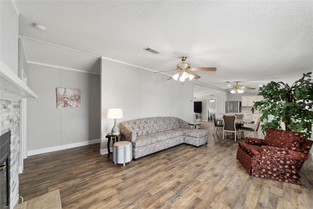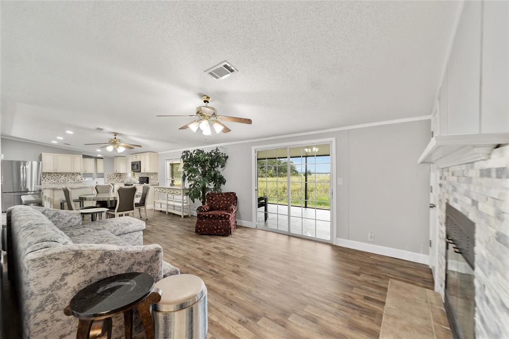 Charming home on .62 acres with serene lake views. discover tranquility and modern comfort in this charming home, perfectly situated on two lots with 85 feet of waterfront along little lake kerr. nestled at the end of a quiet dead-end street, this property offers a serene escape with protected wetlands where waterfowl, deer and fish thrive, creating a picturesque and peaceful environment. inside, the spacious floor plan includes four comfortable bedrooms and two well-appointed baths. the heart of this home is its brand-new kitchen, designed with the modern chef in mind. featuring gleaming stainless steel appliances, a massive island perfect for meal prep or casual dining, and a custom-built pantry, this kitchen is both functional and stylish. the home's layout includes a cozy family room with a gas fireplace that has never been used, offering a versatile space for relaxation and gatherings. additional living areas include a bright living room and a dedicated dining area, providing ample space for both everyday living and entertaining. step outside onto your screened-in lanai and immerse yourself in the serene sounds of nature while taking in the amazing sunsets on the water's horizon. whether you're sipping your morning coffee or hosting a summer barbecue, this outdoor space is perfect for enjoying the tranquil setting. outside, the property continues to impress. enjoy your own private dock, perfect for mooring your boat and taking advantage of the stunning waterfront views. a 14-by-24-foot workshop offers versatile space for hobbies, storage, or diy projects. this home offers a rare combination of space, comfort, and a peaceful location, making it an ideal choice for those seeking a serene escape with modern conveniences. don't miss the opportunity to make this peaceful retreat your new home!24720 NE 135TH, FORT MC COY, FL 32134