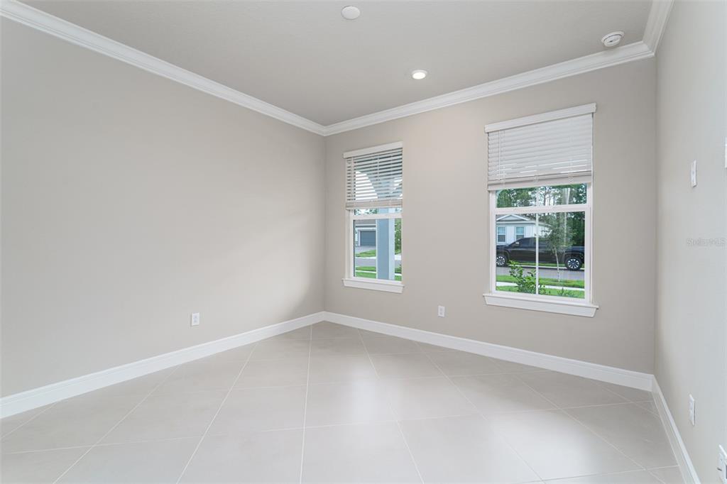 Split Bedroom Walk-In Closet(s) Eating Space In Kitchen High Ceilings Living Room/Dining Room Combo Thermostat Window Treatments Solid Surface CountersCrown Molding In Wall Pest SystemExterior Features:
