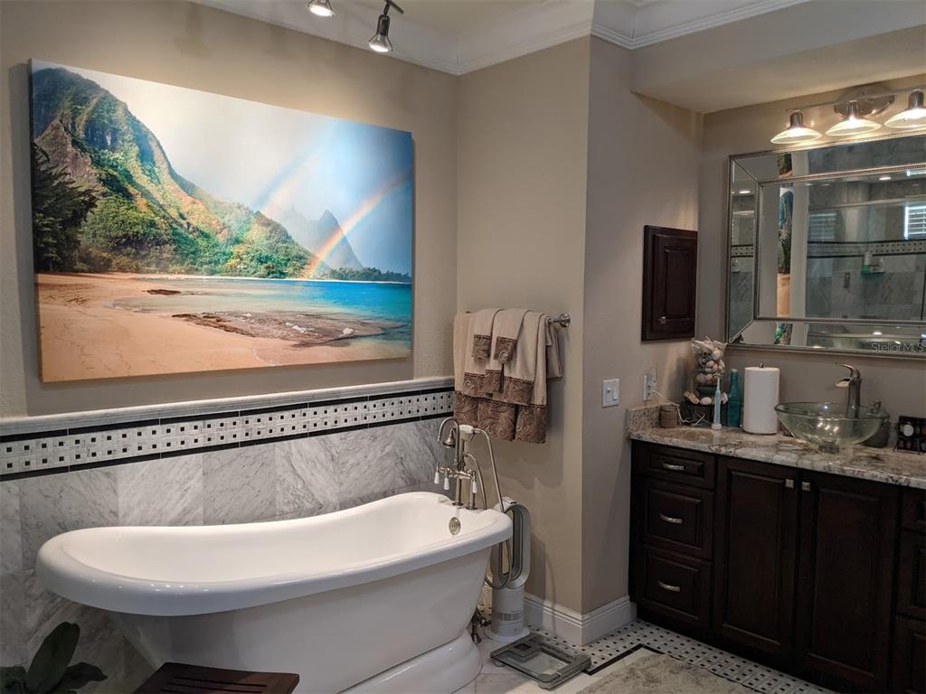 Discover safety harbor living in this spanish-mediterranean home. nestled in vibrant waterfront safety harbor on tampa bay, this residence offers comfort, style, and convenience. imagine strolling the marina, enjoying local shops and restaurants, or exploring parks and beaches. just a short drive from clearwater beaches and st. pete pier, all tampa bay amenities are at your fingertips. built to last, this two-story home boasts concrete block construction, impact windows, and a stucco finish. enjoy peace of mind – this property has remained high and dry for a decade, safely outside the flood zone. exquisite spanish architectural details set this home apart, from intricate wrought iron accents and the entry doors to the classic spanish tile roof. a beautiful front facade welcomes you, while rear access leads to a two-car garage and delightful patio—perfect for relaxing. step inside to be enchanted. the inviting foyer leads to the expansive great room. a gas fireplace takes center stage, creating a focal point. the elegant wrought iron staircase enhances the craftsmanship. a discreet half-bath is readily accessible. to the left, a formal dining room awaits, perfect for hosting memorable meals. this elegant space flows seamlessly into the open-concept kitchen—a chef's delight with rich wood cabinetry, ample counter space, and a central island. customize the space with your culinary tools. a breakfast nook offers casual dining and access to a private lanai—ideal for morning coffee. step out to a small garden and enjoy convenient driveway access. the two-car garage is also easily accessible. between the staircase and kitchen, a cleverly designed bar area serves the living and dining rooms, as well as the adjacent den. this versatile den, complete with a glass-doored walk-in closet, is currently a library, a testament to its adaptability. throughout this exceptional home, find a harmonious blend of natural wood floors, elegant ceramic tile, and tasteful architectural details. from crown moldings to rich wood finishes and built-ins, every element exudes the timeless elegance of spanish-mediterranean style. upstairs, a refreshing mosaic landing249 IRON AGE ST, SAFETY HARBOR, FL 34695